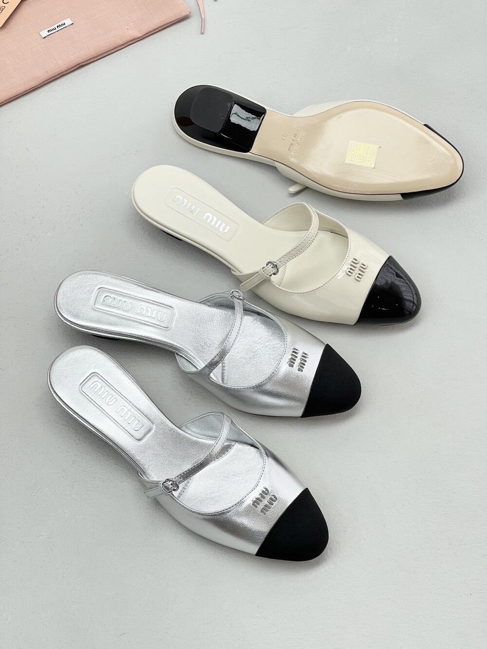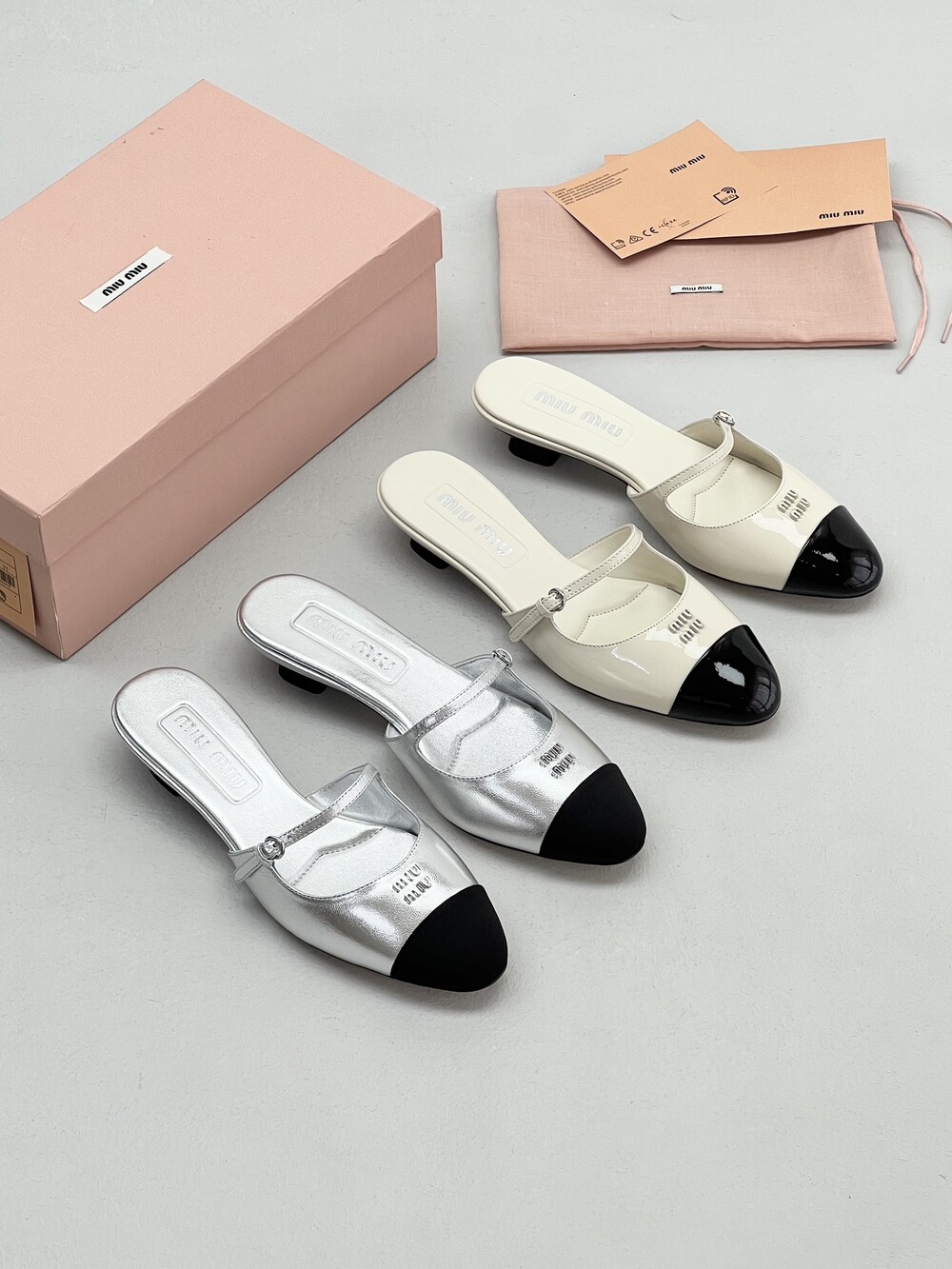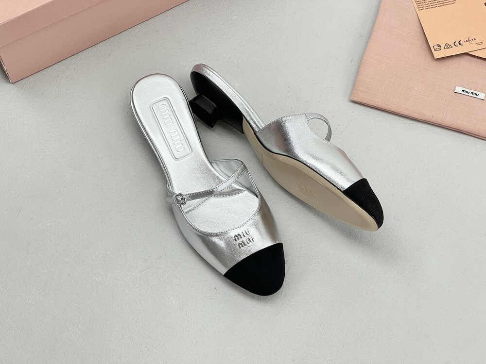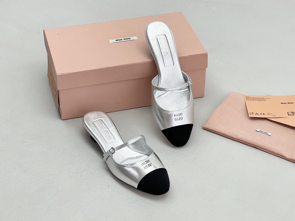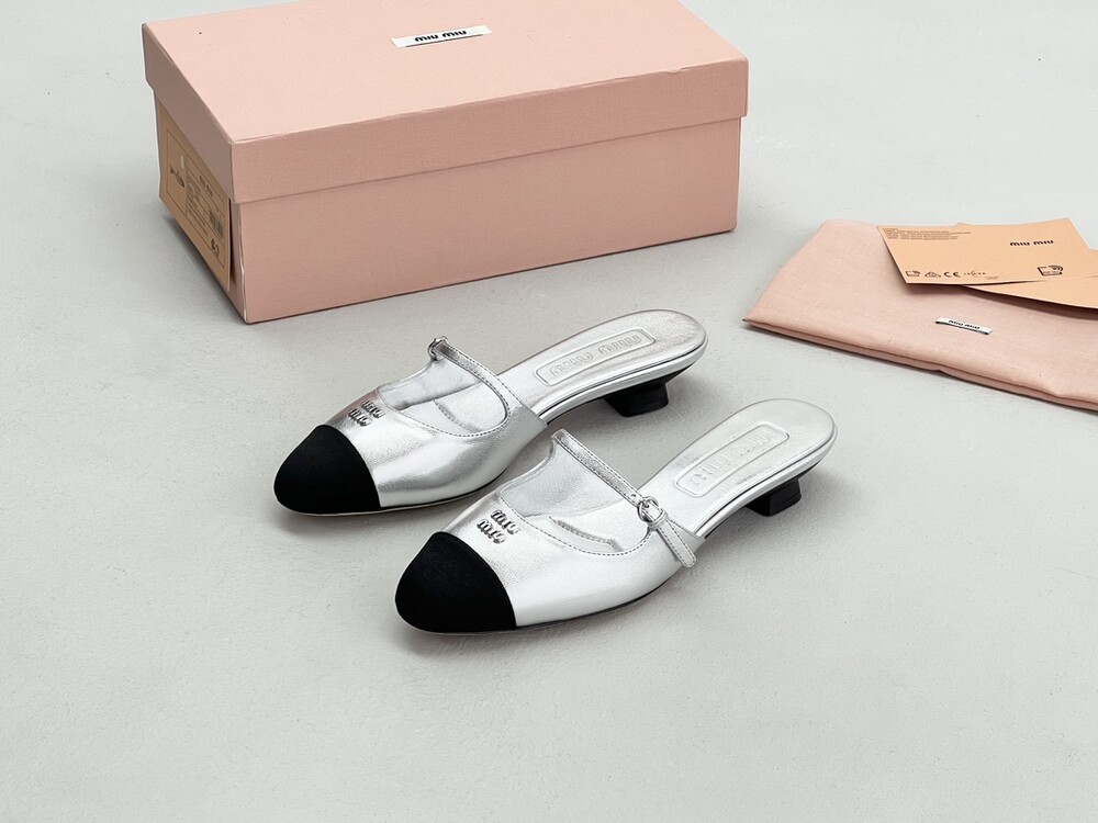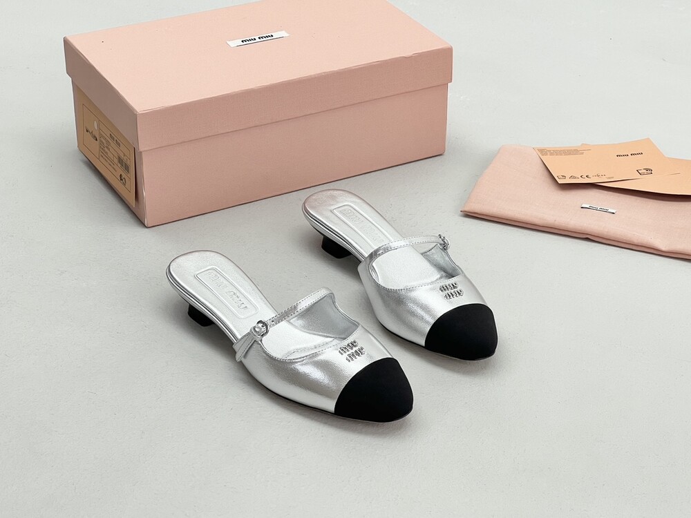 Miu Miu 새로운 컬러 블록 캣 힐 슬리퍼