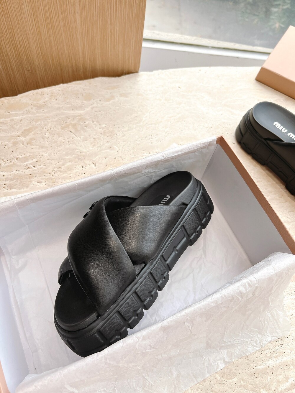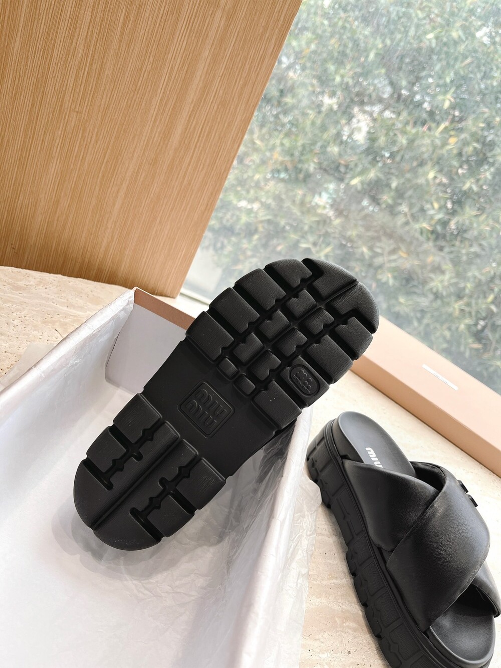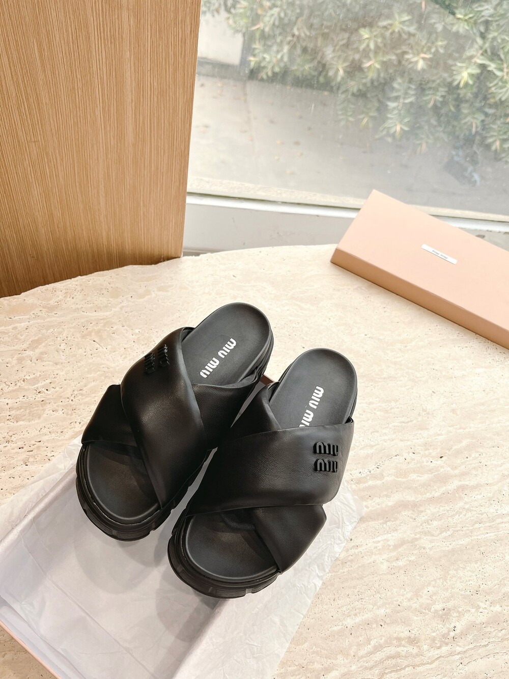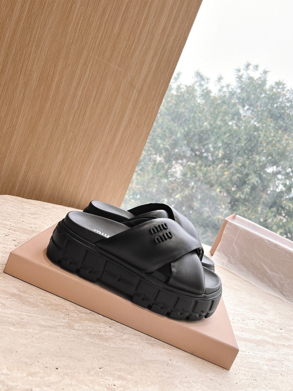 M.iu Miu 2023 플랫폼 양가죽 샌들