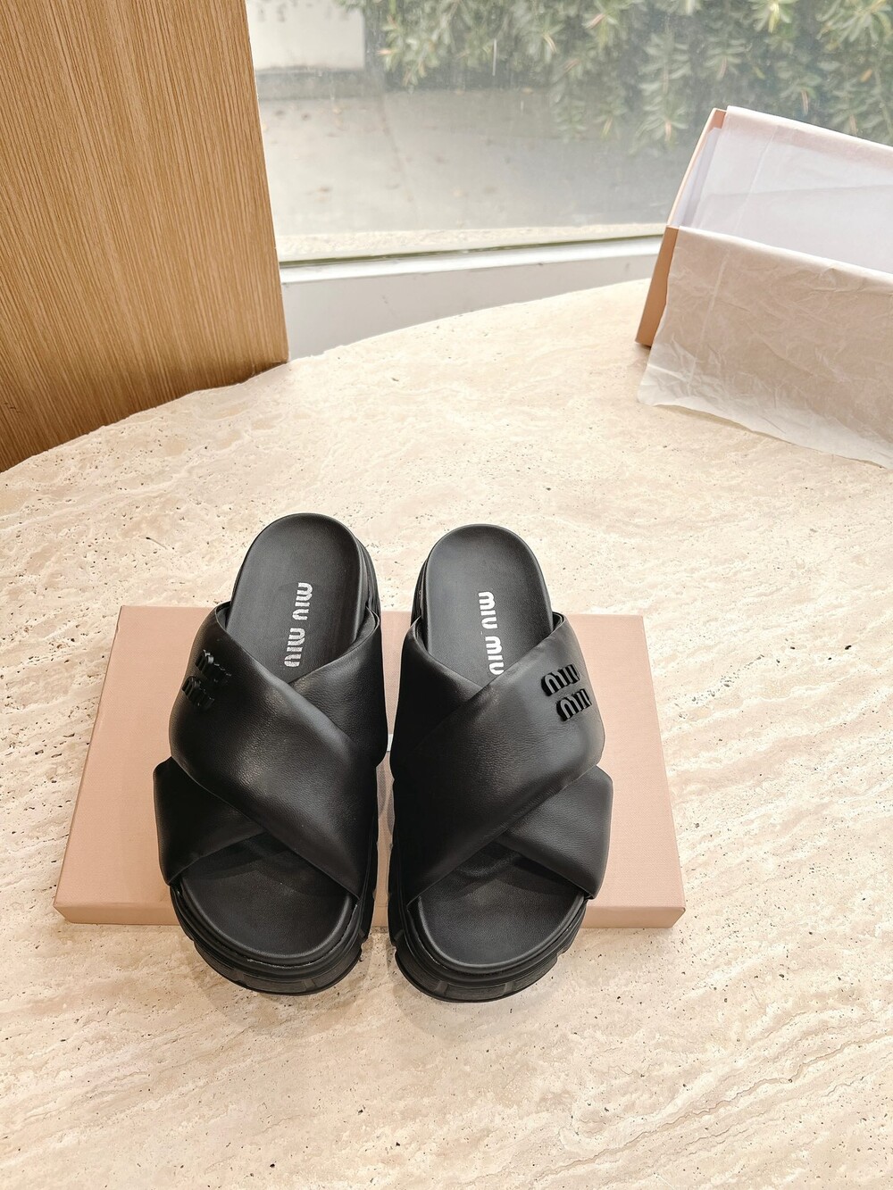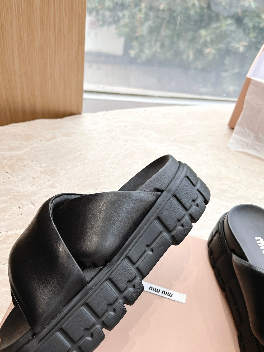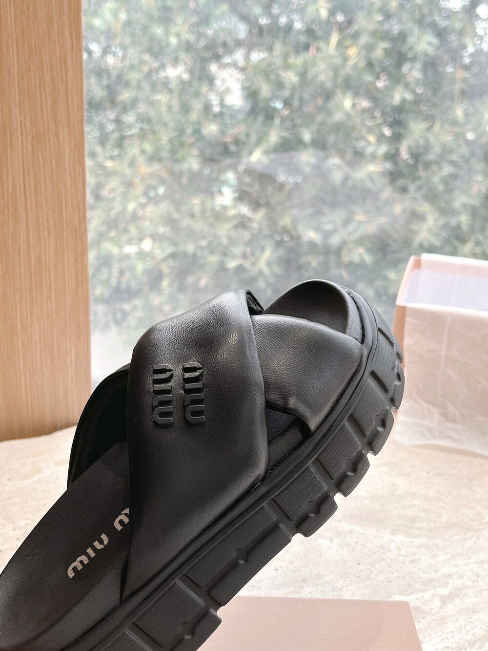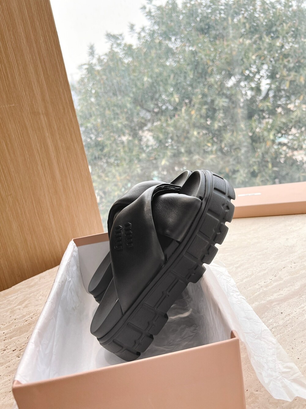 M.iu Miu 2023 플랫폼 양가죽 샌들