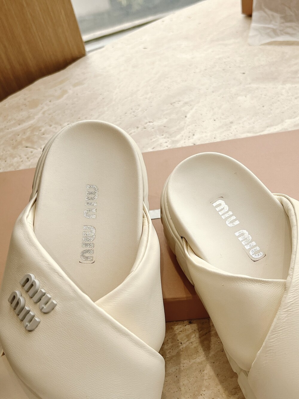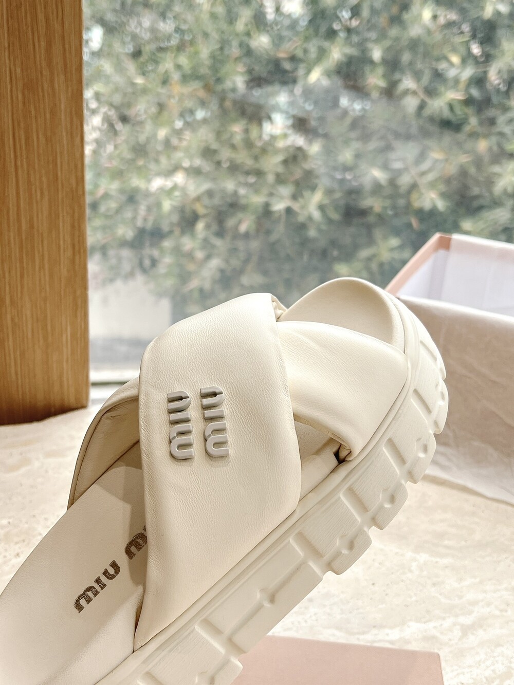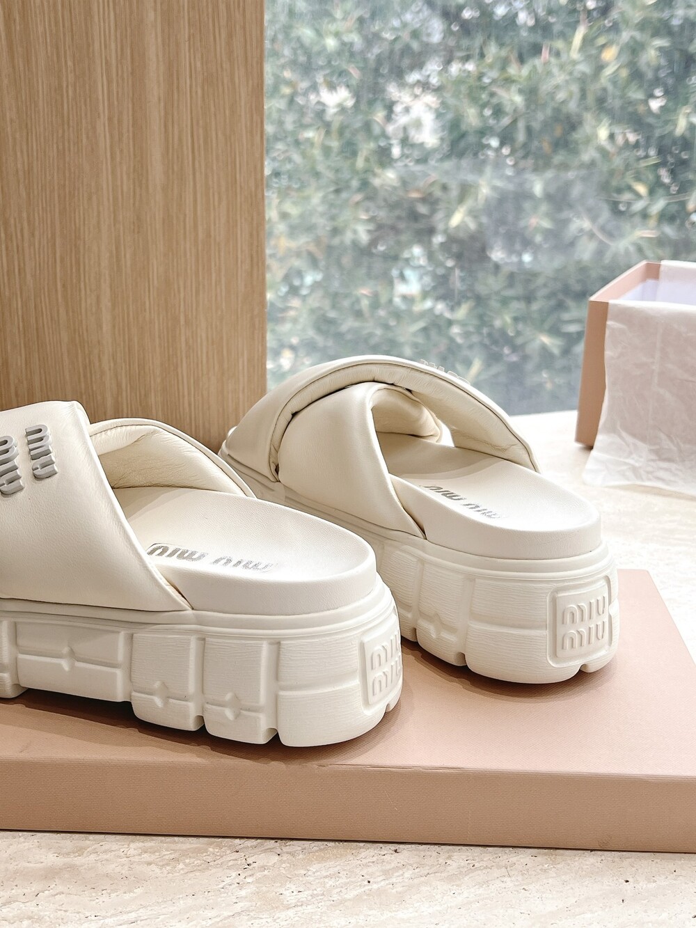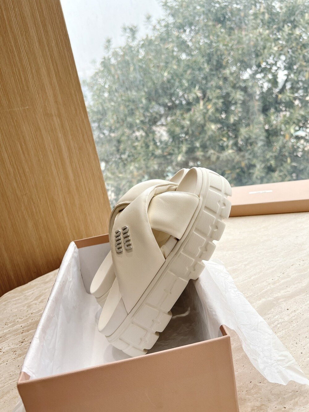 M.iu Miu 2023 플랫폼 양가죽 샌들