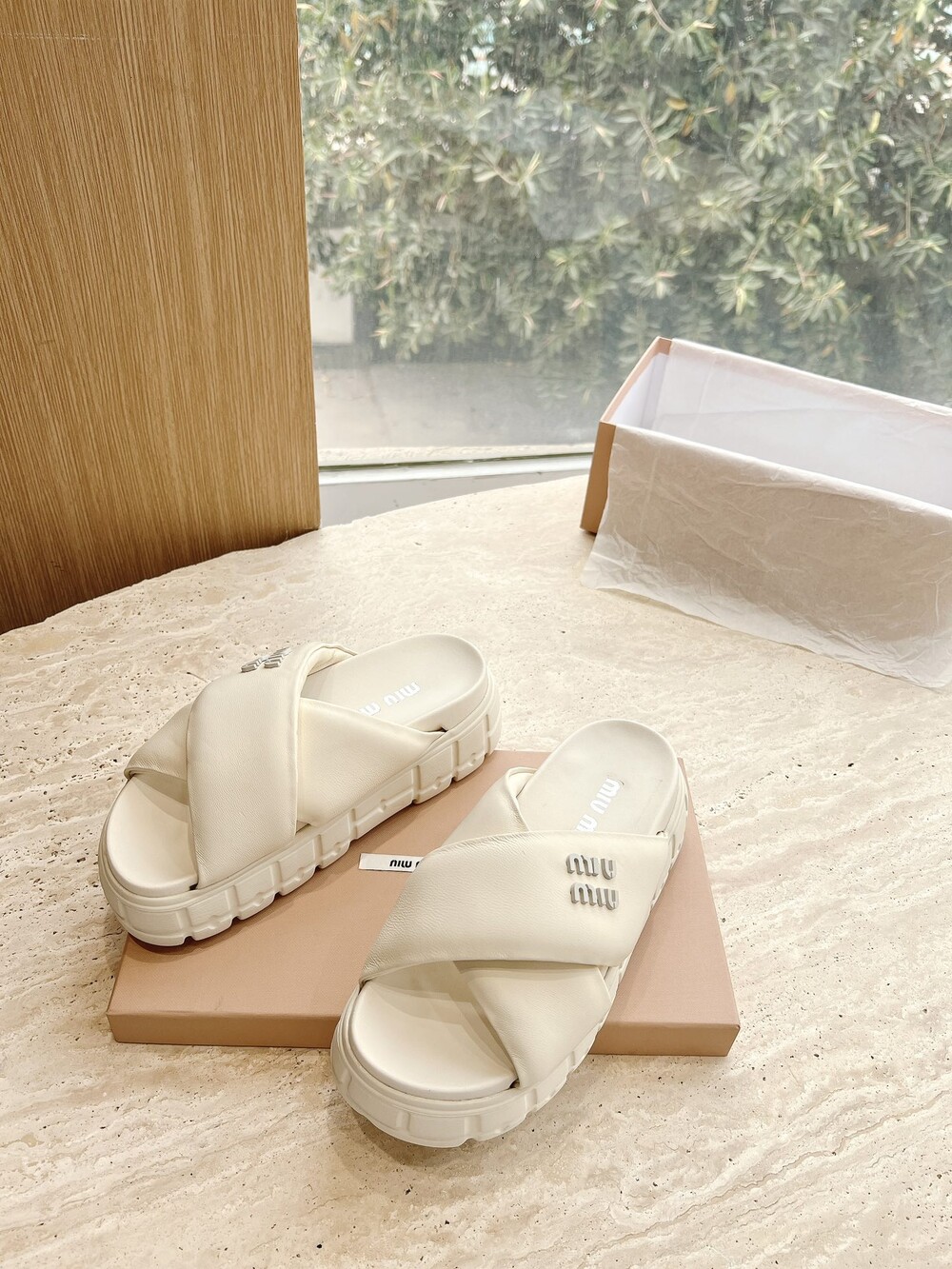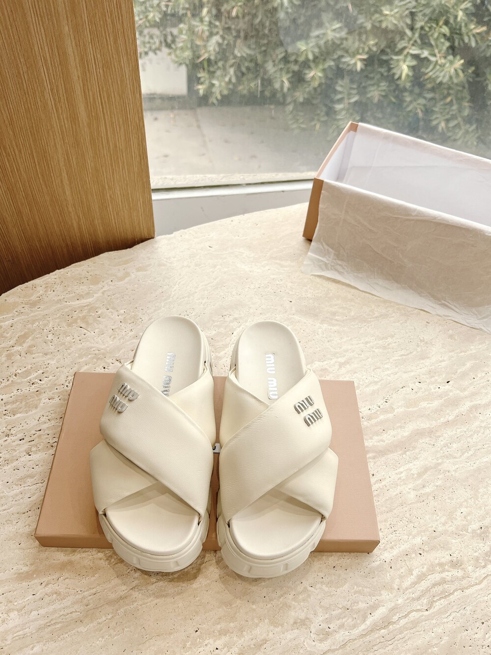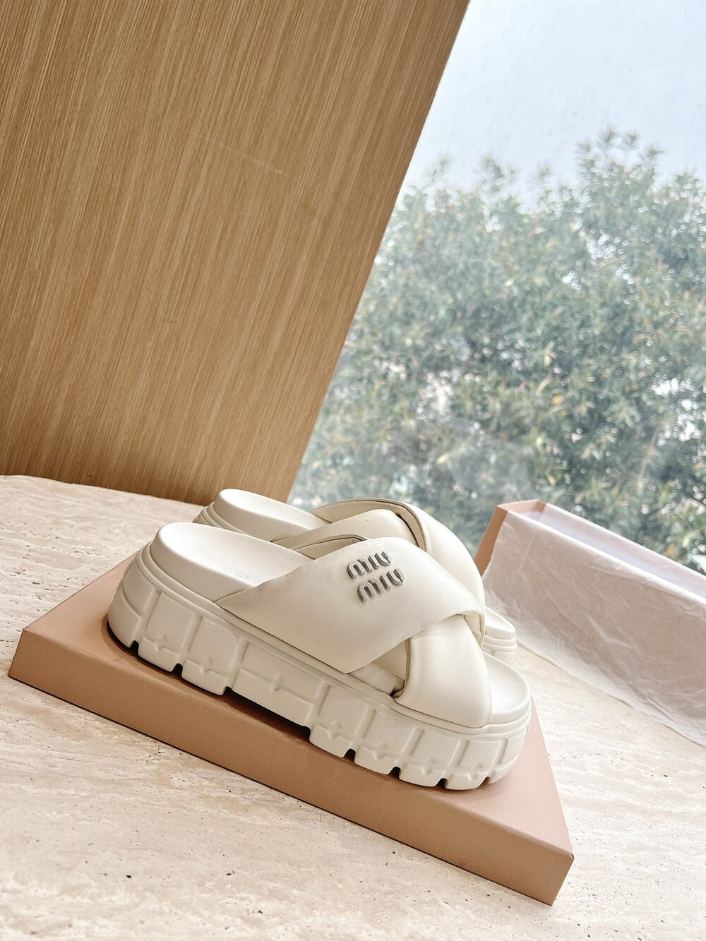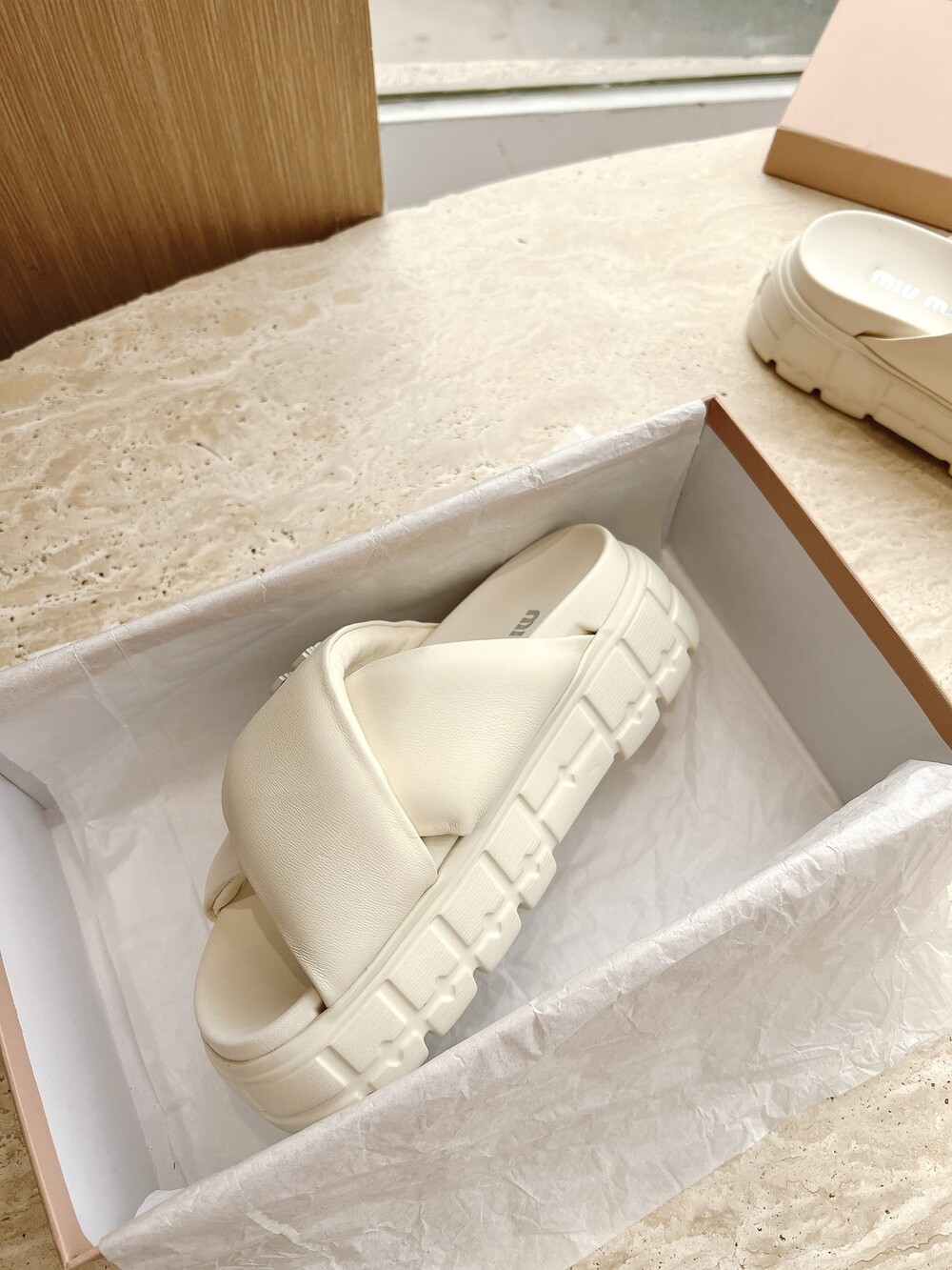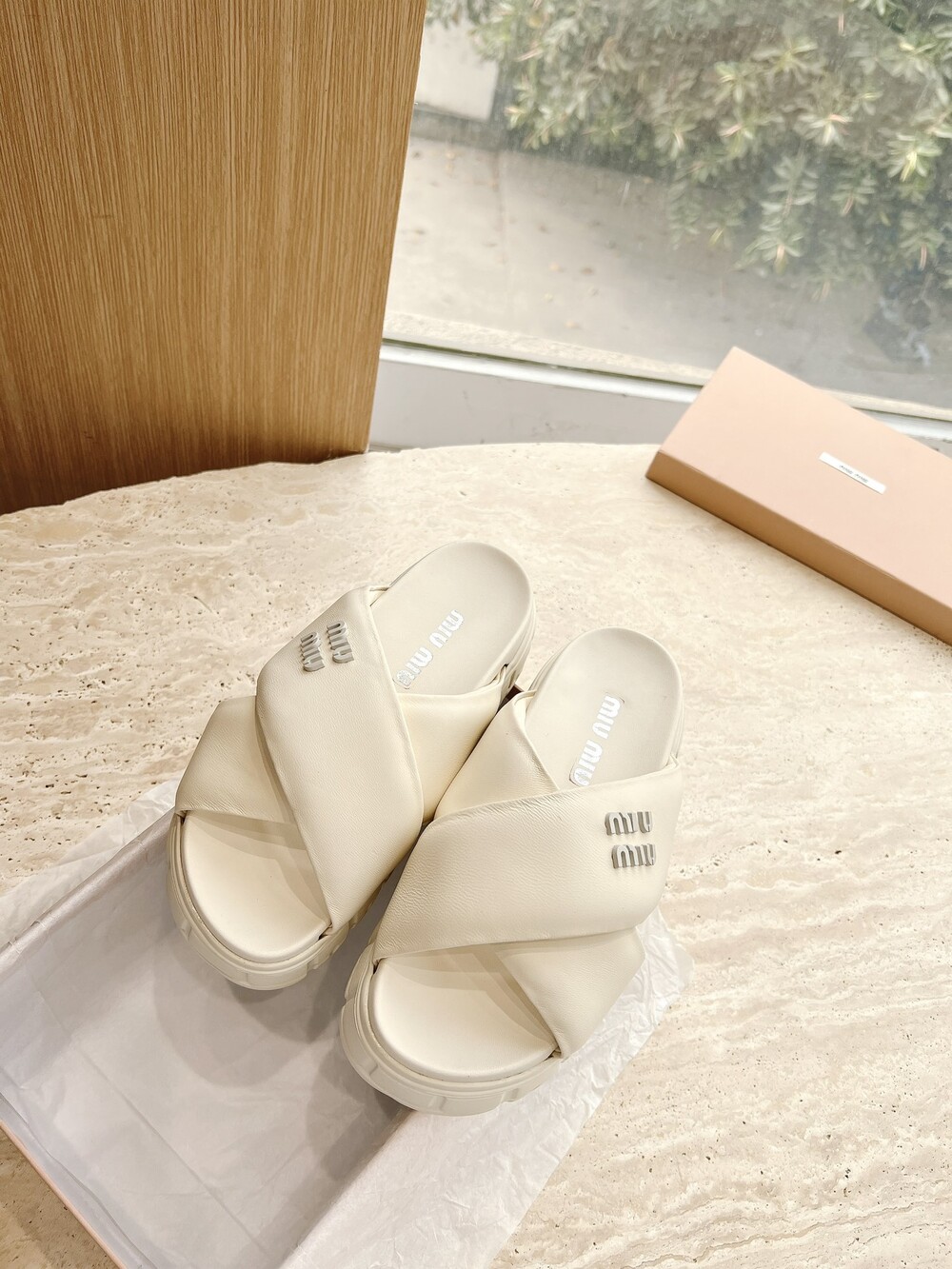 M.iu Miu 2023 플랫폼 양가죽 샌들
