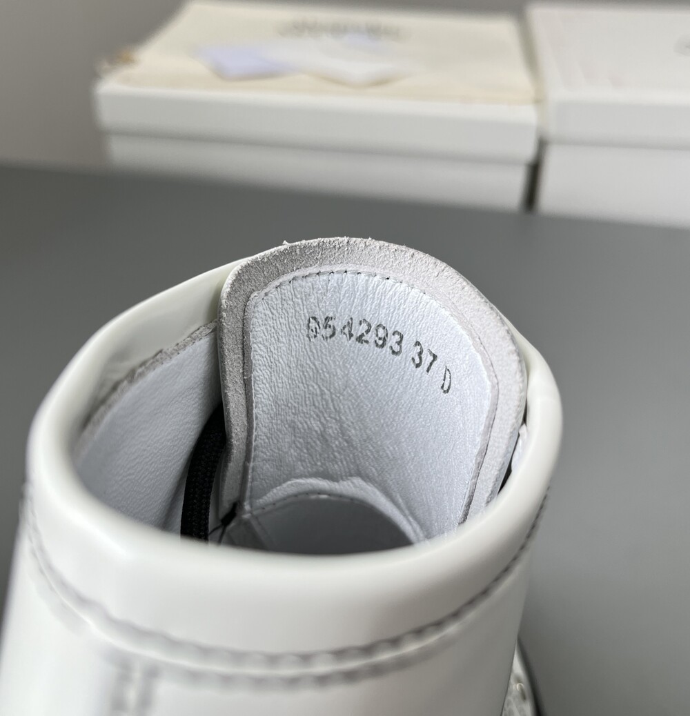 글로시 송아지 가죽 레이스업 부츠,