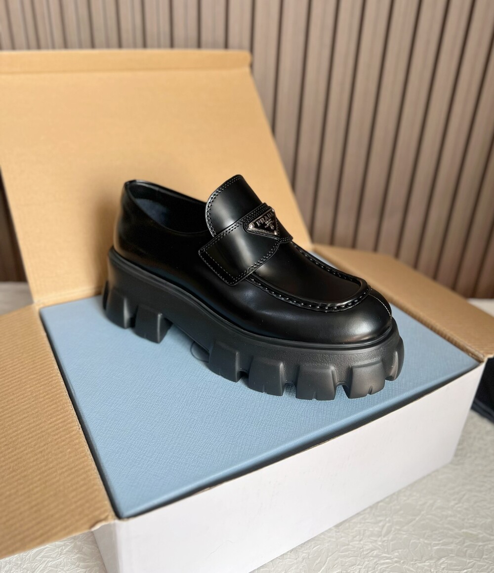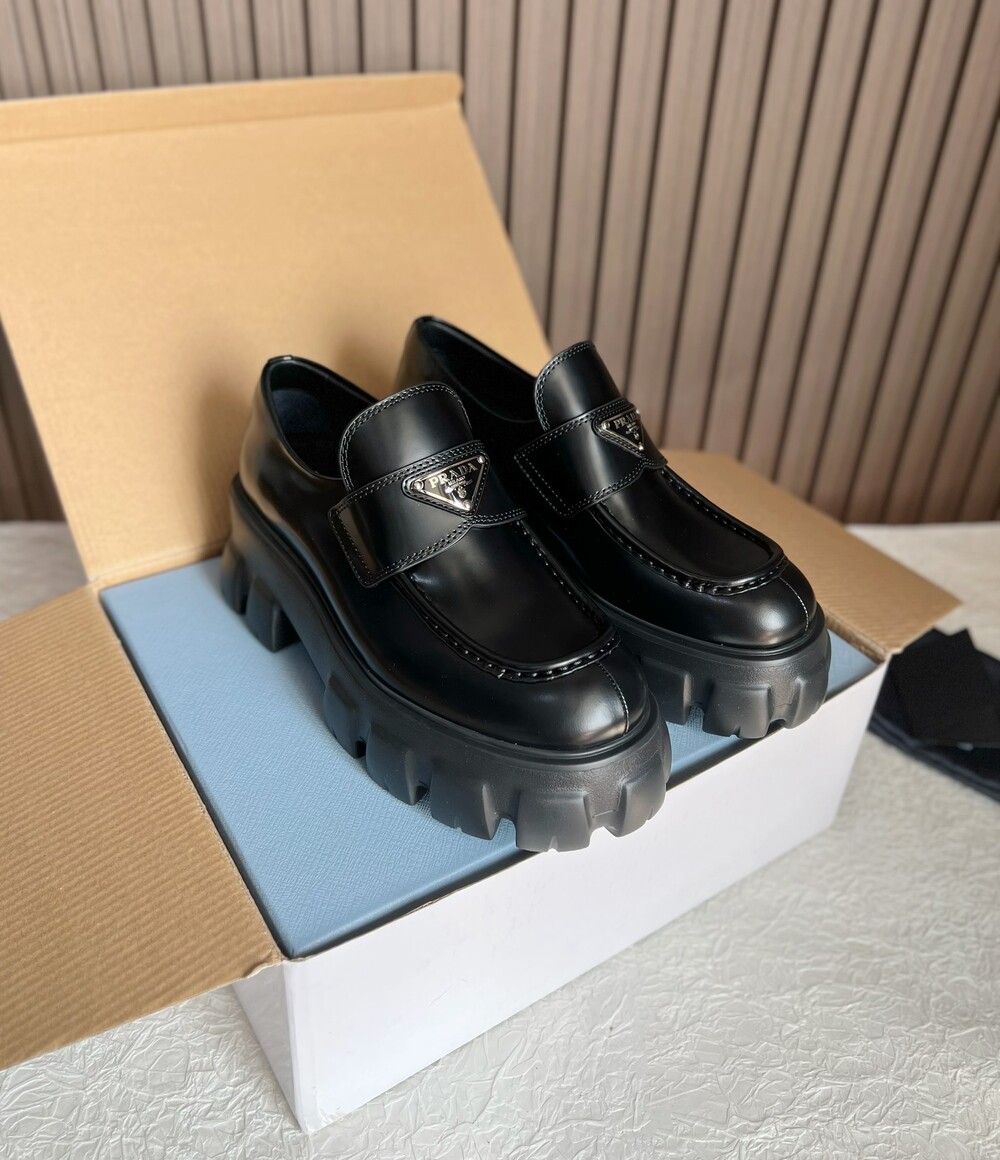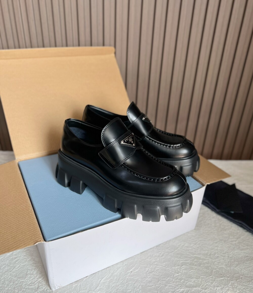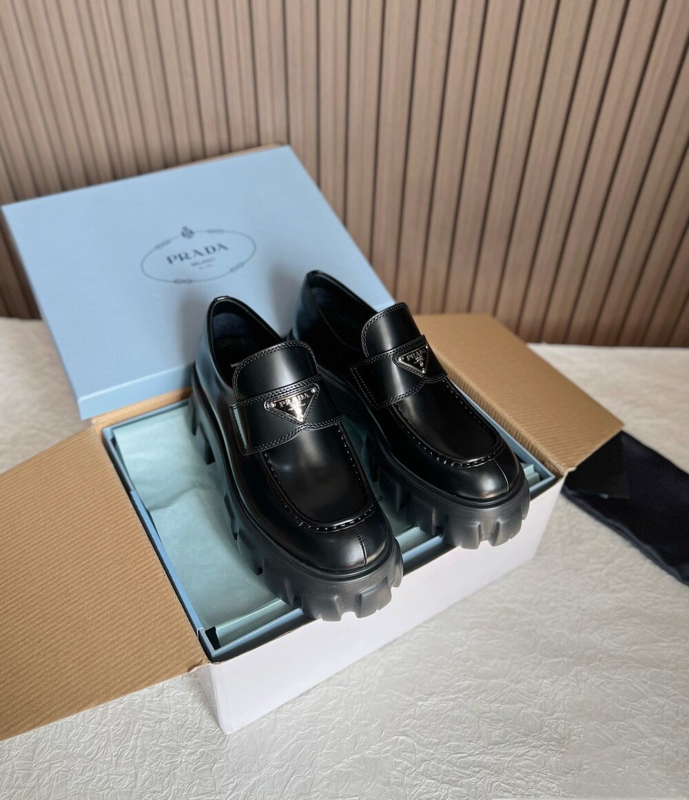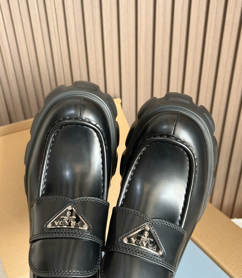 신발 겉면에 삼각로고 메탈 버클을 매치하면