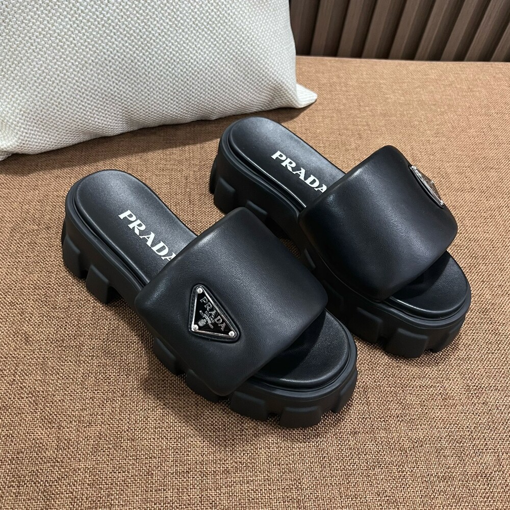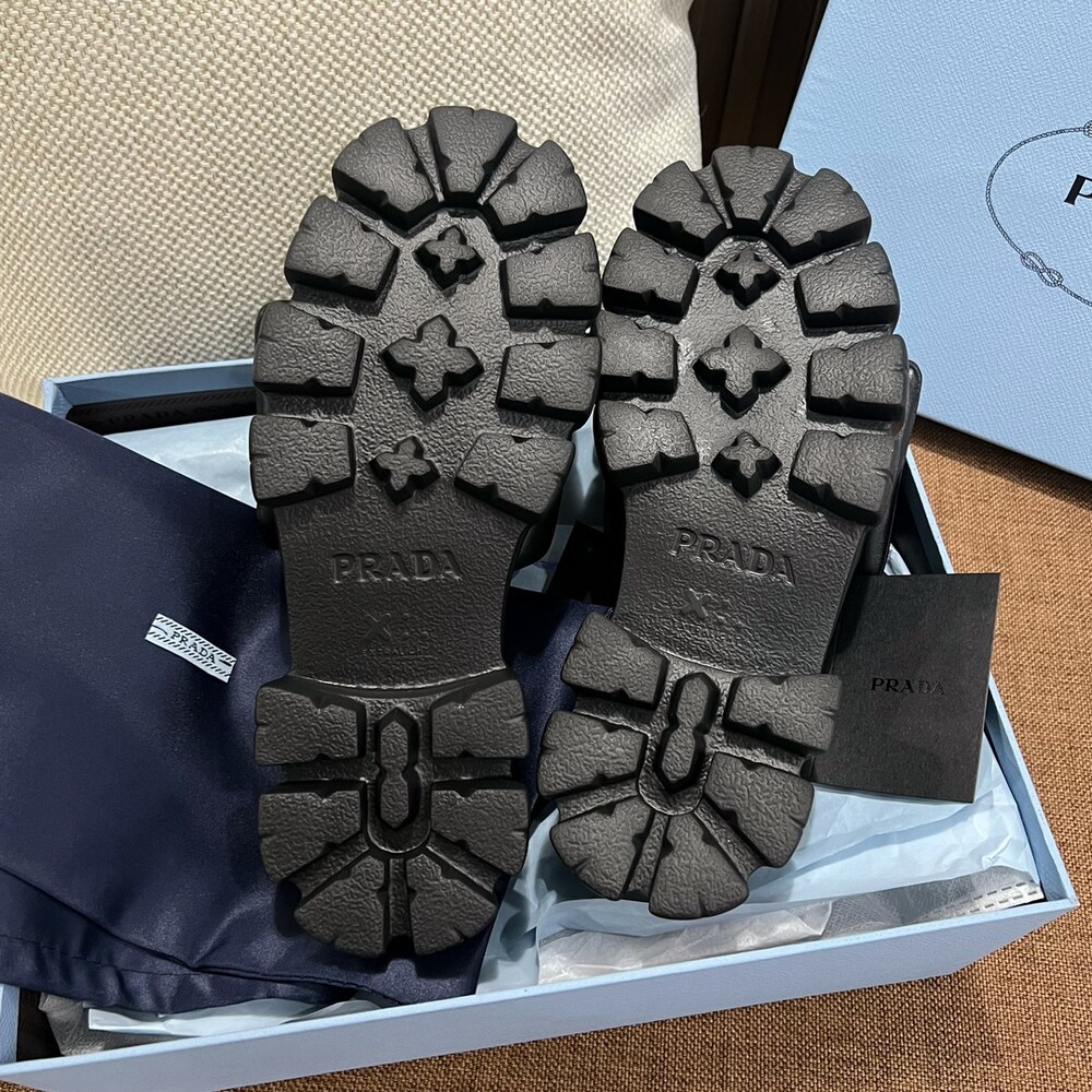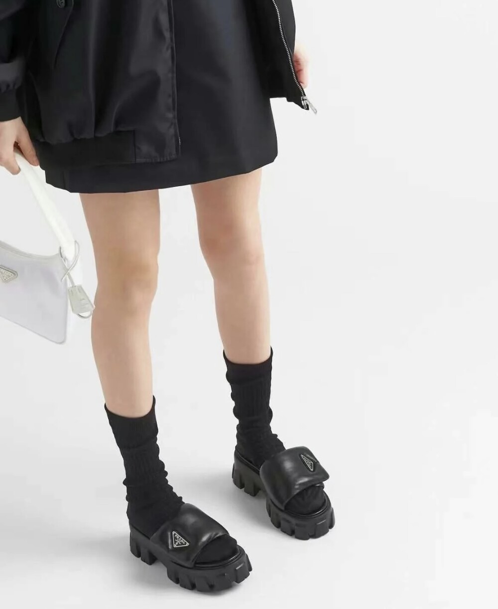 신발 겉면에 삼각로고 메탈 버클을 매치하면