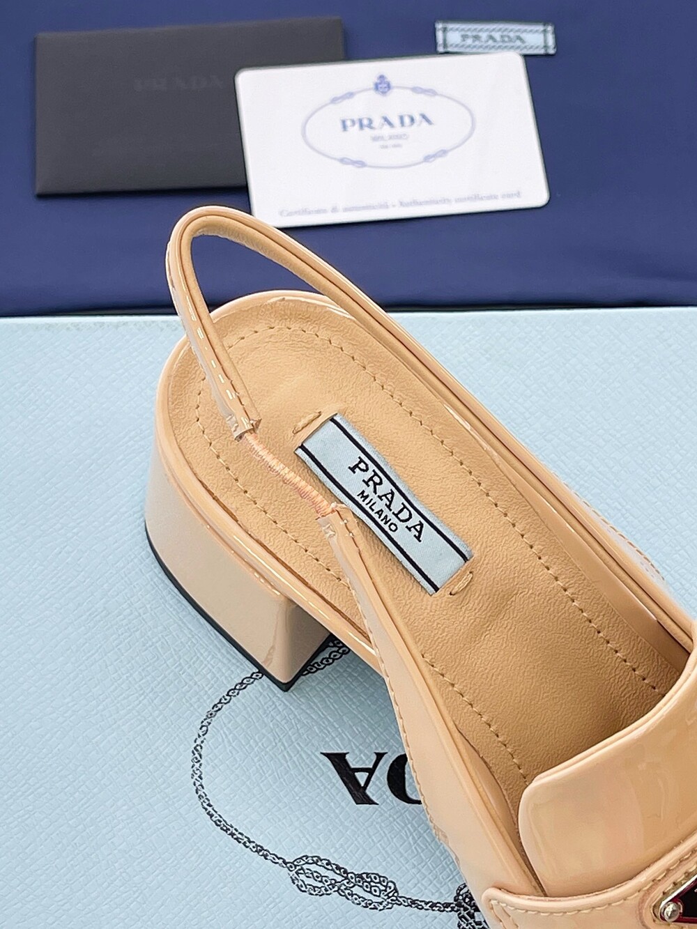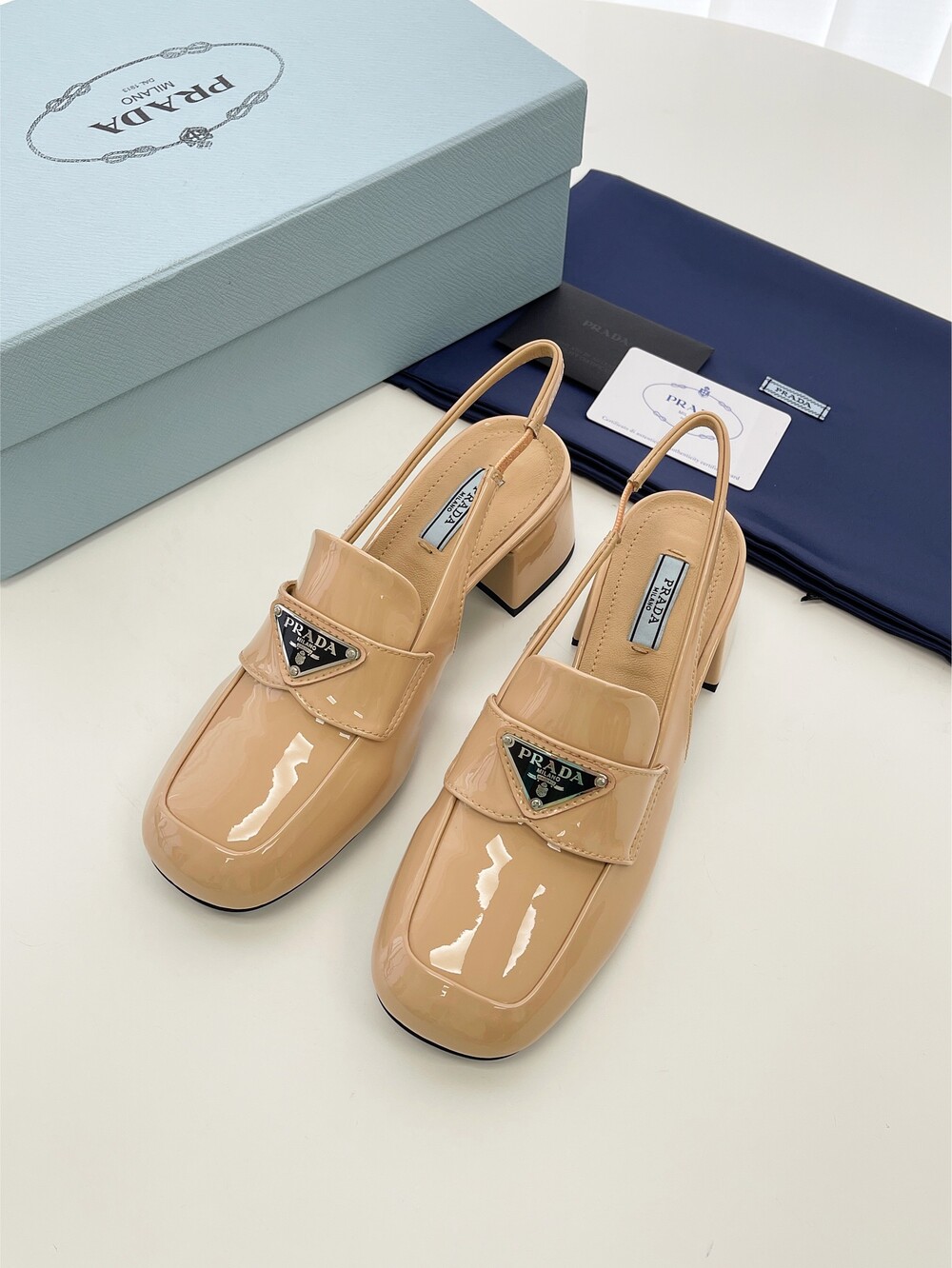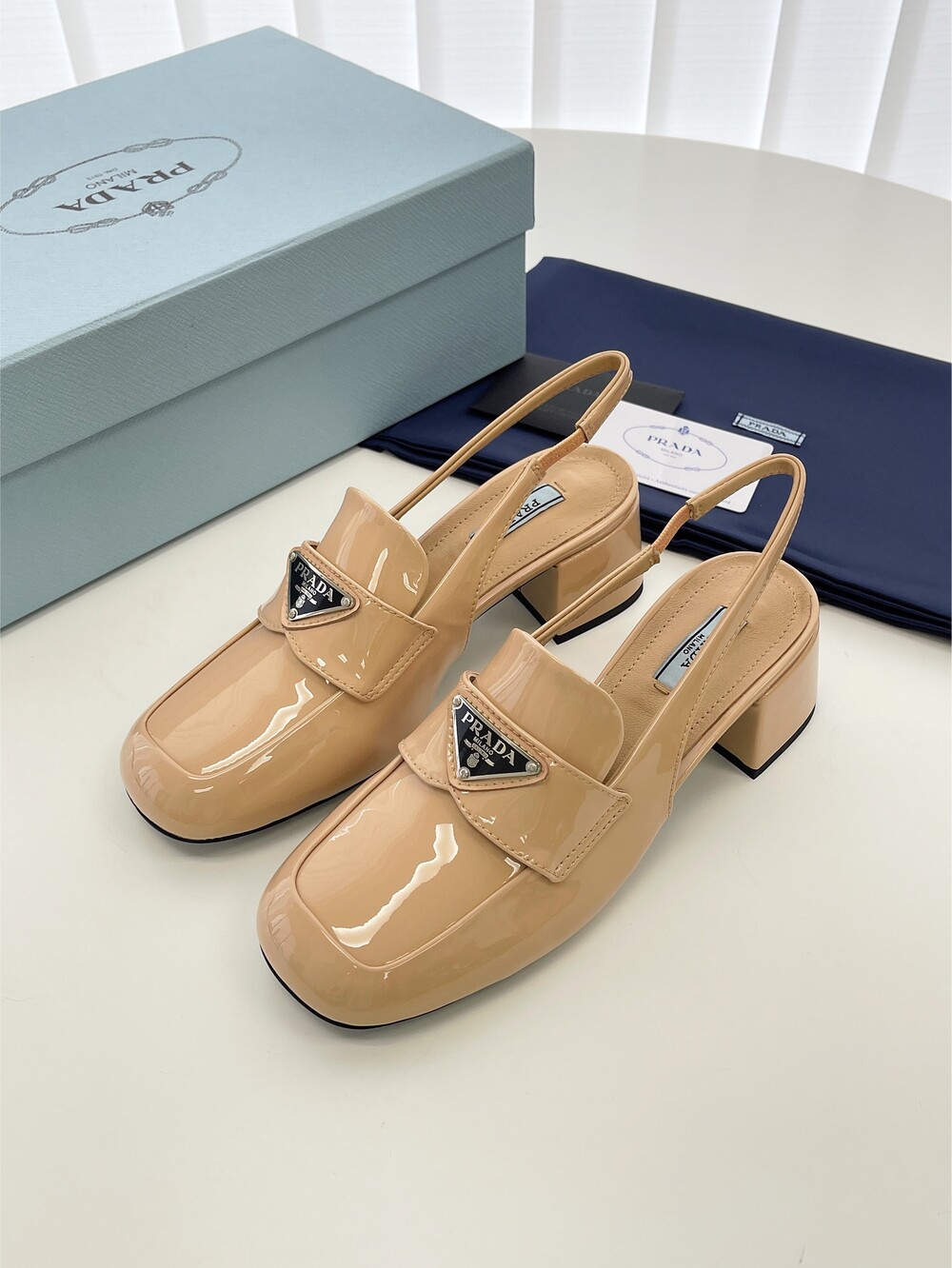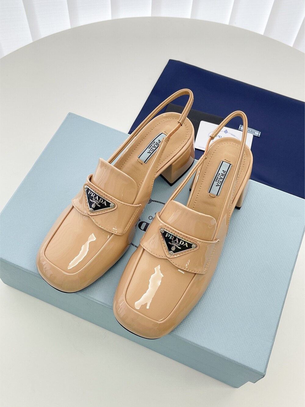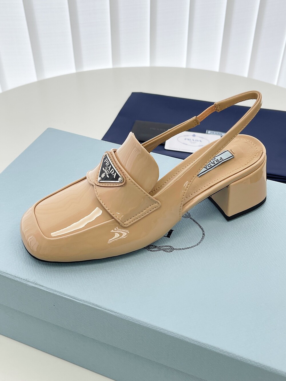 PR 굵은 미들힐 슬링백 슈즈