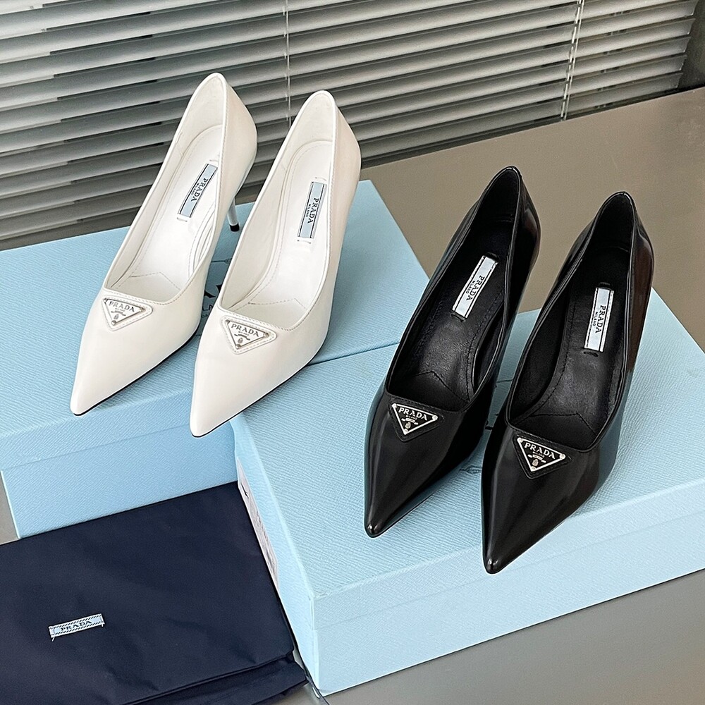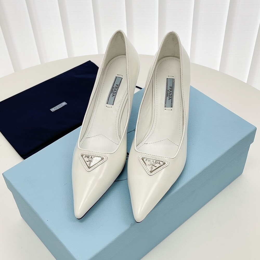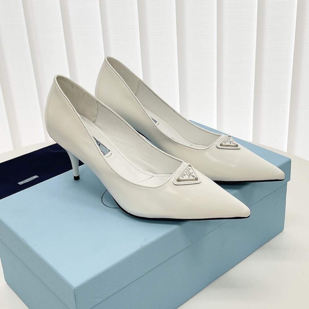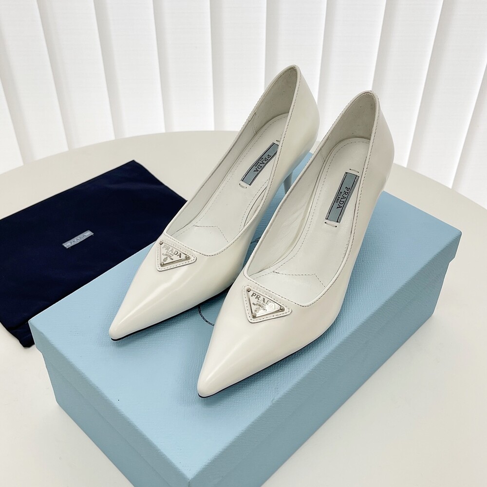 삼각로고 브러시드 레더 펌프스 힐[해외]
