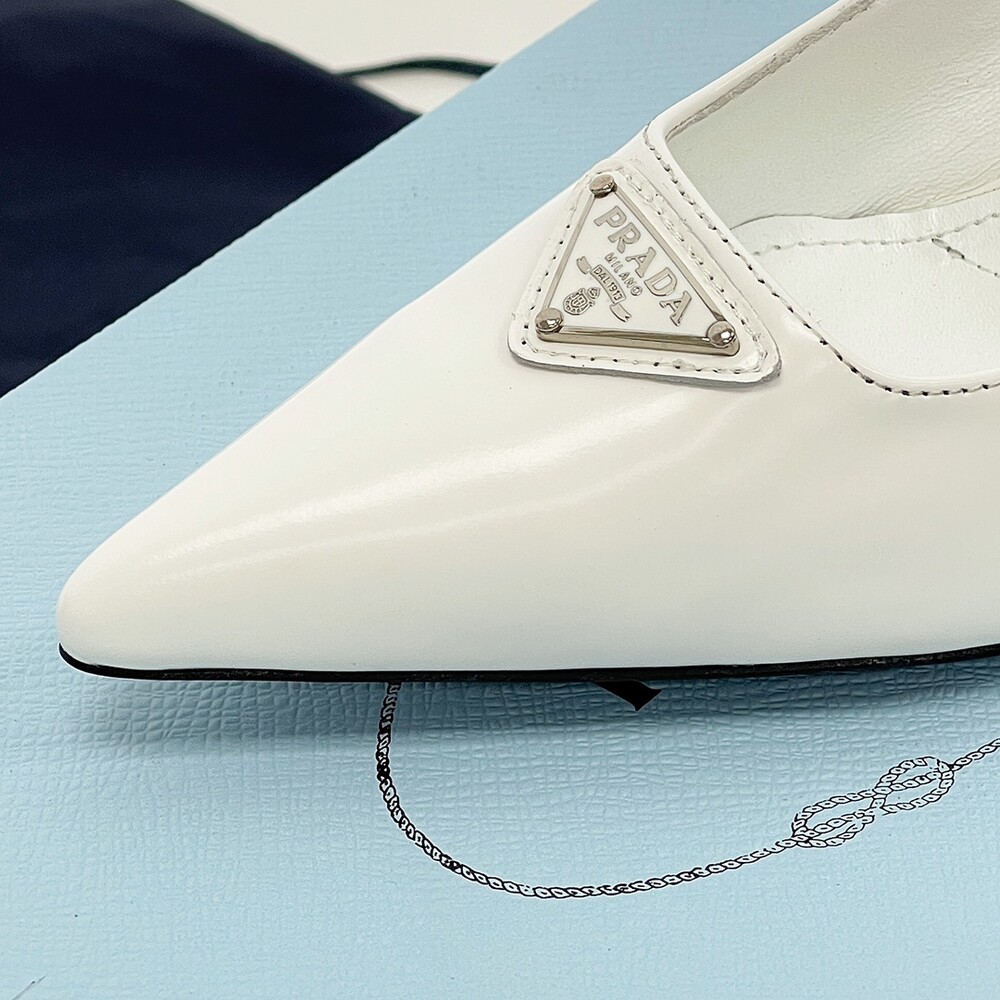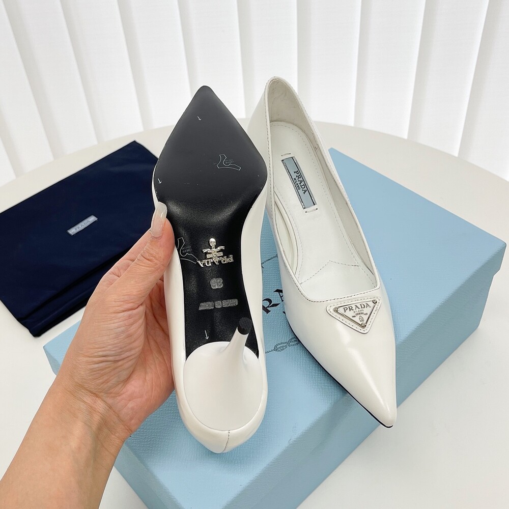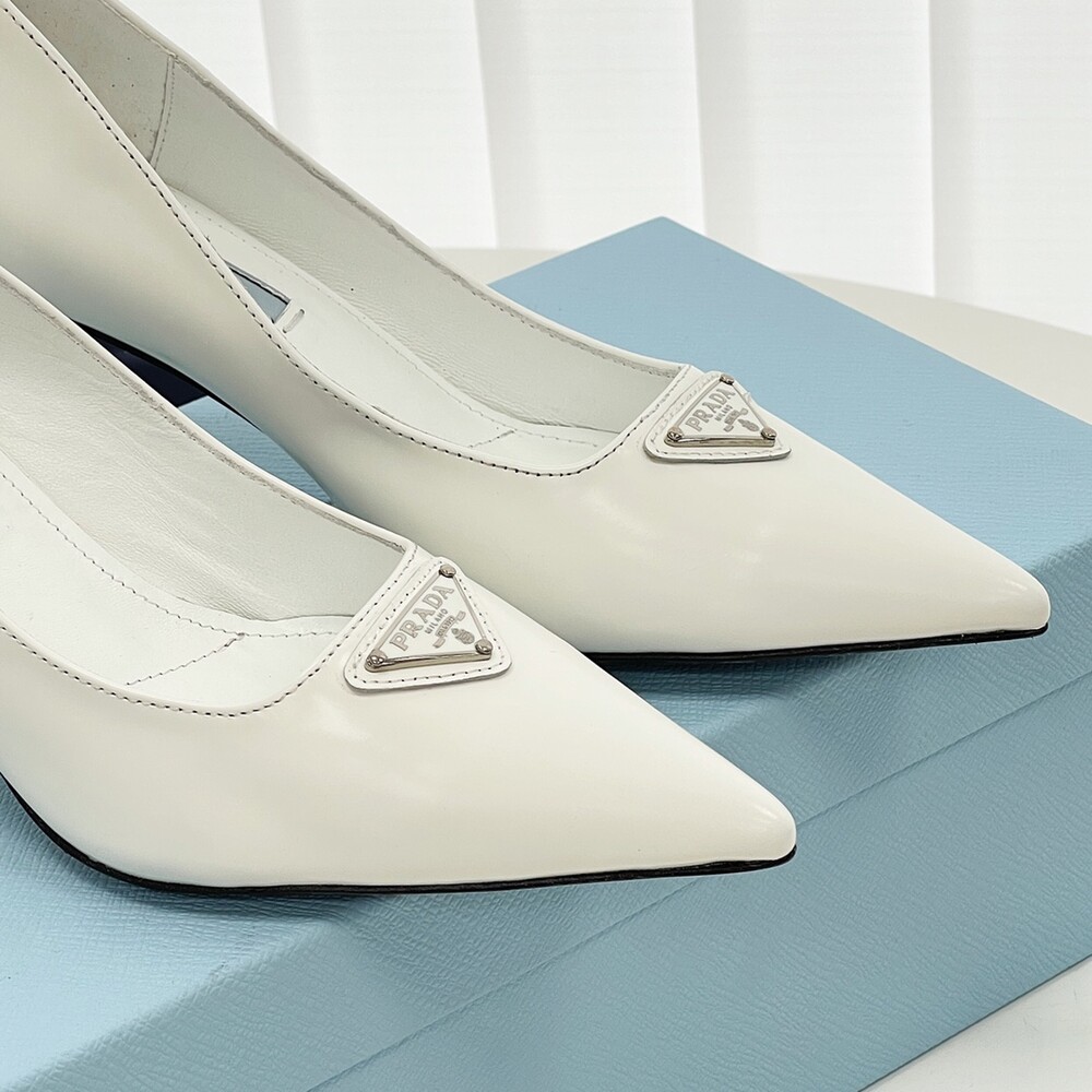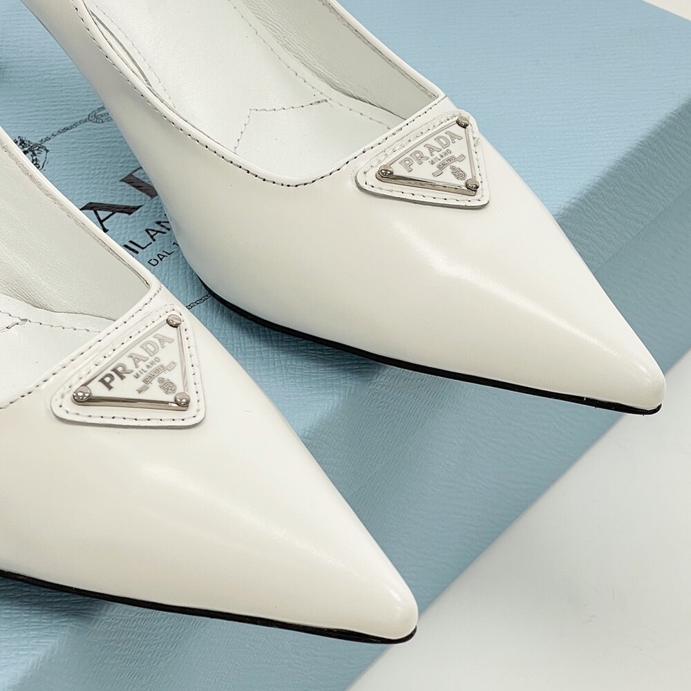 삼각로고 브러시드 레더 펌프스 힐[해외]