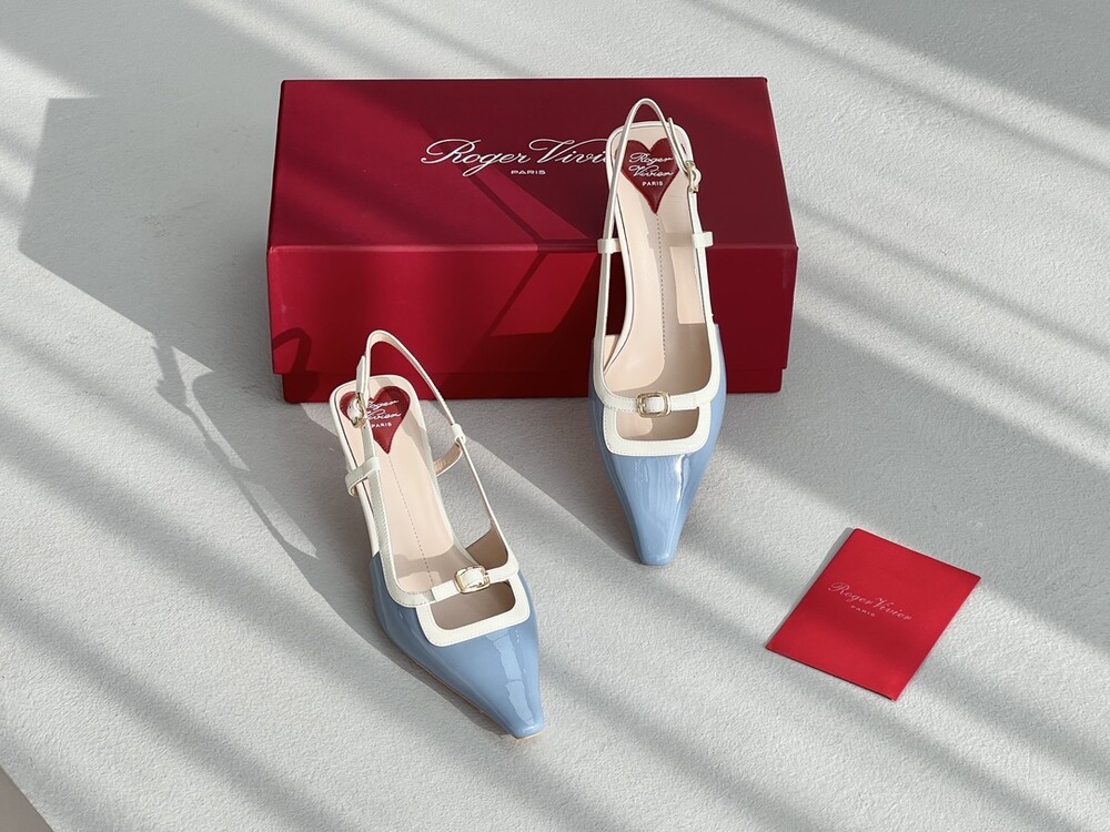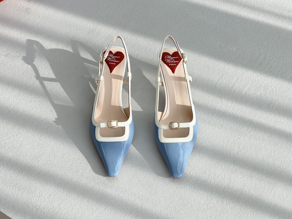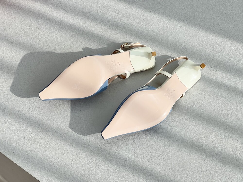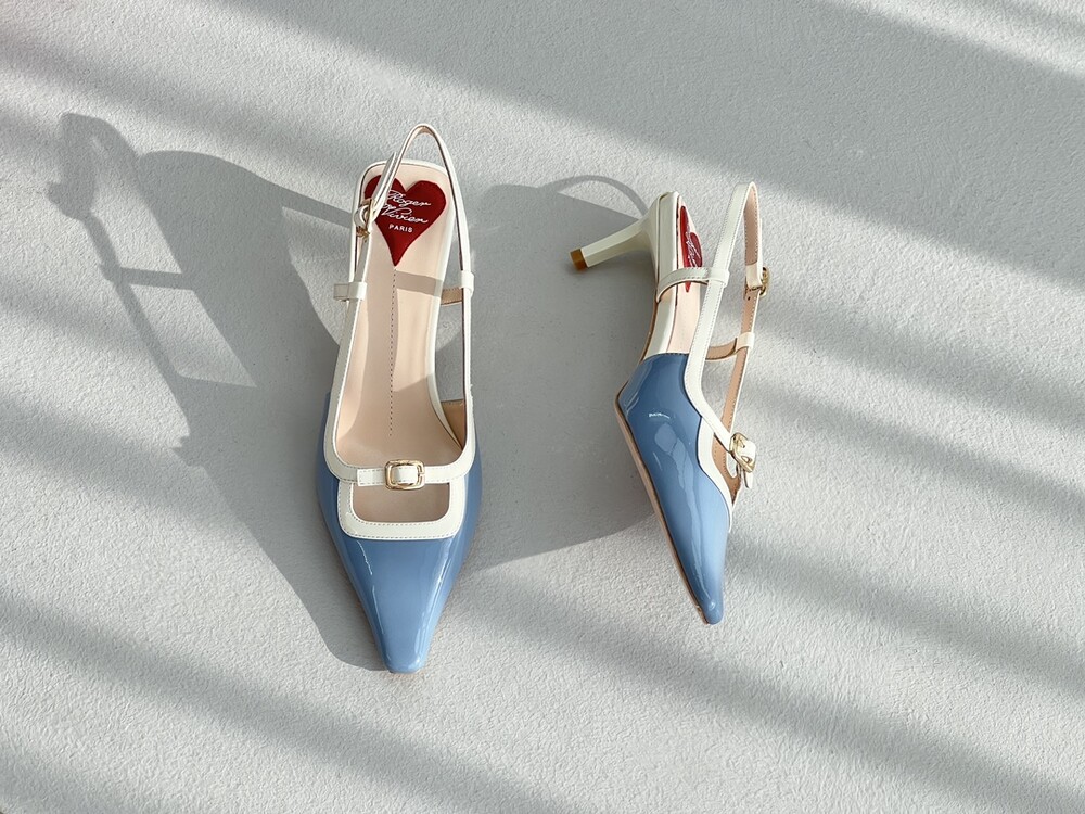 미니 버클 페이턴트 가죽 백 스트랩 펌프스.