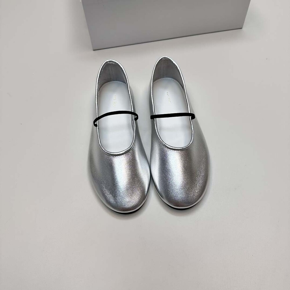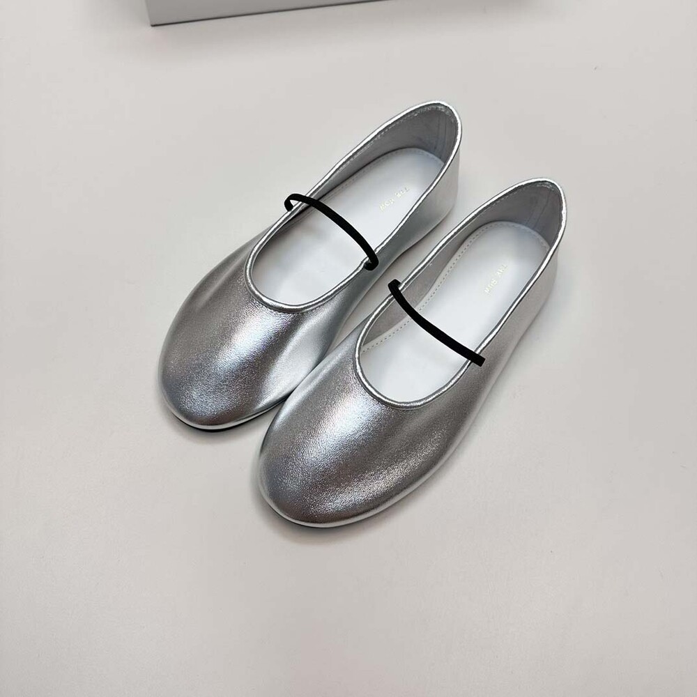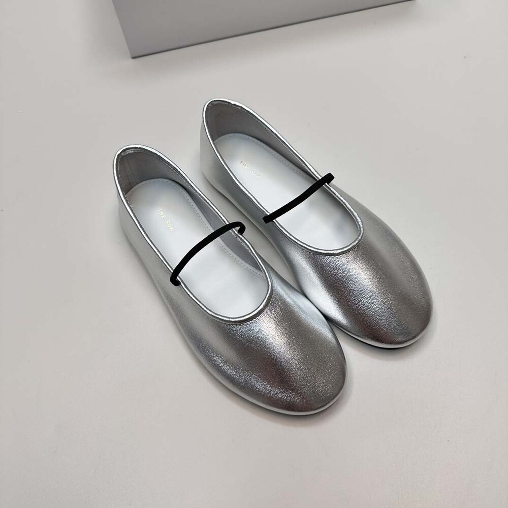 T.he Row 플랫 소프트 발레 슈즈가 있습니다