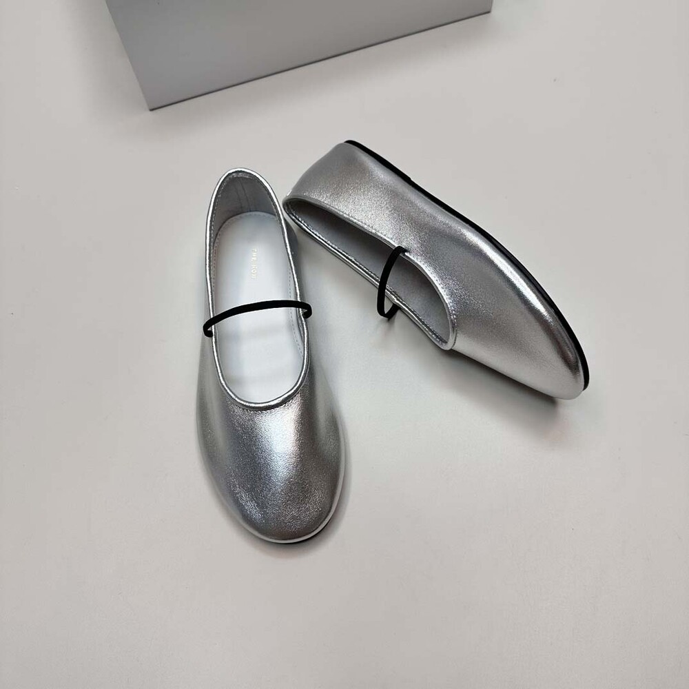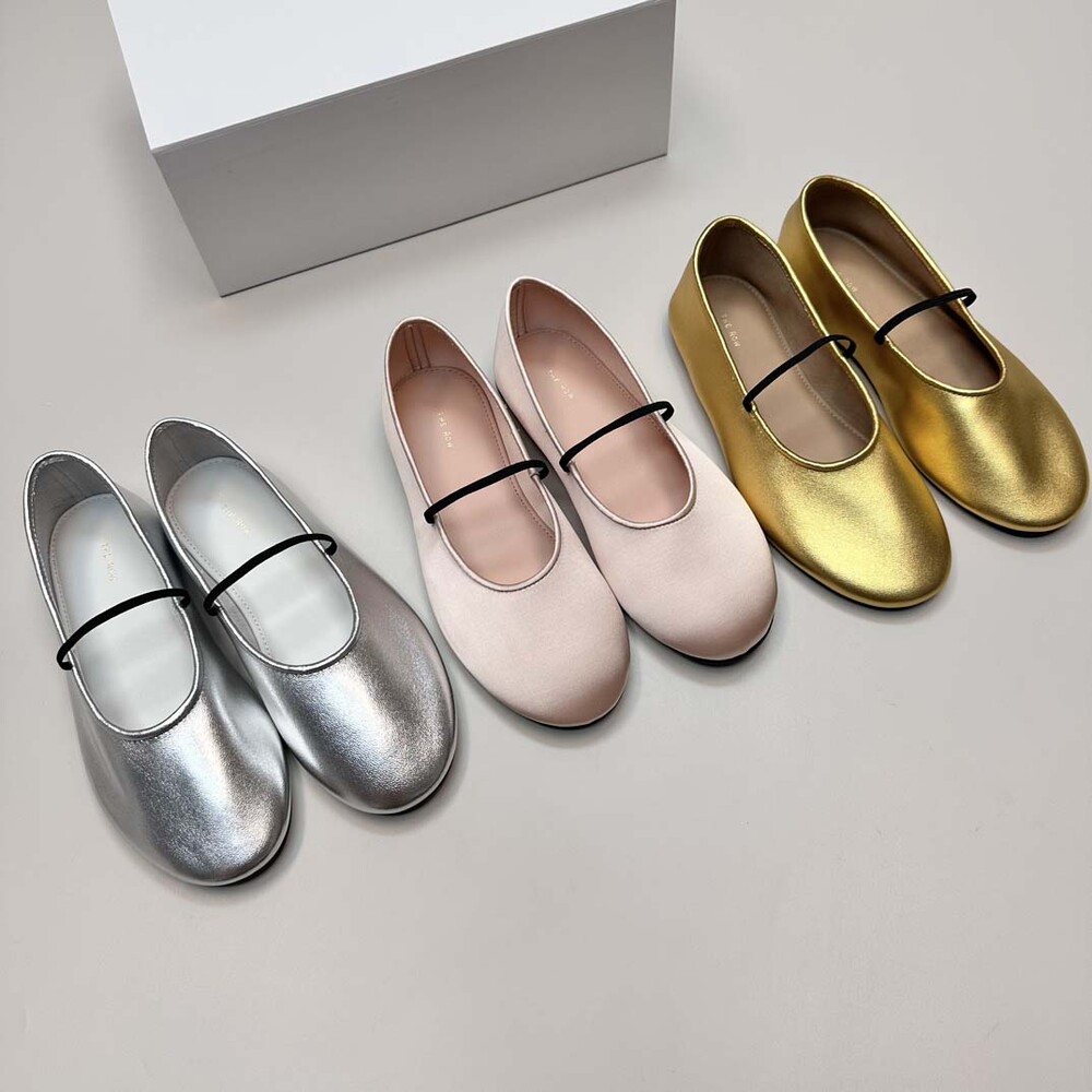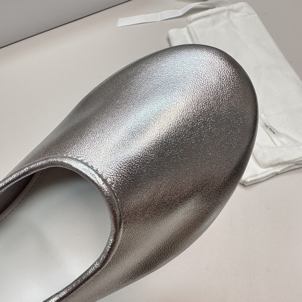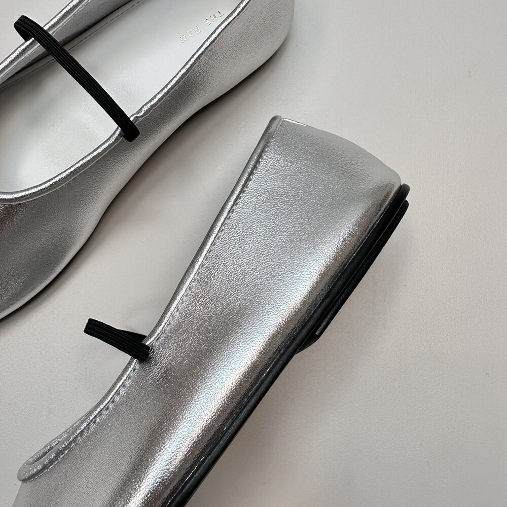 T.he Row 플랫 소프트 발레 슈즈가 있습니다