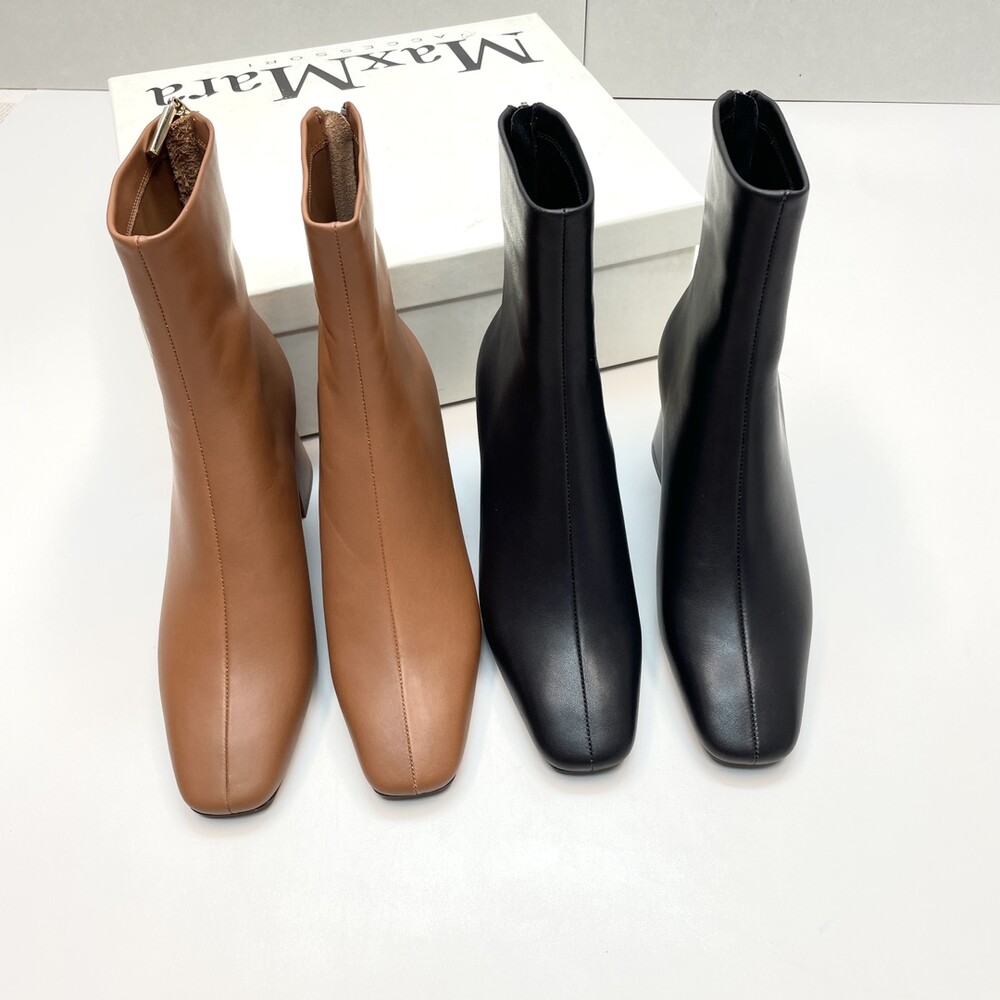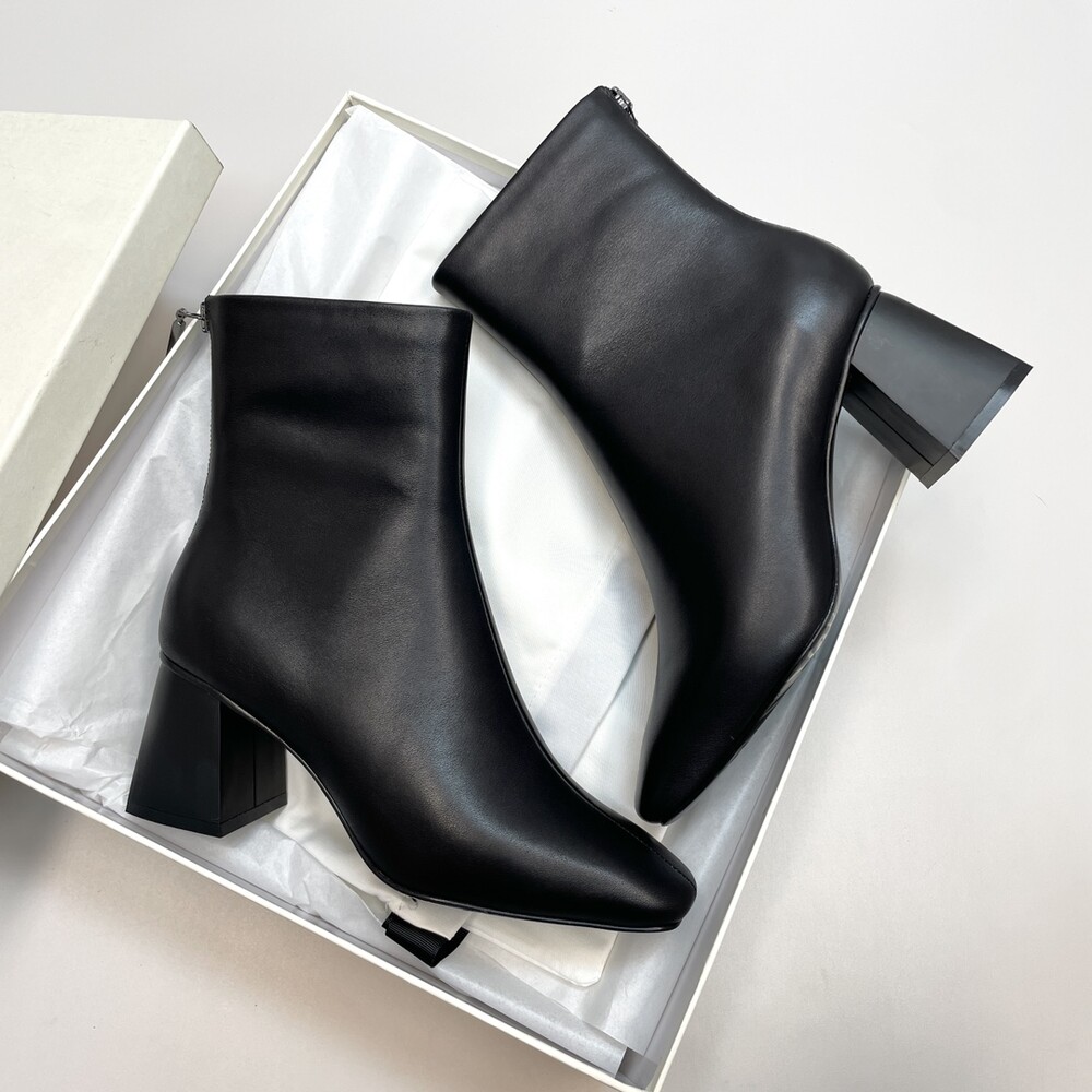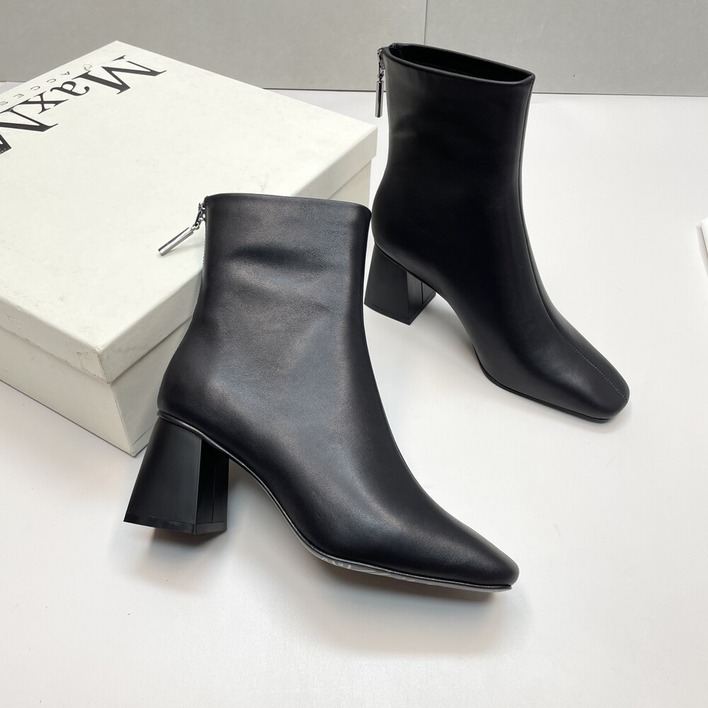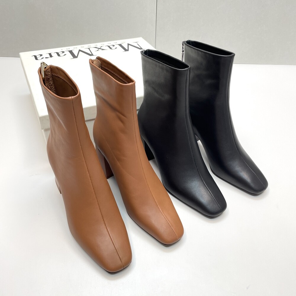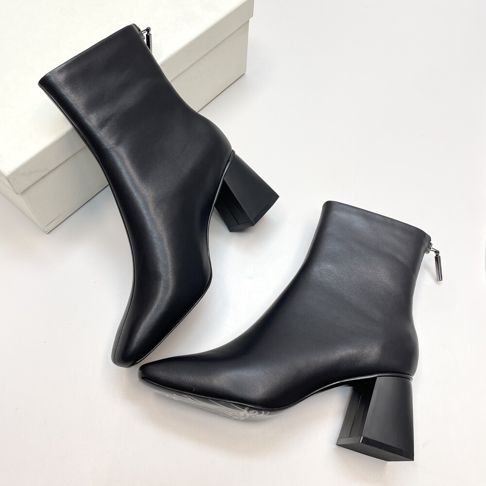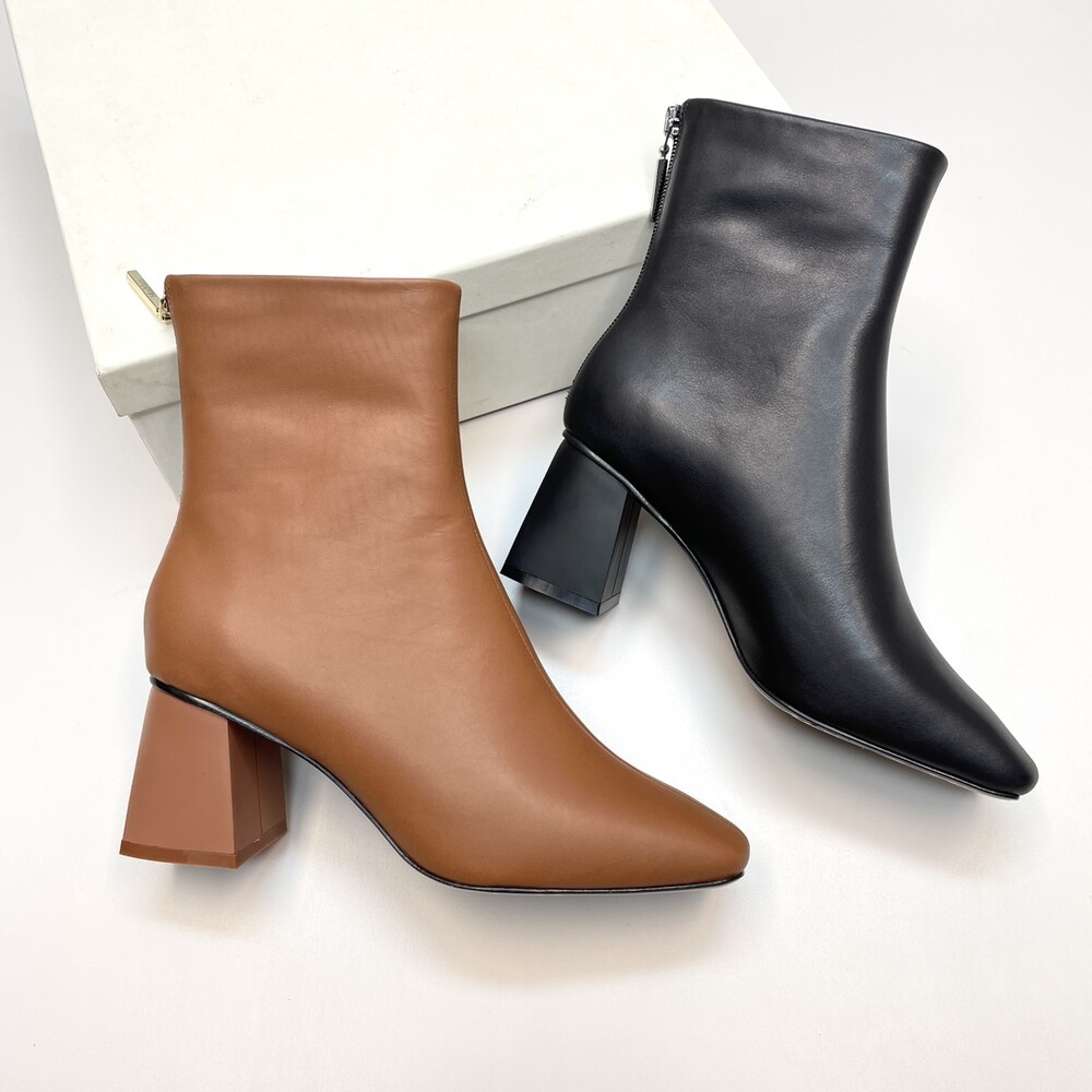 포인티드 토 백 지퍼 스퀘어 힐 부츠