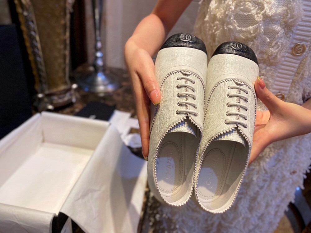 𝗖.𝗛𝗔𝗡𝗘𝗟 송아지 가죽 레이스업 인형 신발