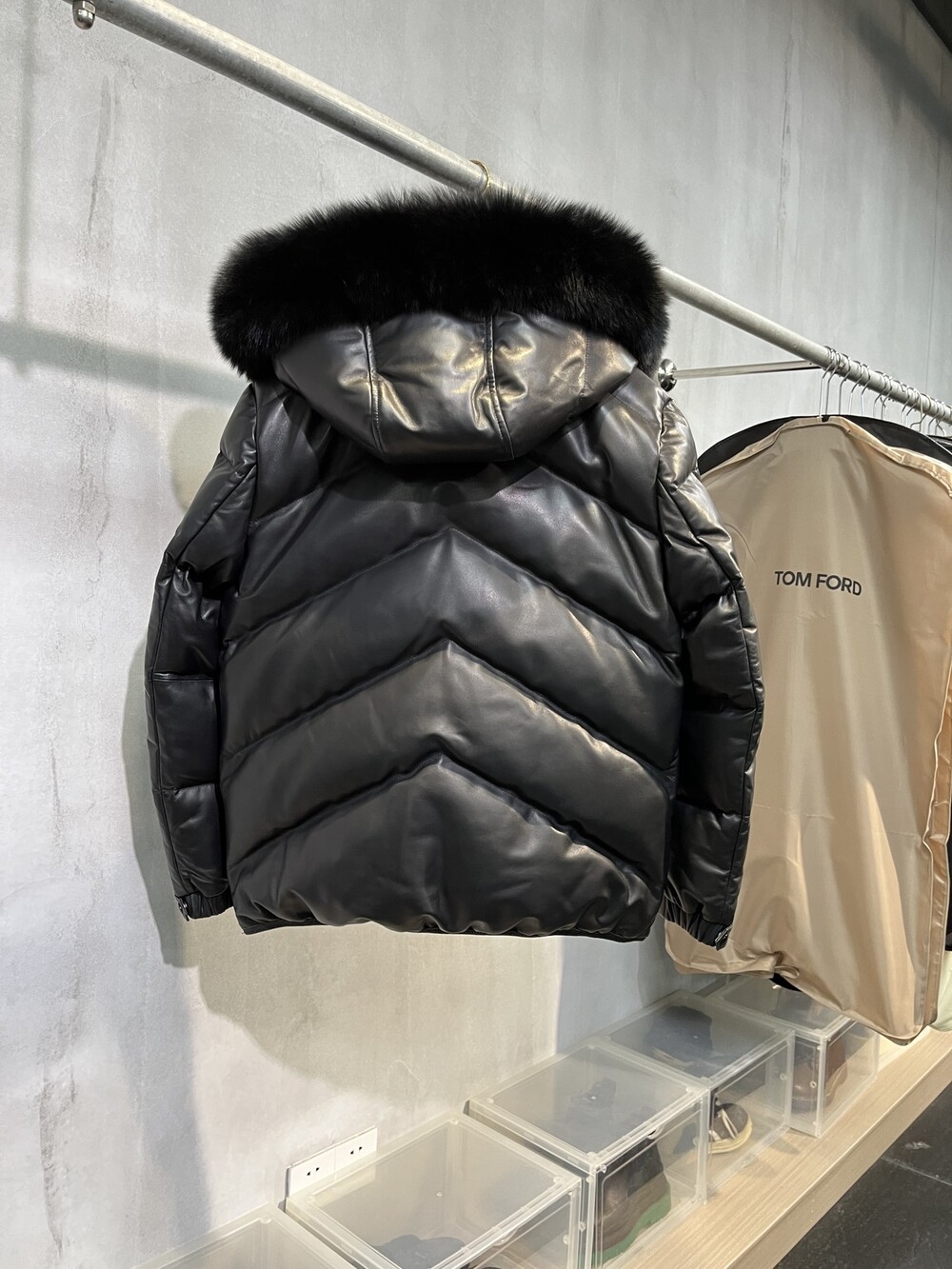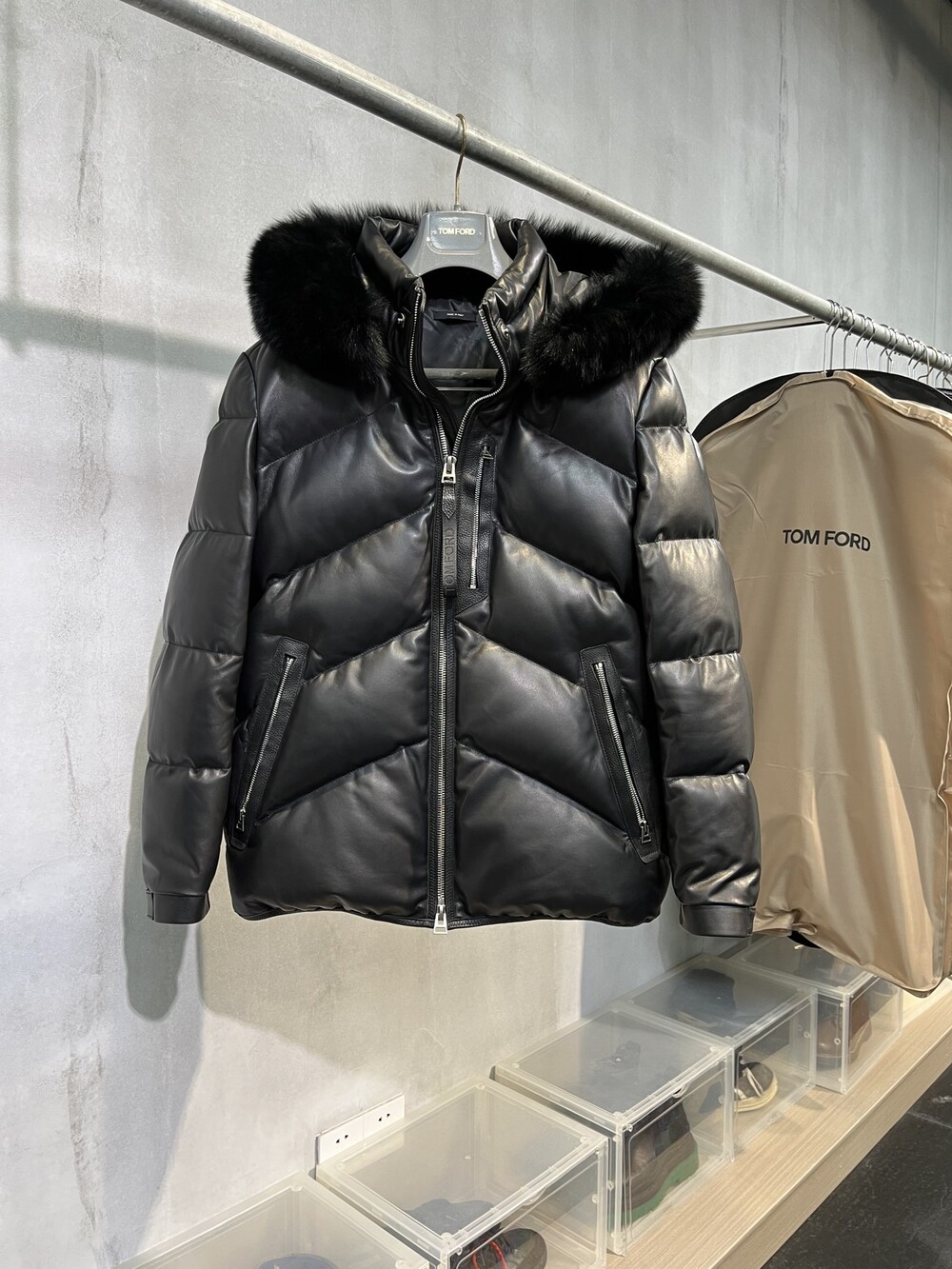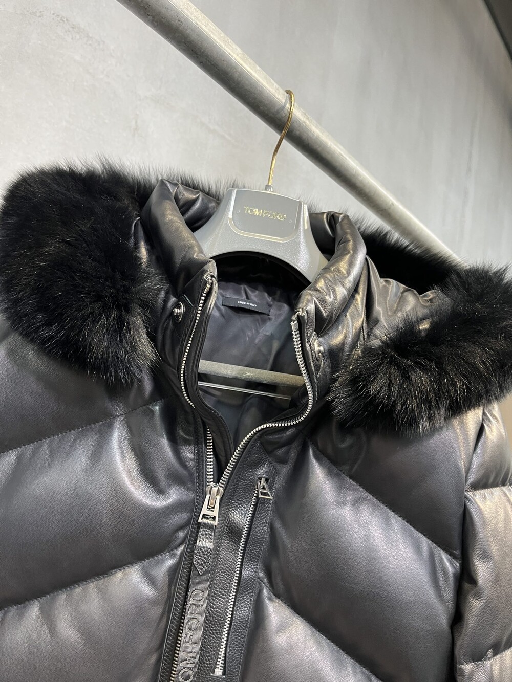 T.OM FORD 폭스퍼 후드 레더 다운 자켓[해외]