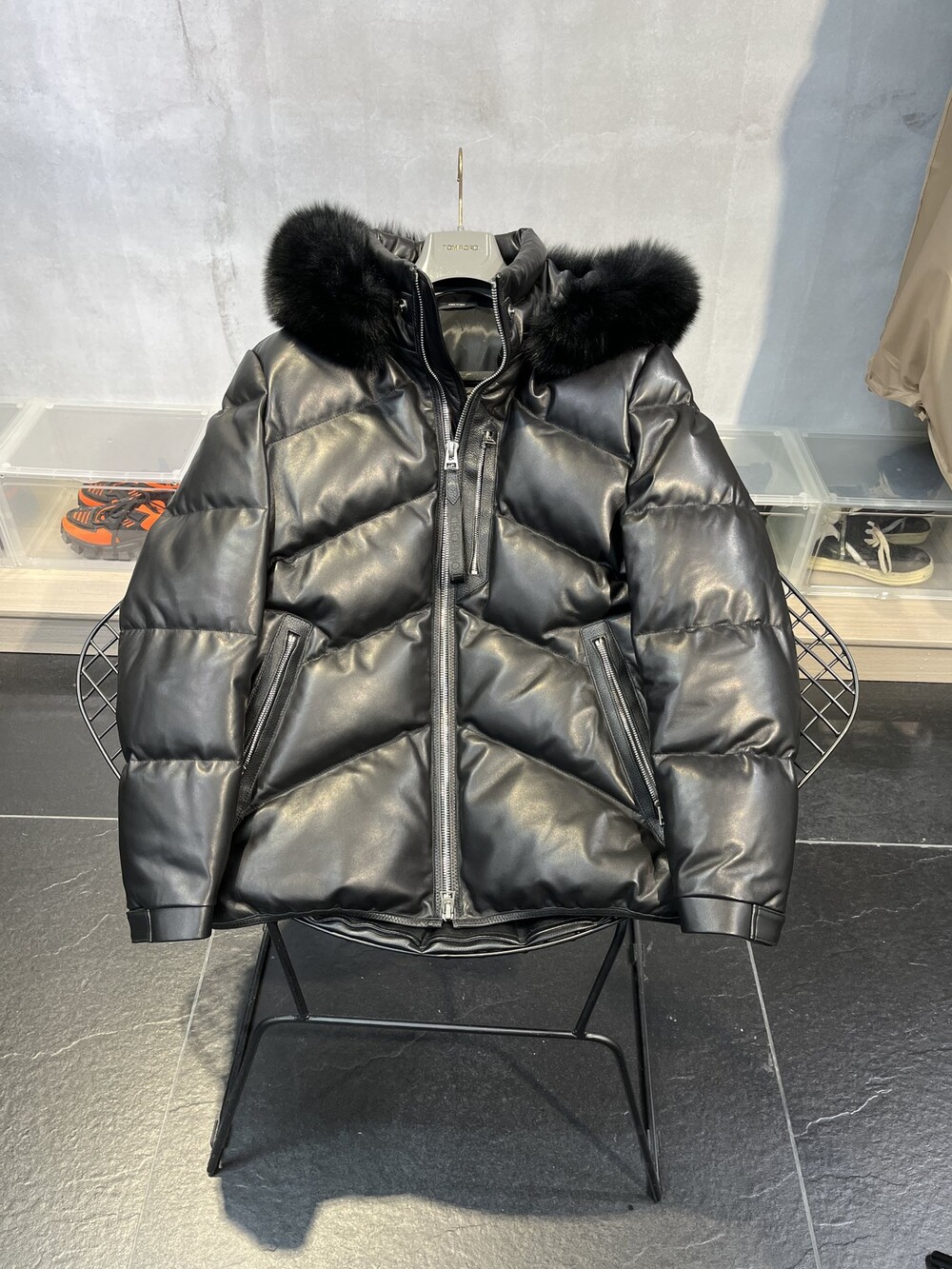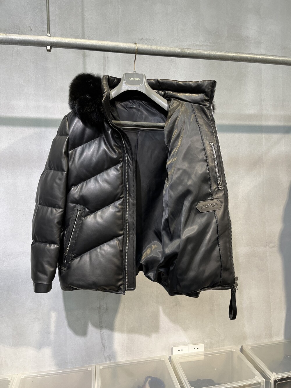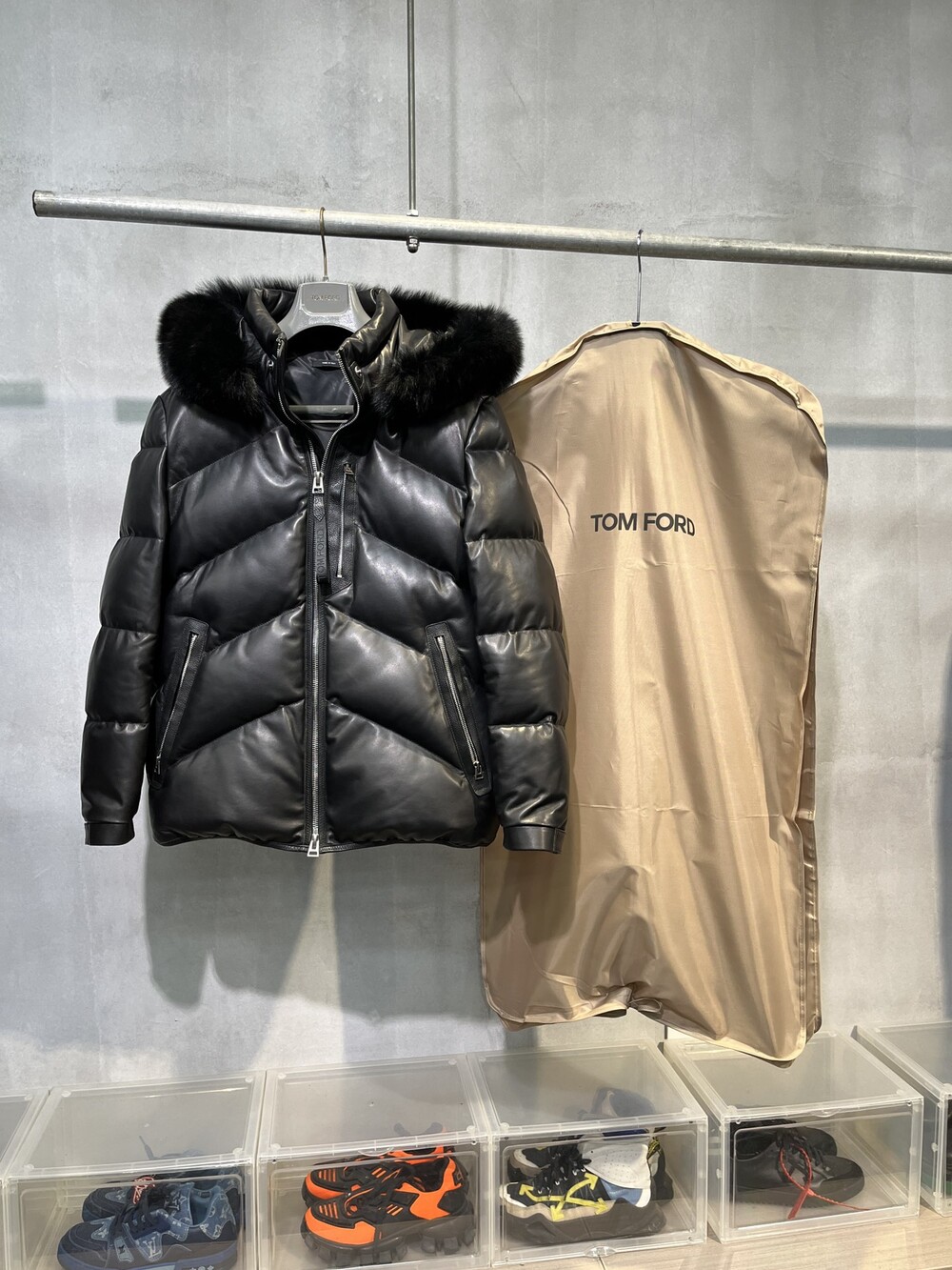 T.OM FORD 폭스퍼 후드 레더 다운 자켓[해외]