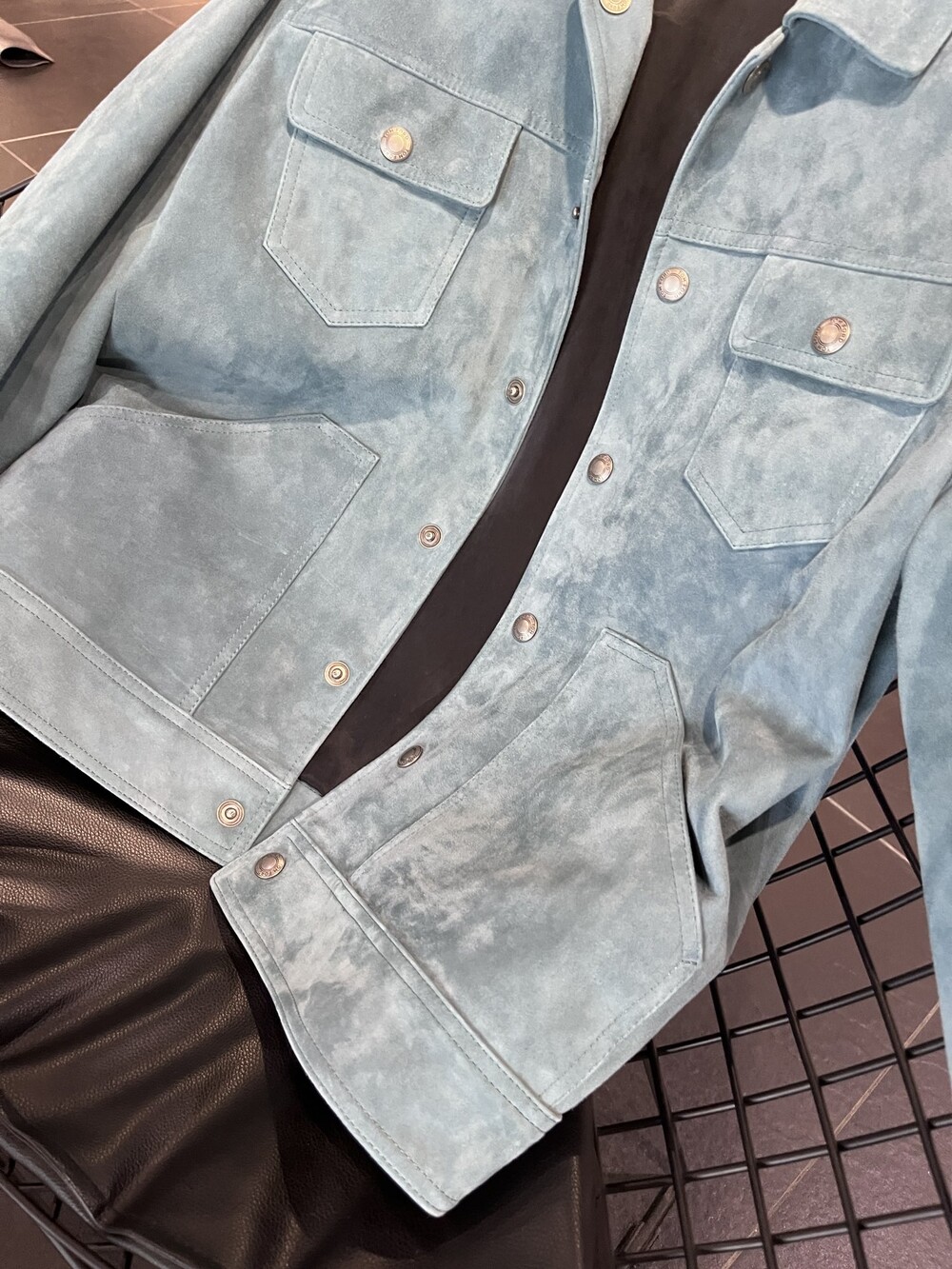 탑 재킷으로, 무광택 표면과 레트로한 느낌의
