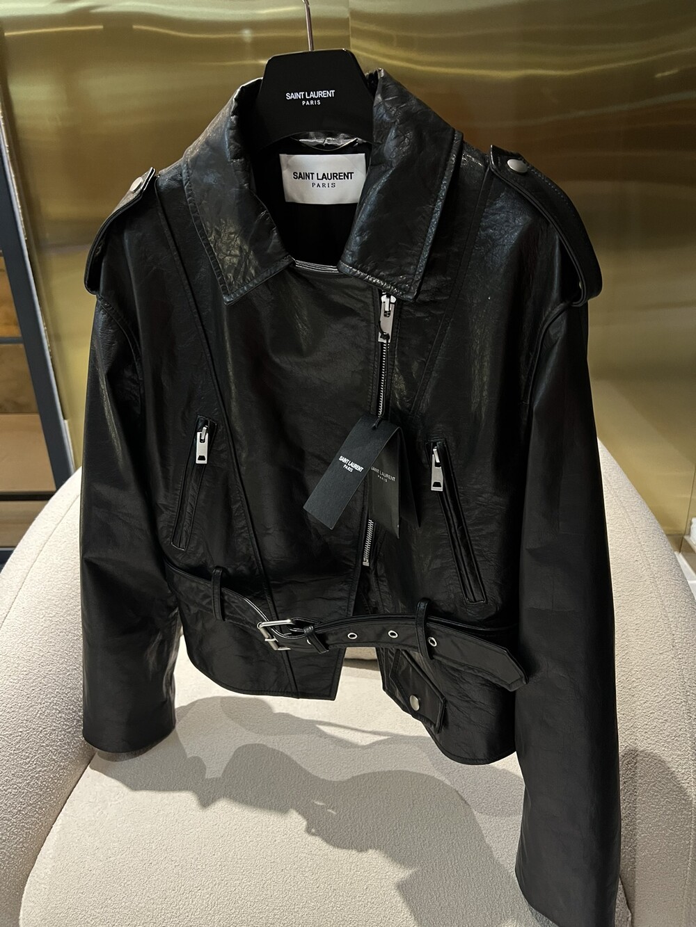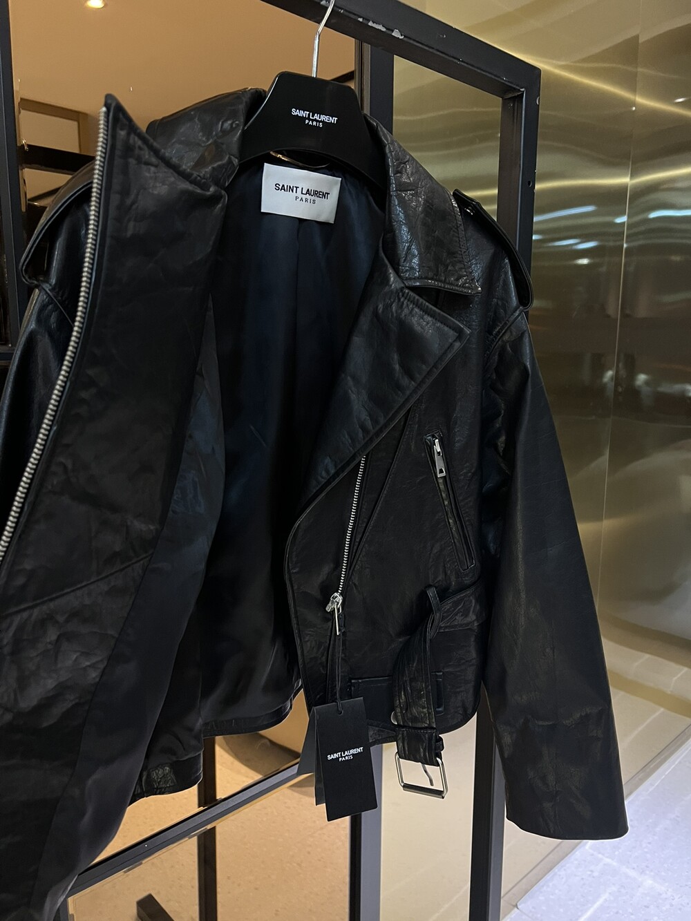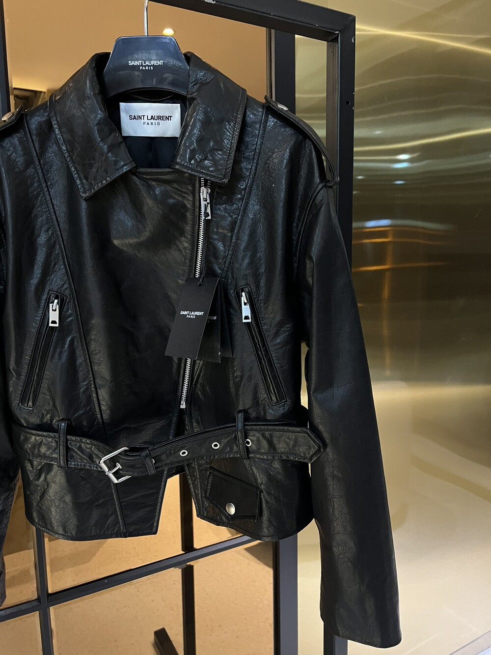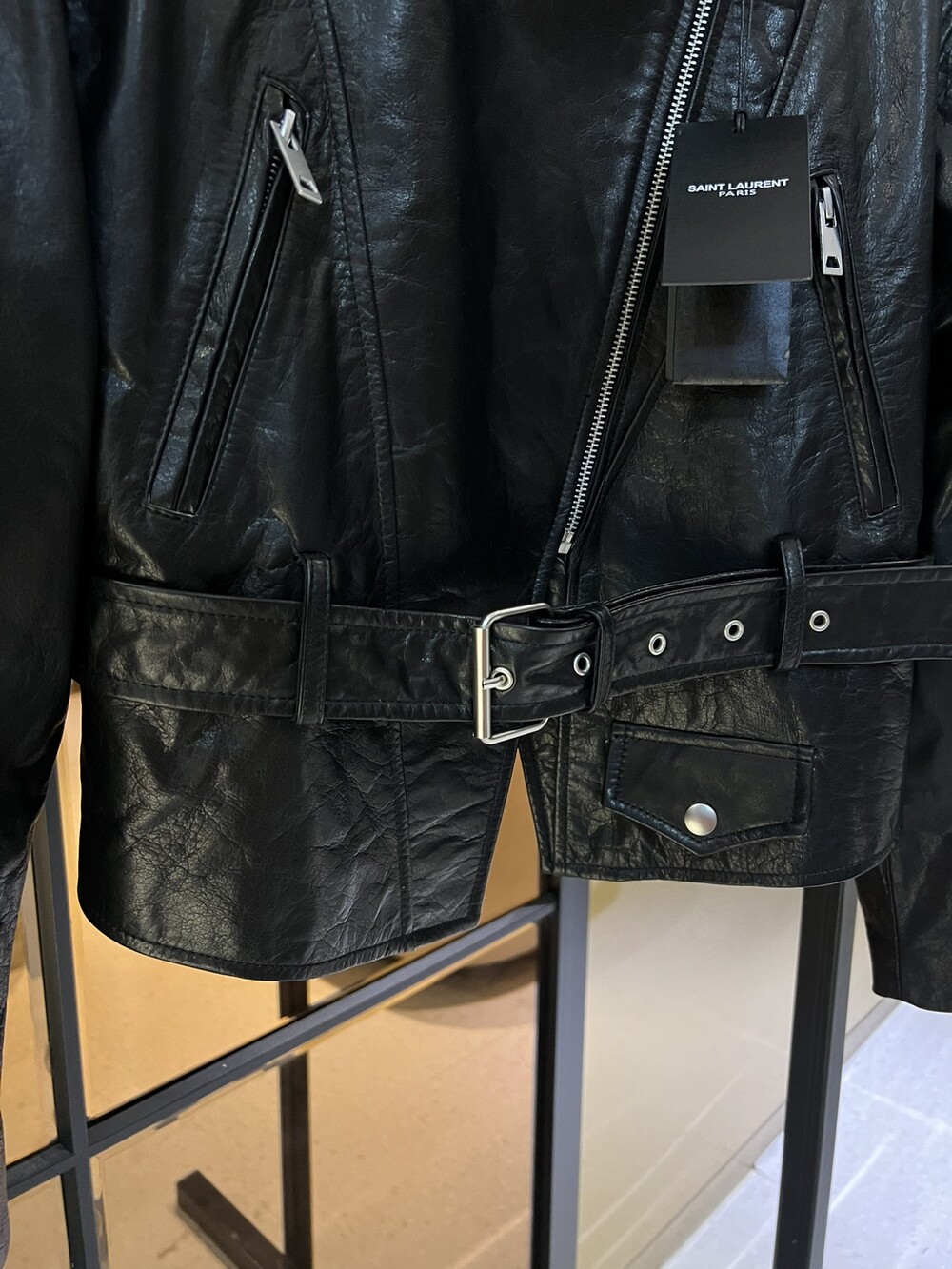 ysl 비대칭 지퍼 모터사이클 재킷,