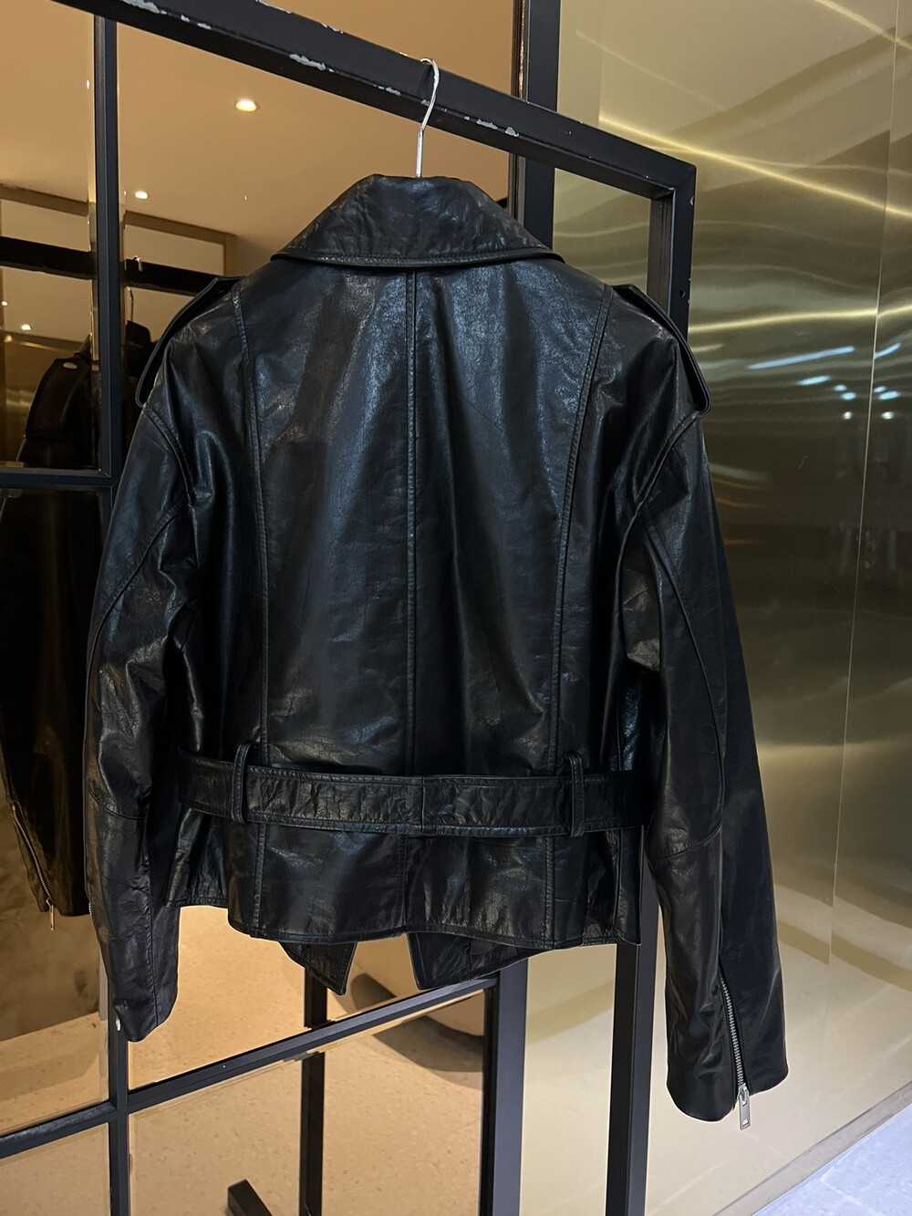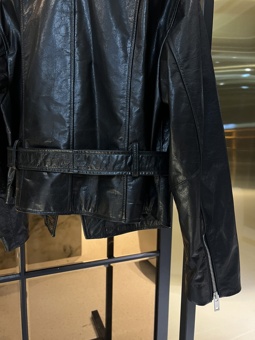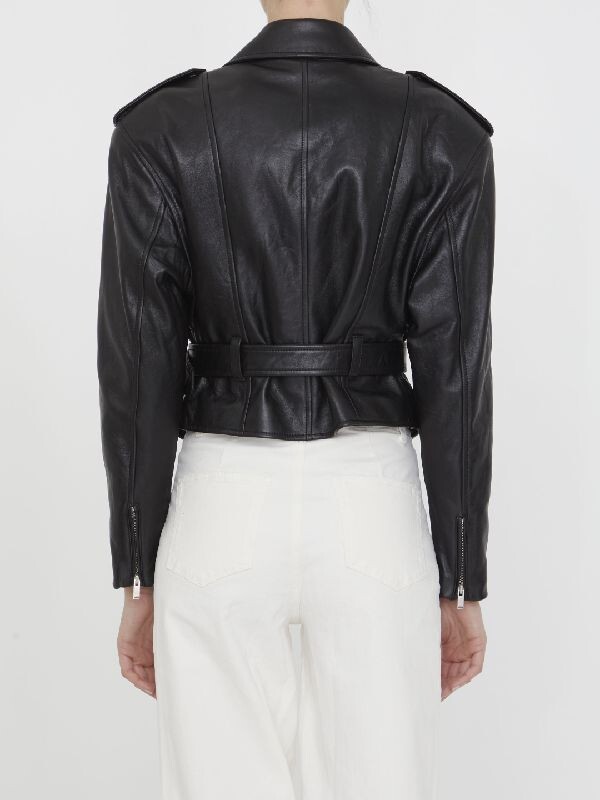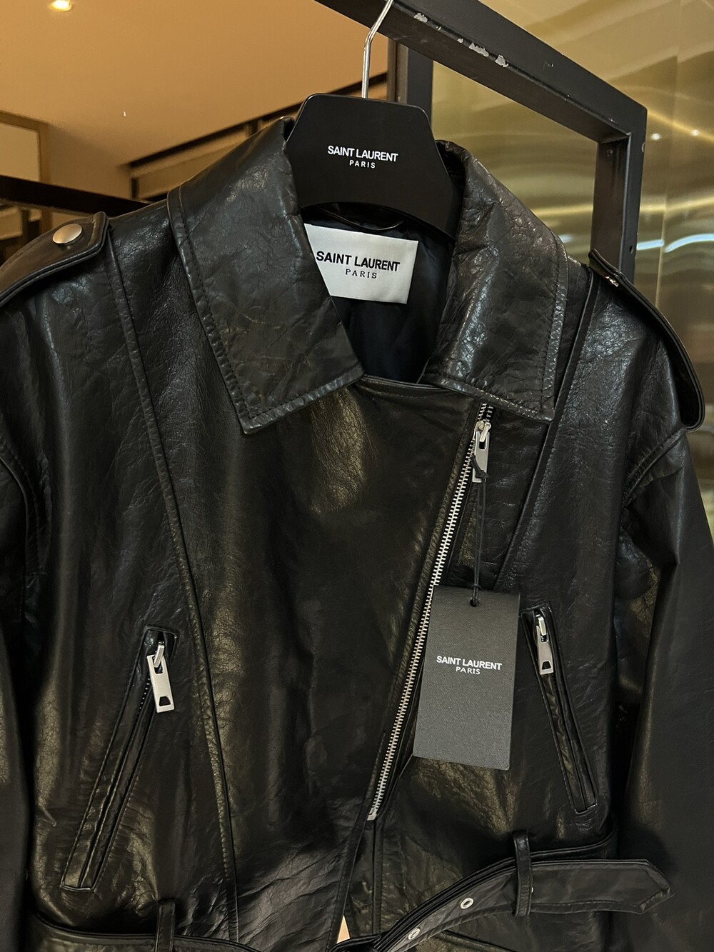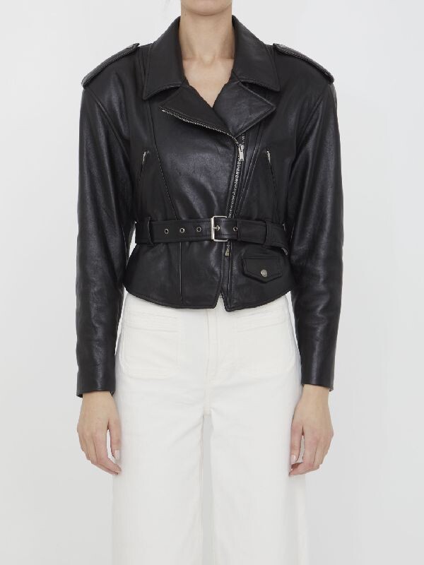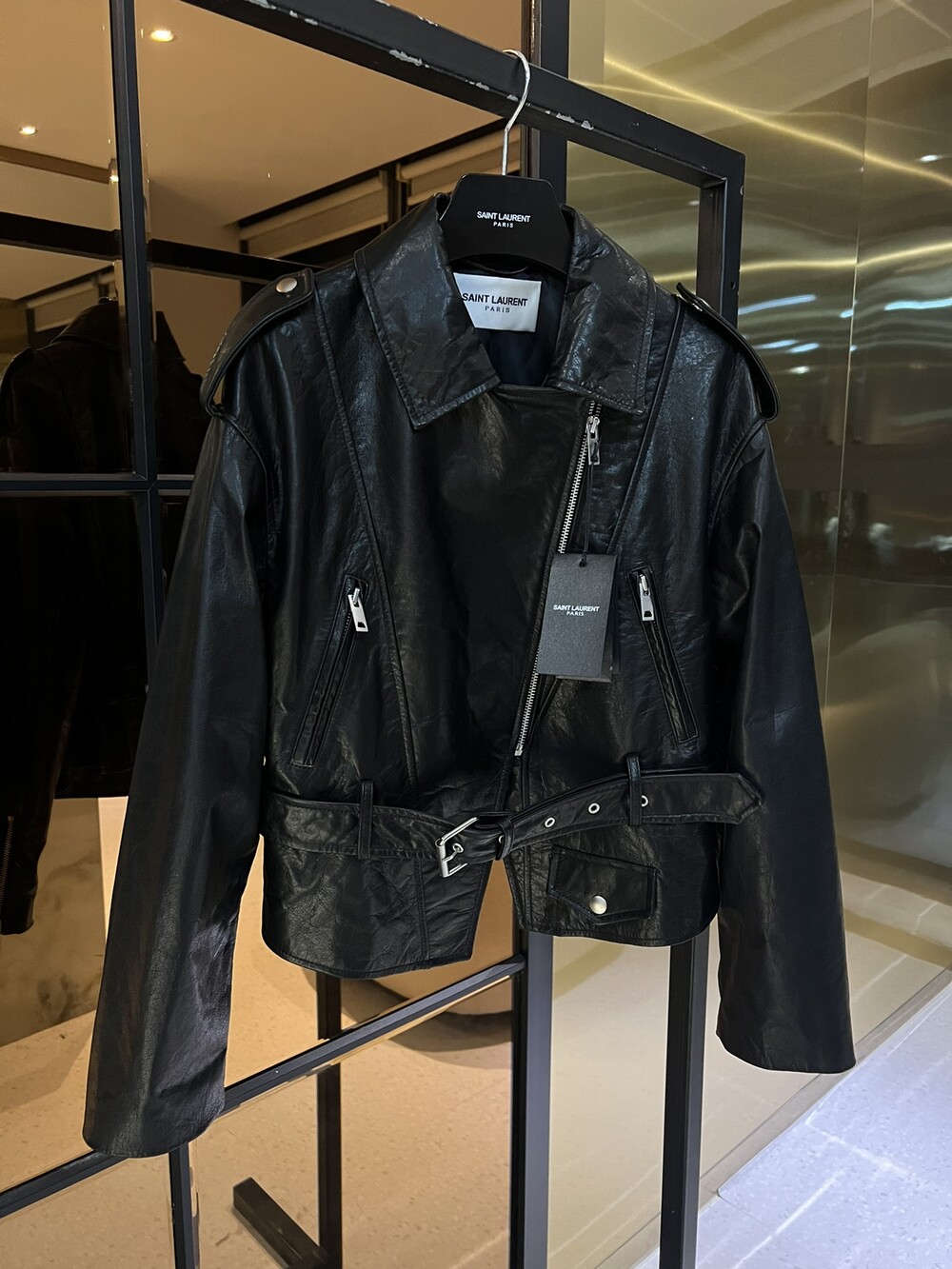 ysl 비대칭 지퍼 모터사이클 재킷,