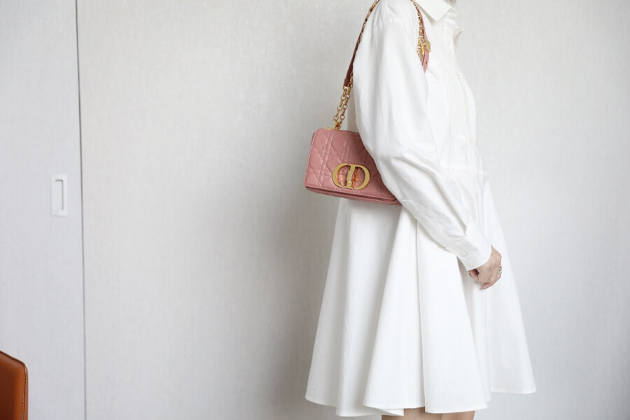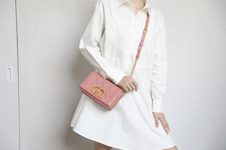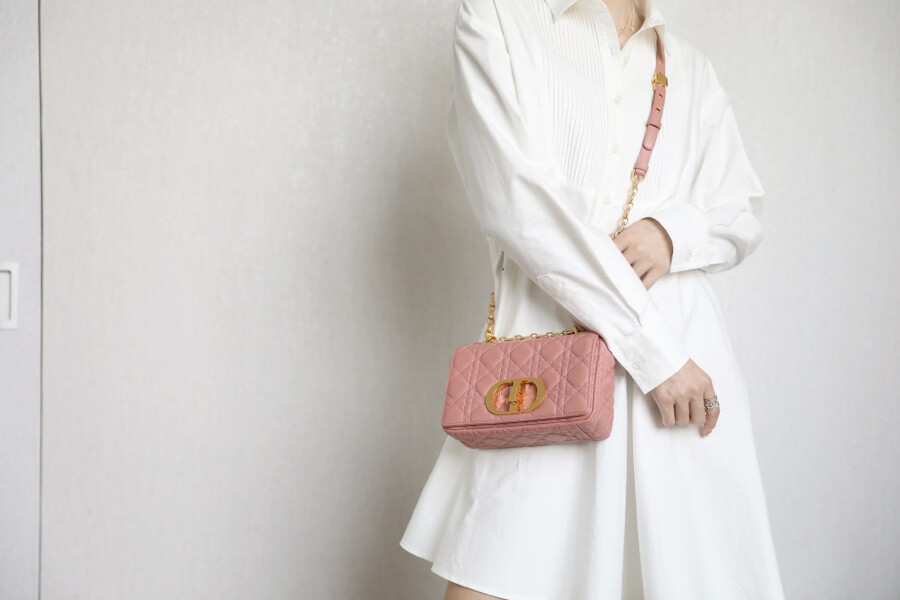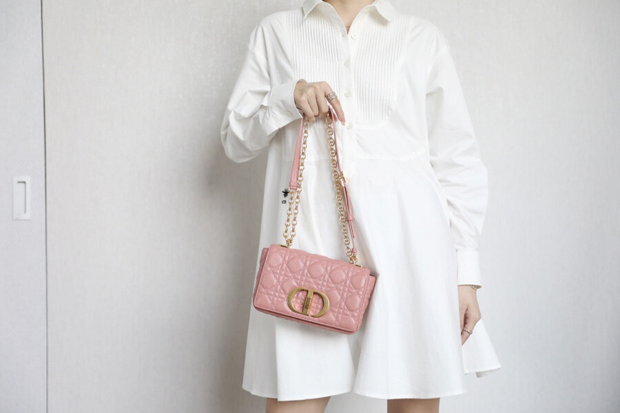 시그니처 'CD' 체인 숄더 스트랩과 함께