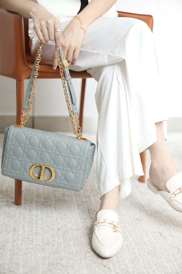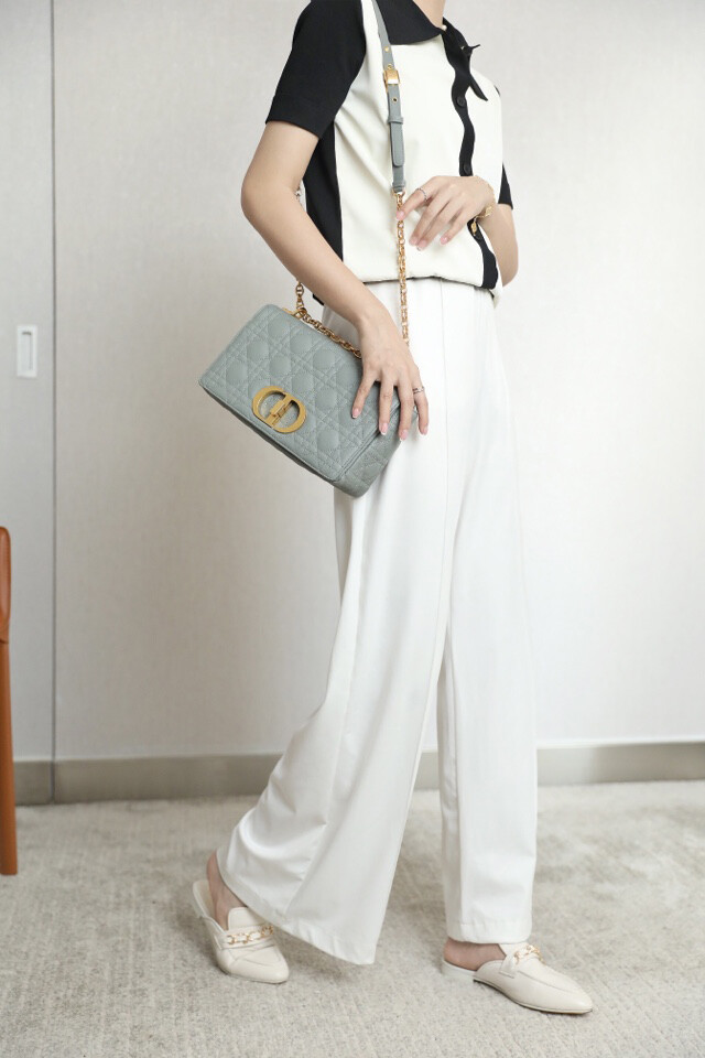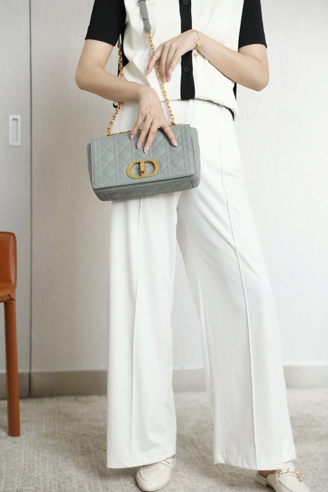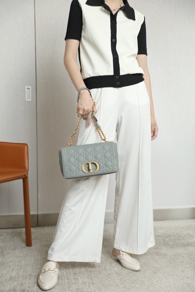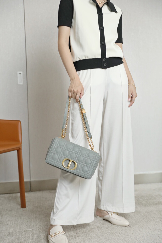 시그니처 'CD' 체인 숄더 스트랩과 함께