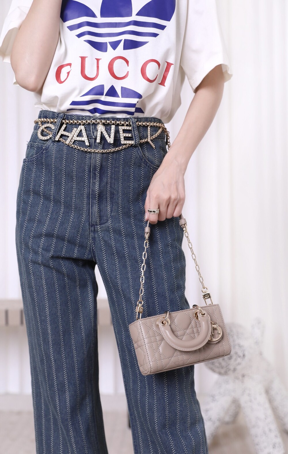 라이트 골드 메탈 "D 1 O R" 참장식으로