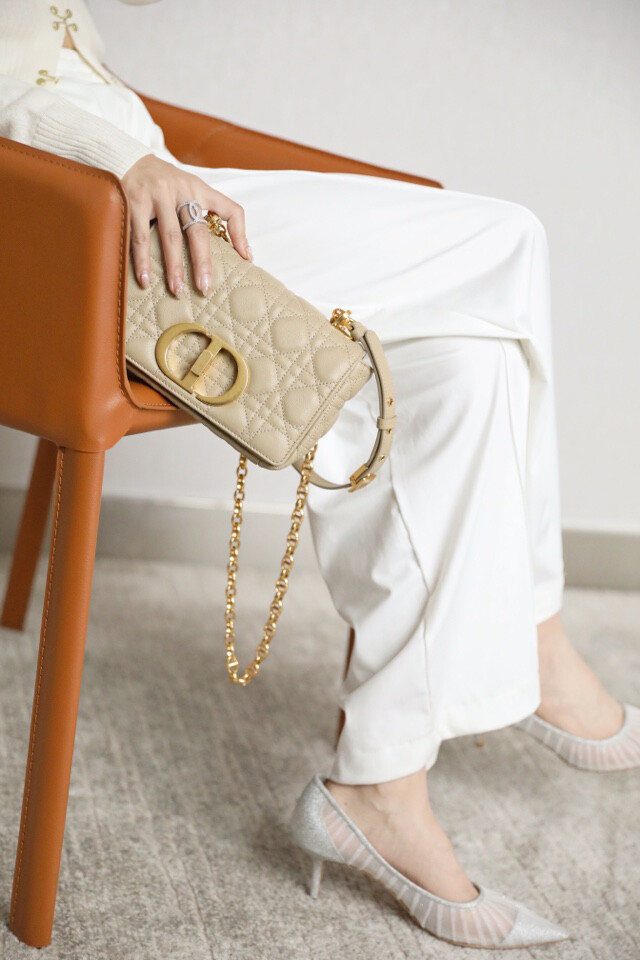 시그니처 'CD' 체인 숄더 스트랩과 함께