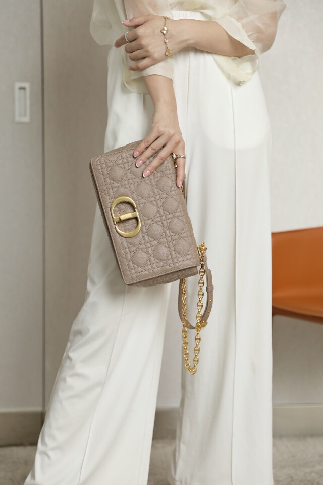시그니처 'CD' 체인 숄더 스트랩과 함께