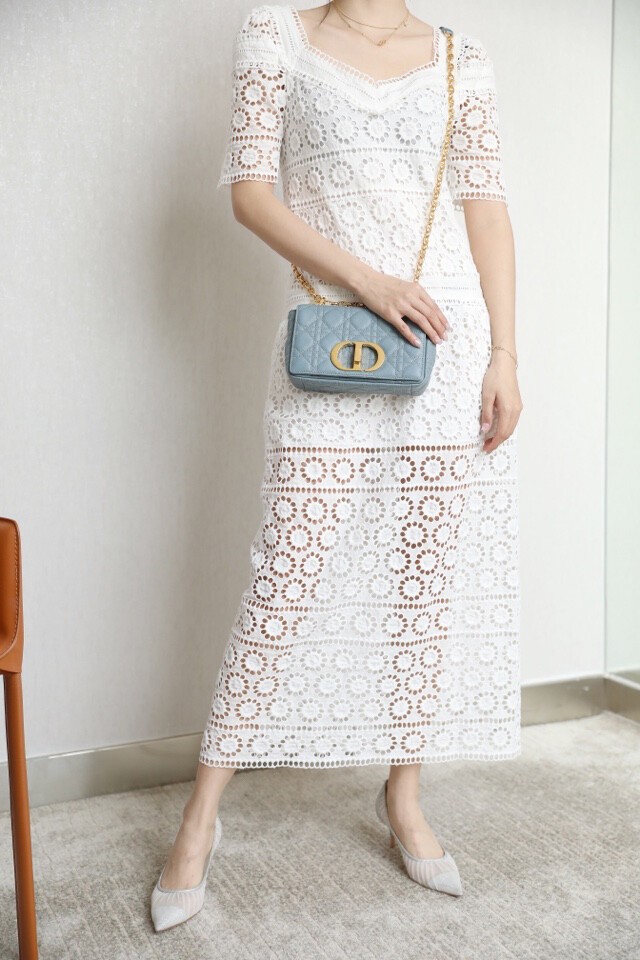 시그니처 'CD' 체인 숄더 스트랩과 함께