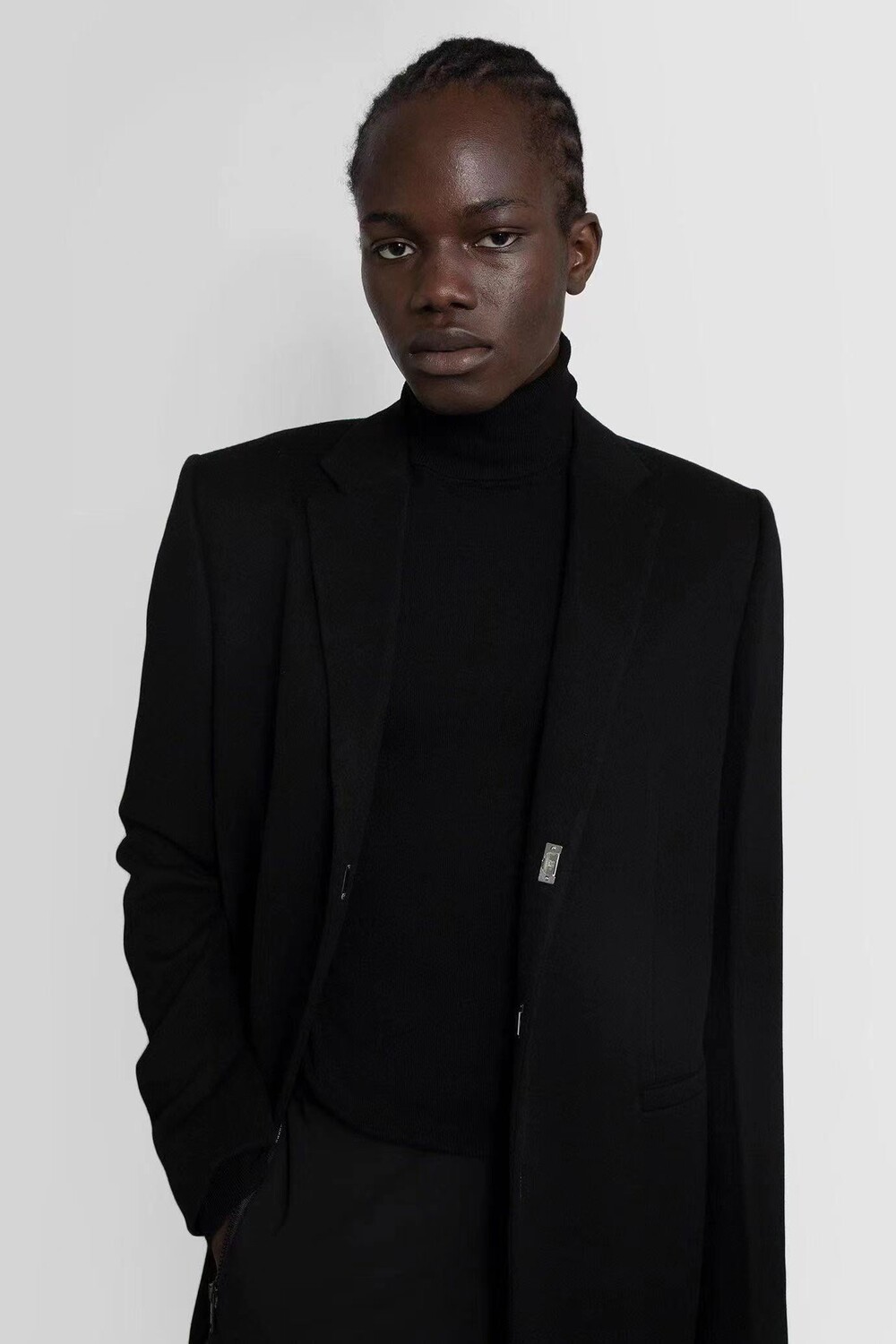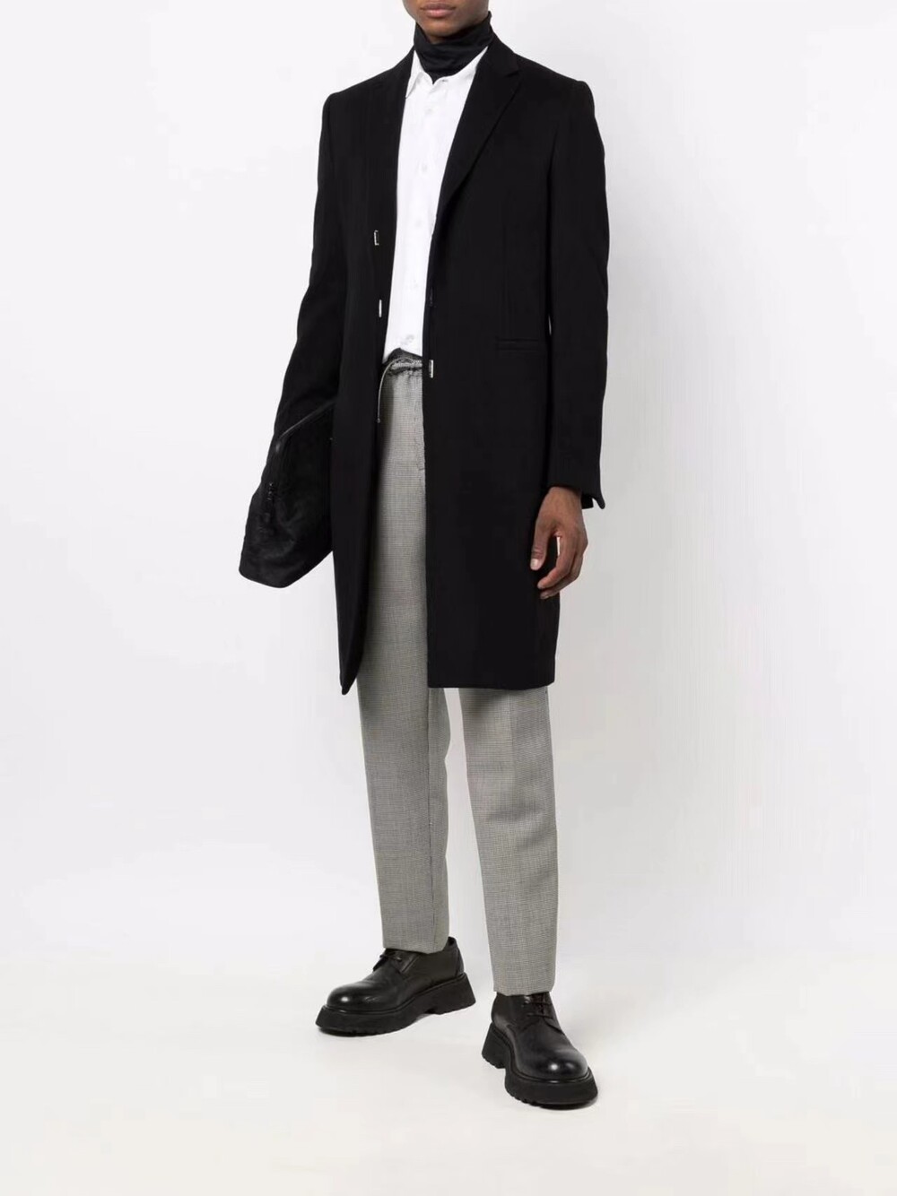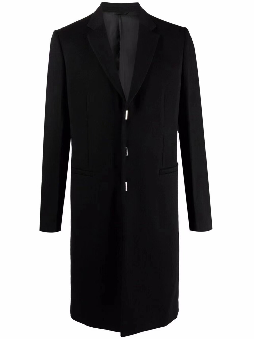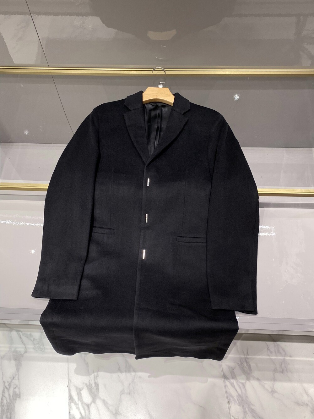 블랙 고급스러운 3버튼 라펠 코트,