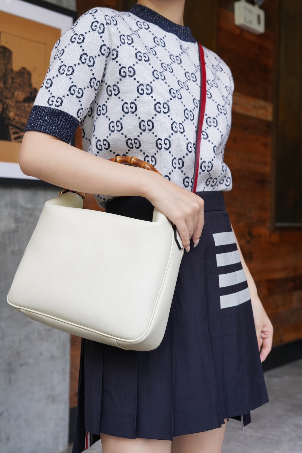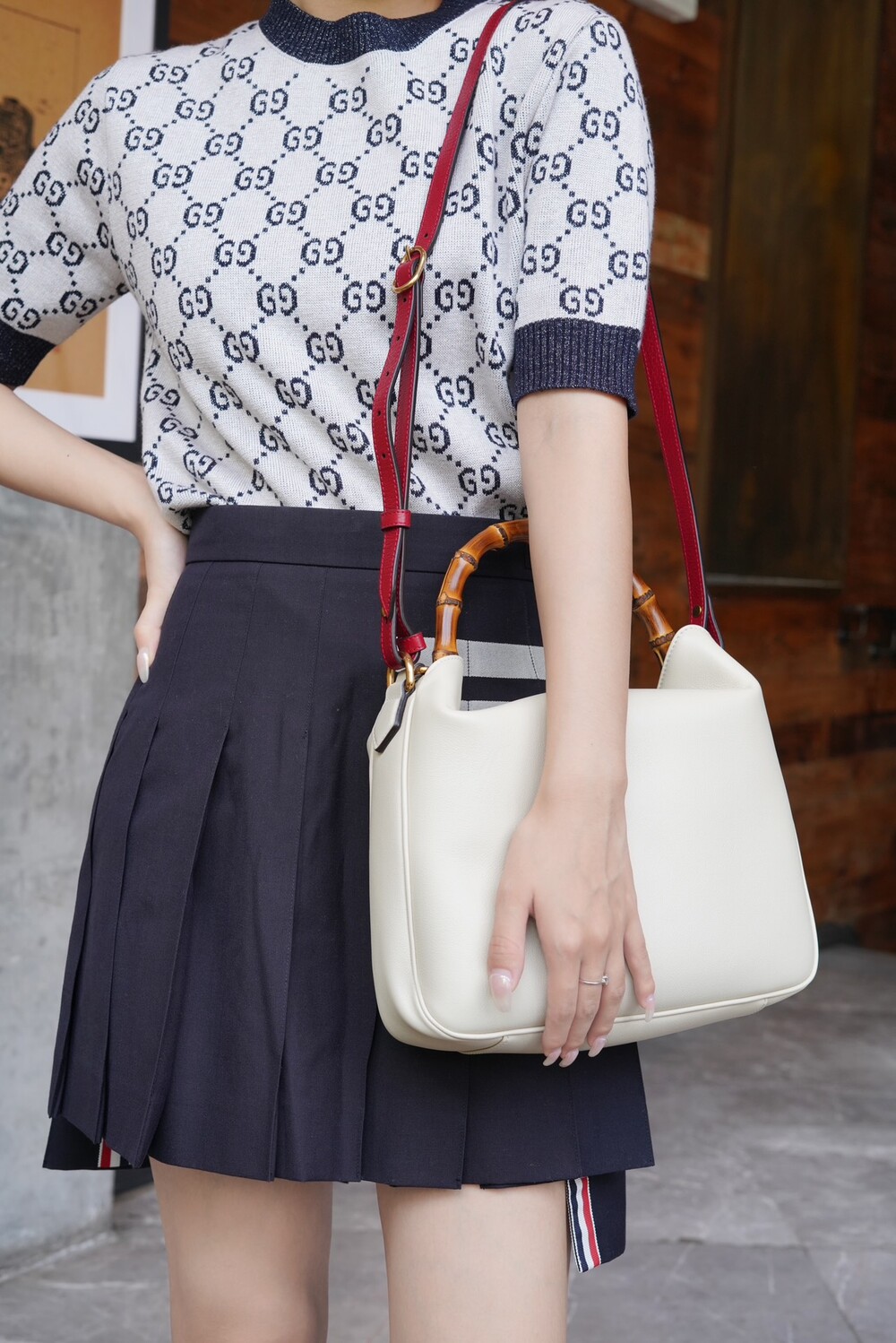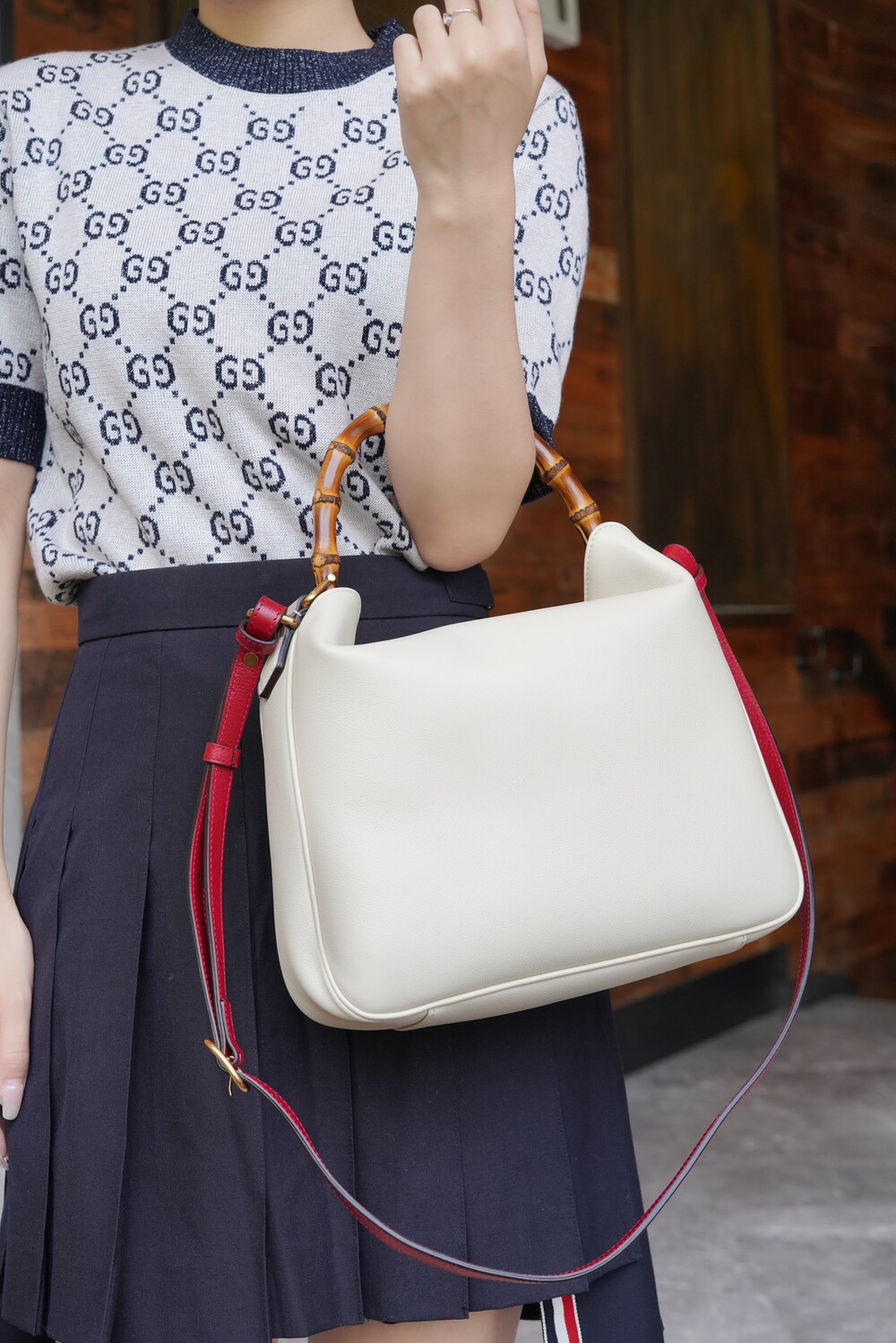 ํ์ดํธ ์ปฌ๋ฌ์ ๊ฐ์ฃฝ ์ฅ์์ผ๋ก ํฌ์ธํธ๋ฅผ ์ฃผ์์ผ๋ฉฐ