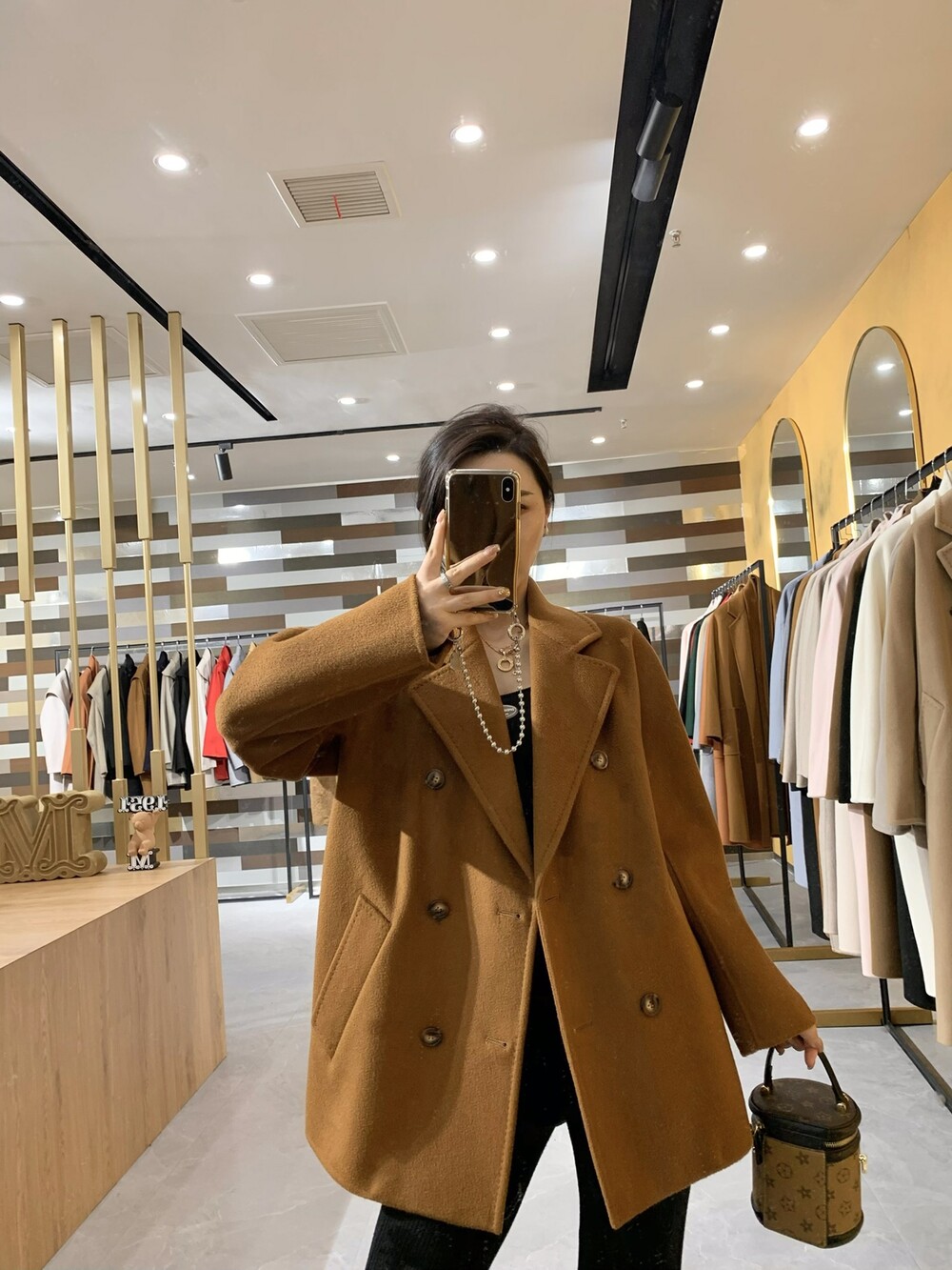 더블 브레스트 라펠 퓨어 캐시미어 재킷,