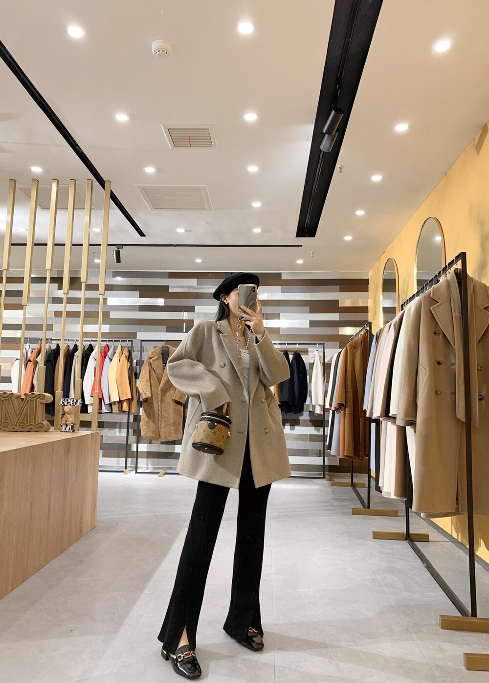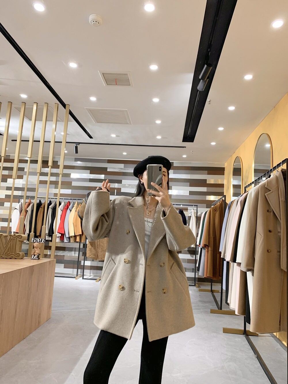 더블 브레스트 라펠 퓨어 캐시미어 재킷,