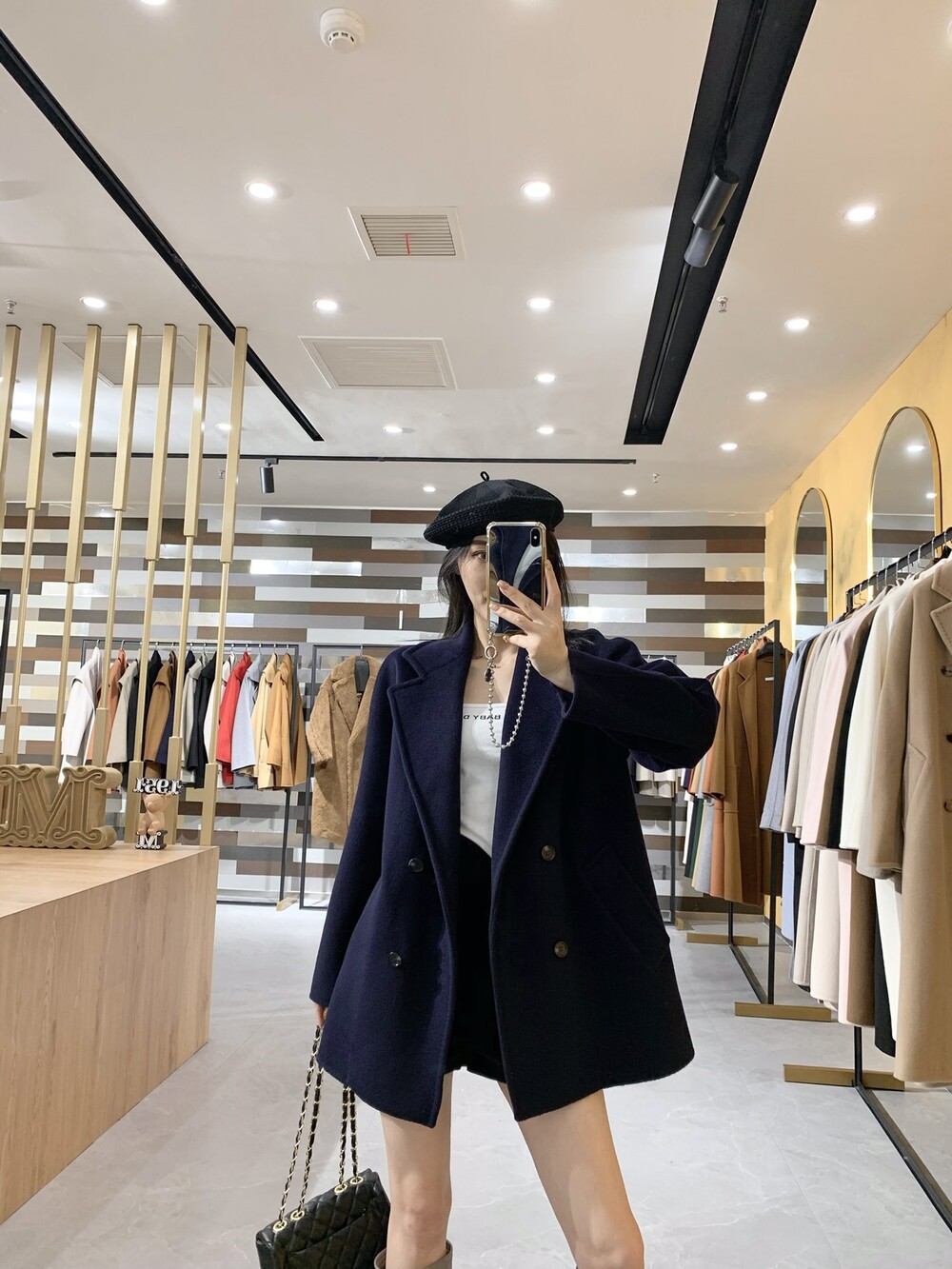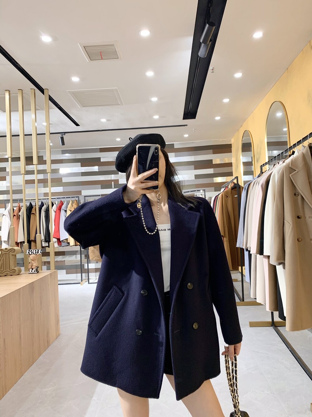 더블 브레스트 라펠 퓨어 캐시미어 재킷,