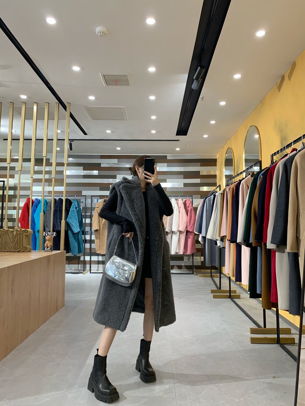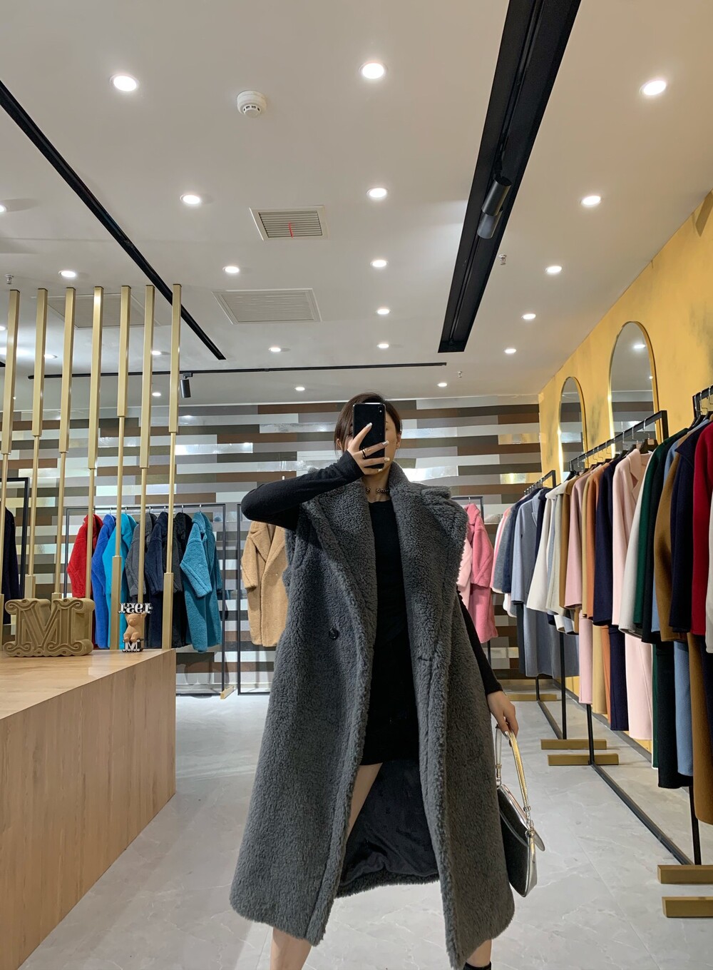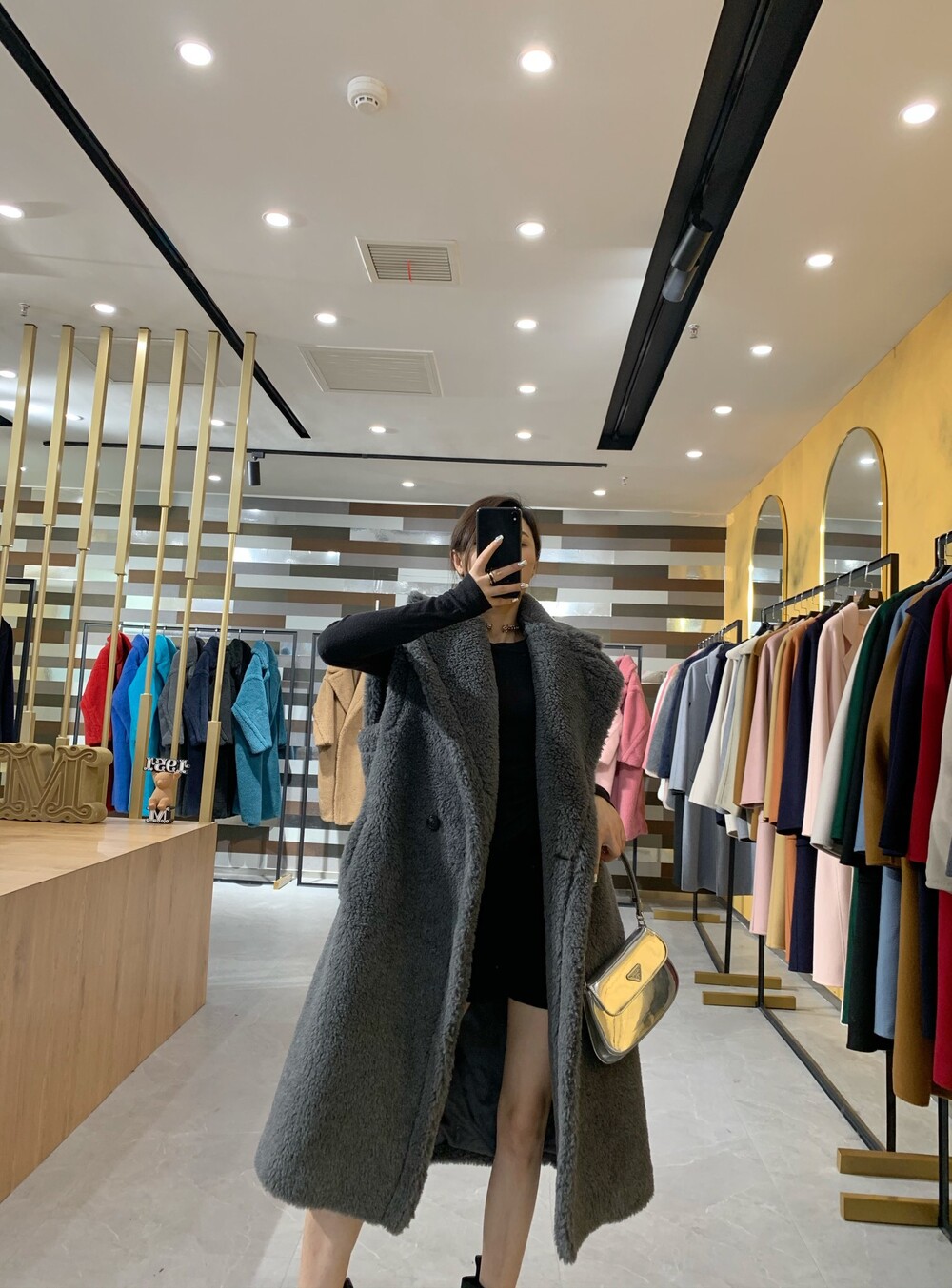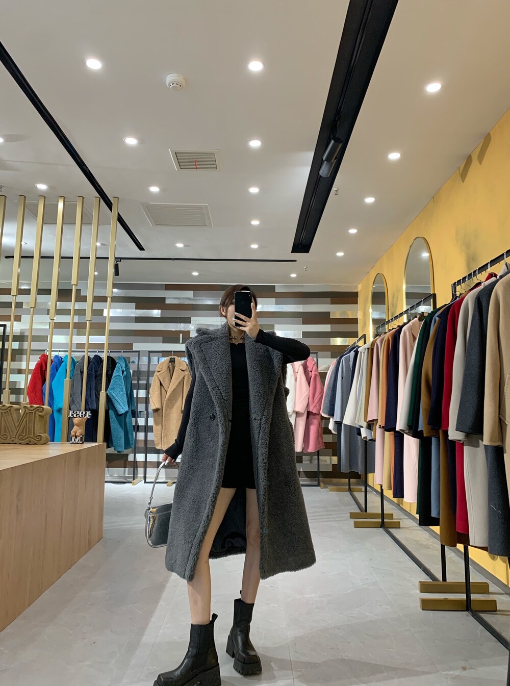 옆스티치 디자인은 코트의 라인과