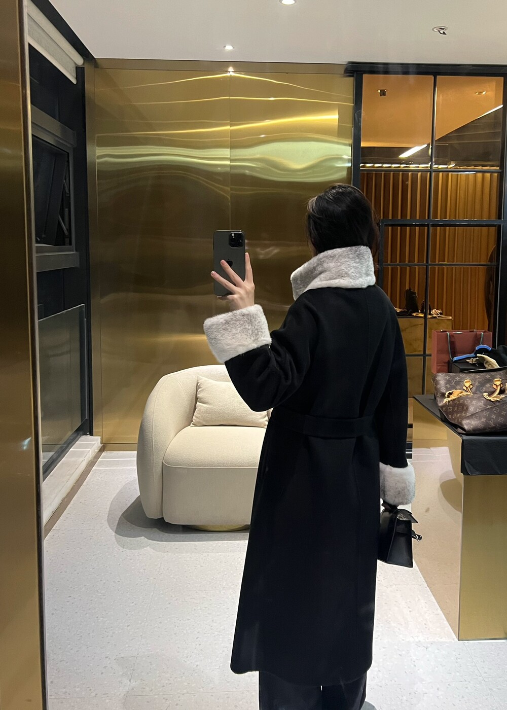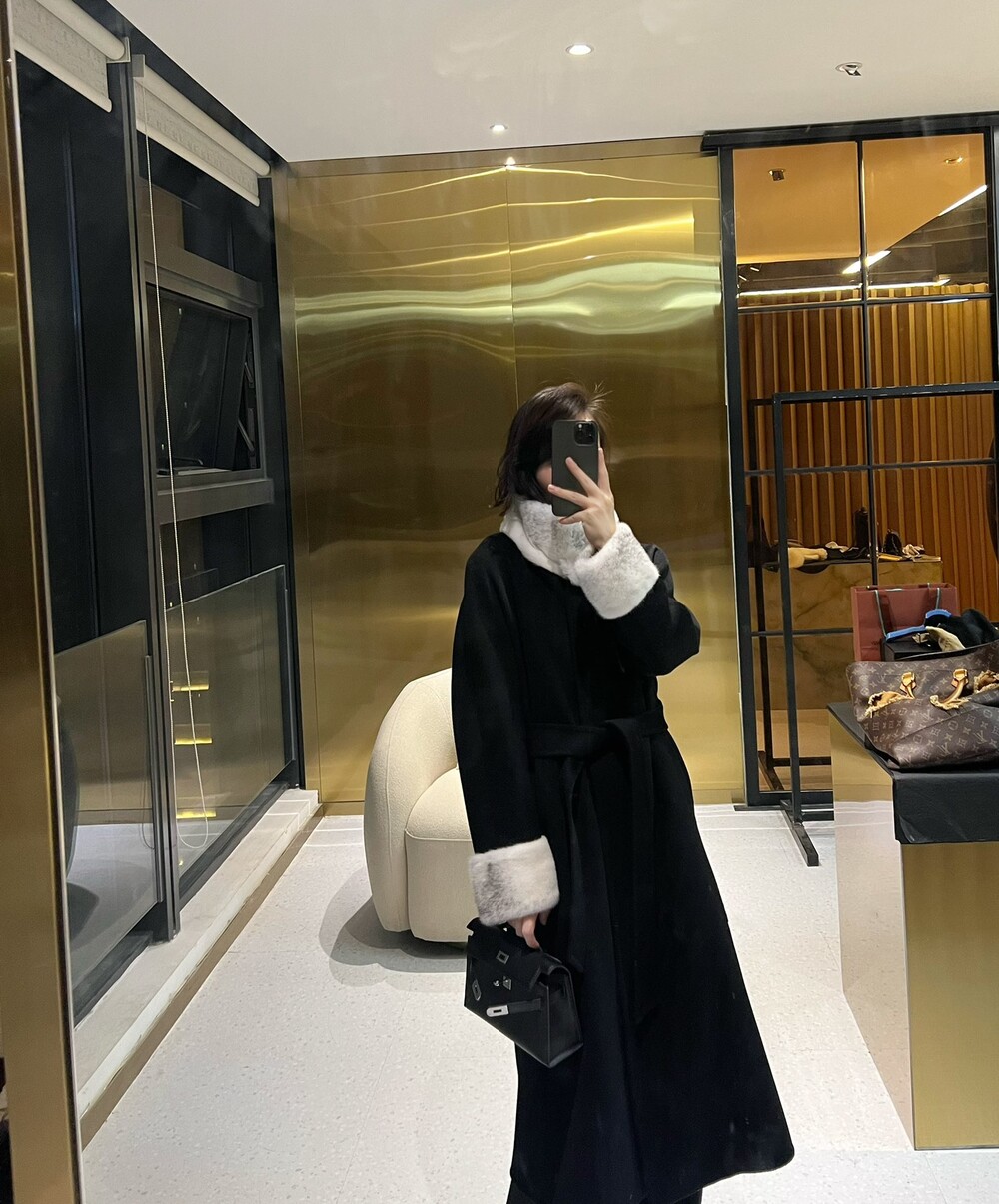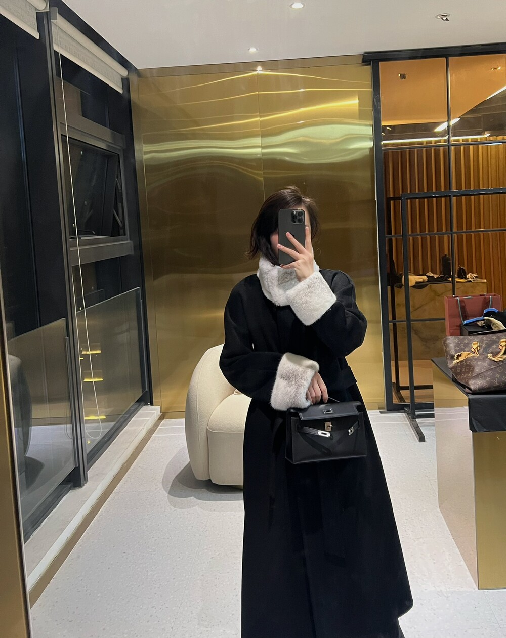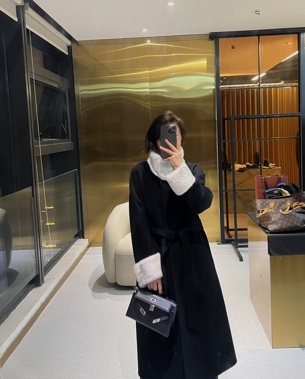 어라운드 히든 버클 밍크 스탠드업 칼라,