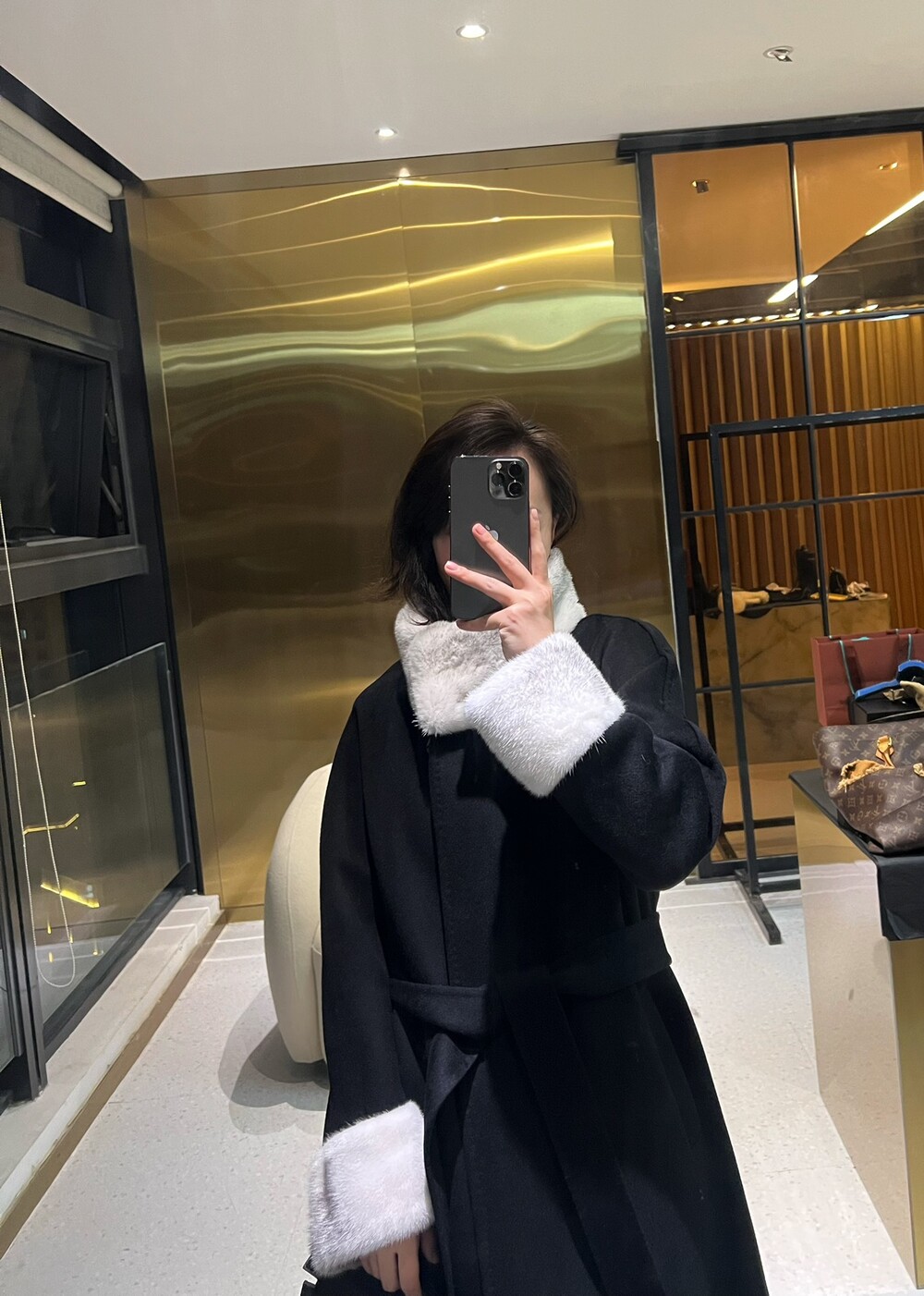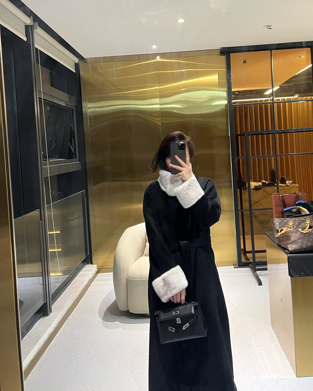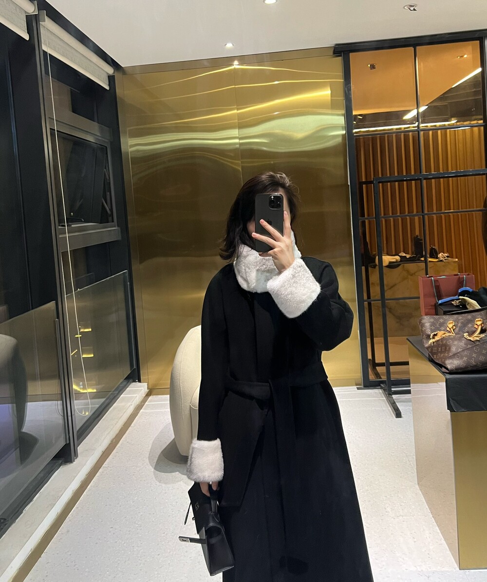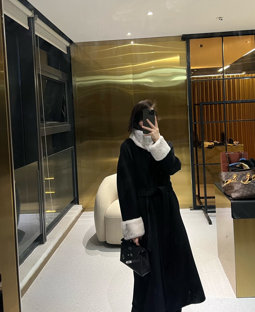어라운드 히든 버클 밍크 스탠드업 칼라,