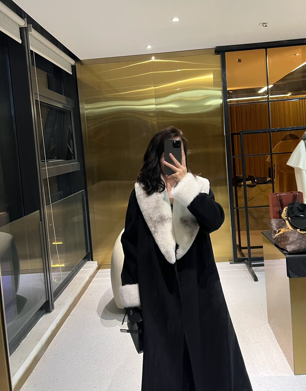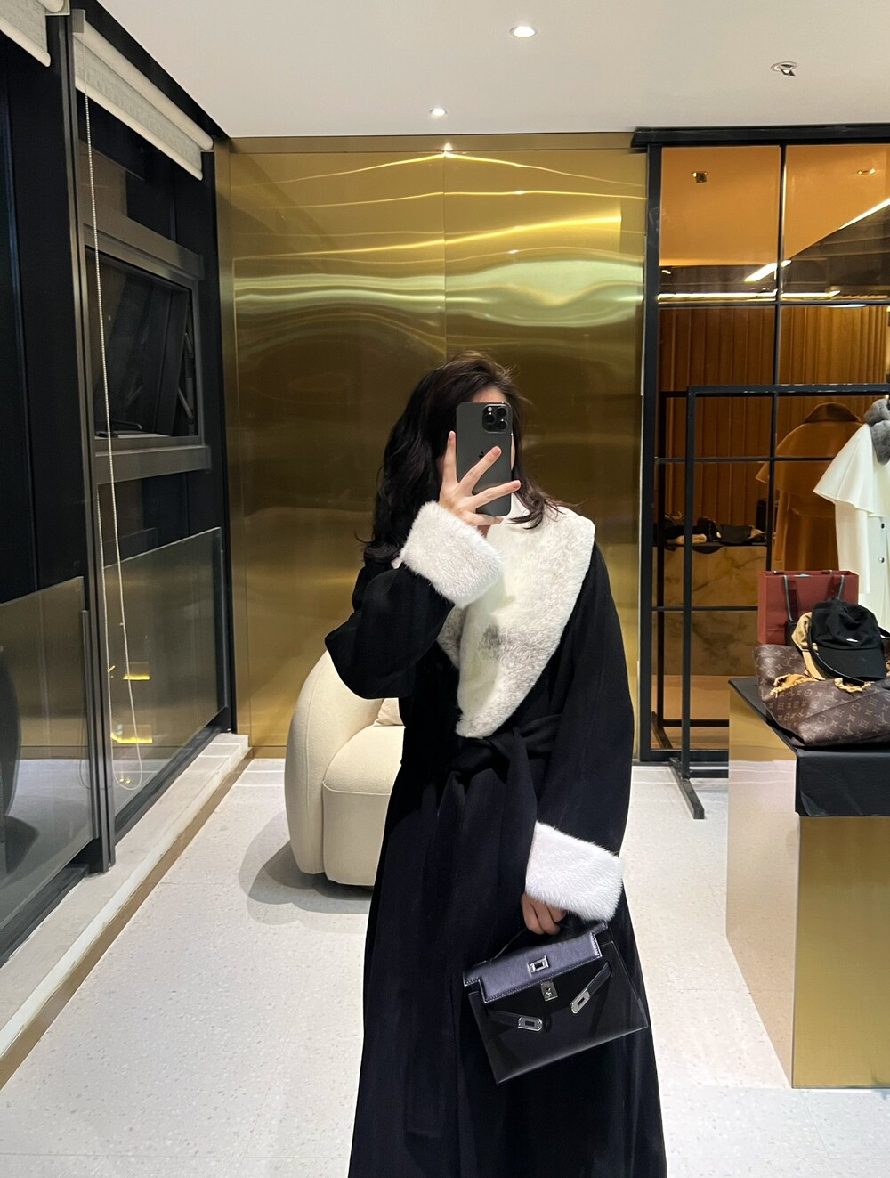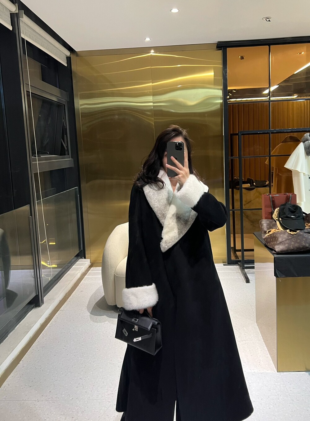 라지 아크 밍크 캐시미어 코트