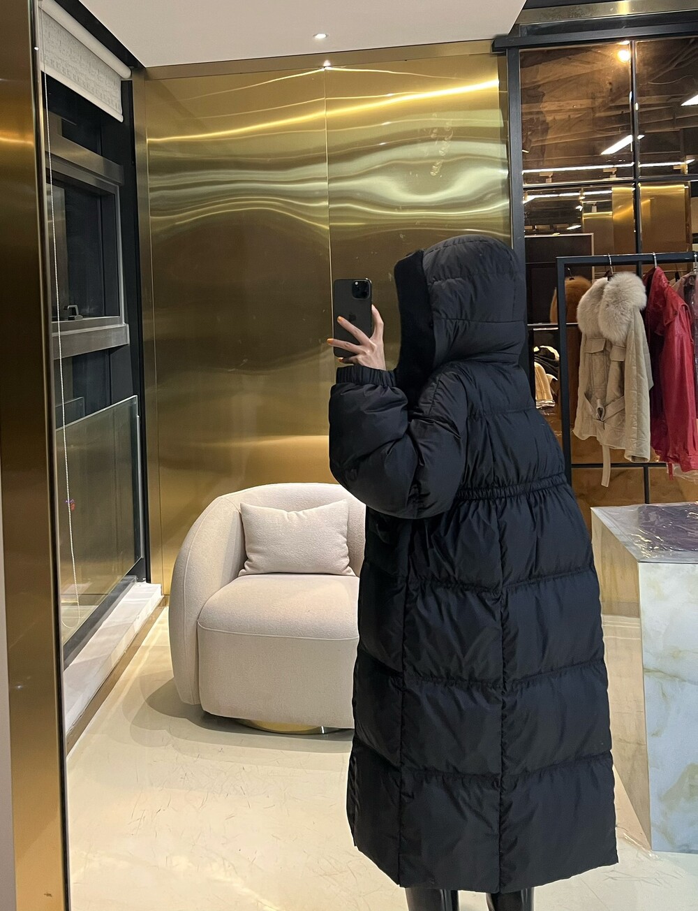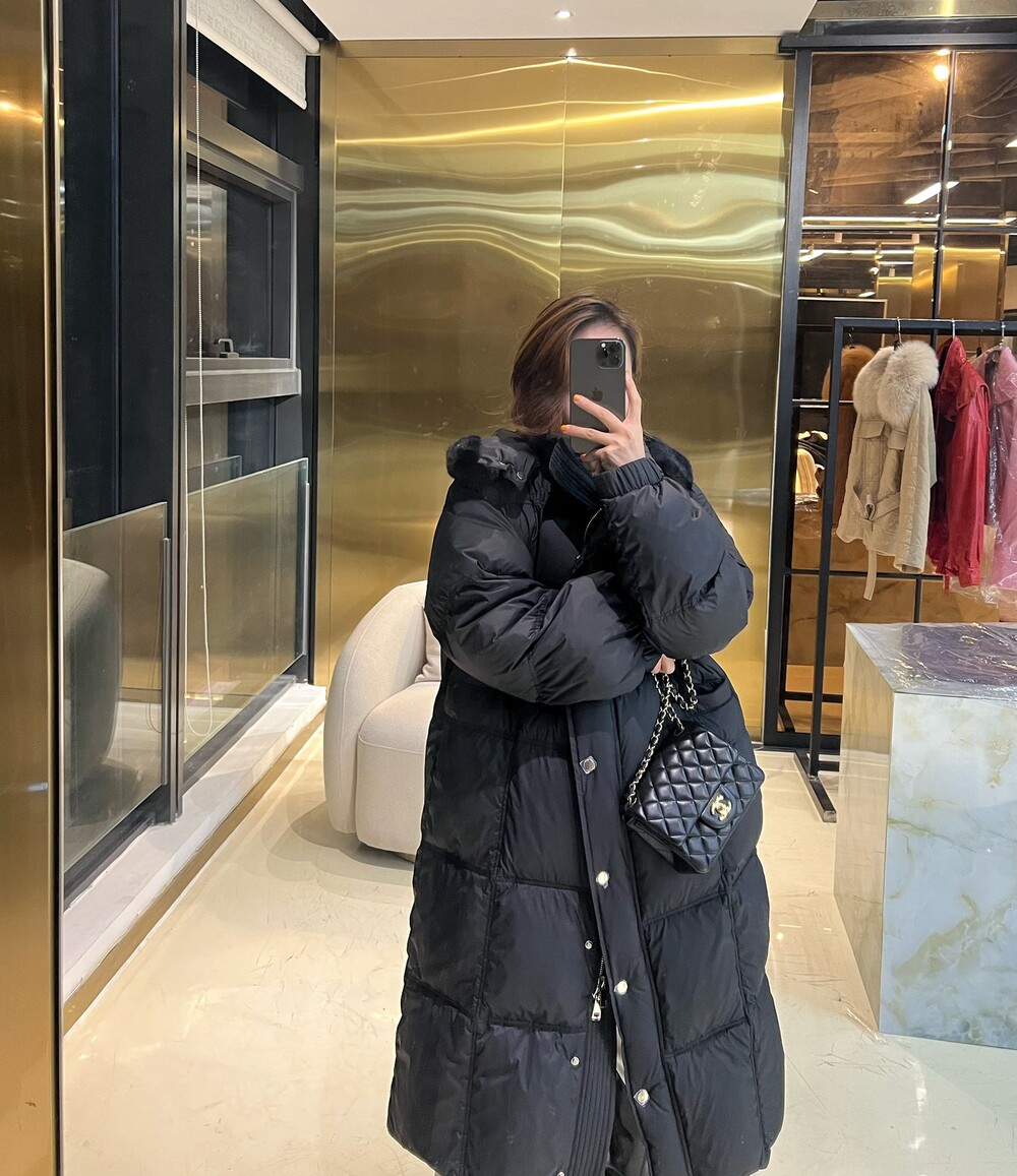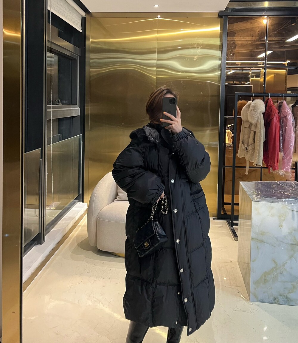 □밍크 퍼 후드 다운 롱패딩 코트□