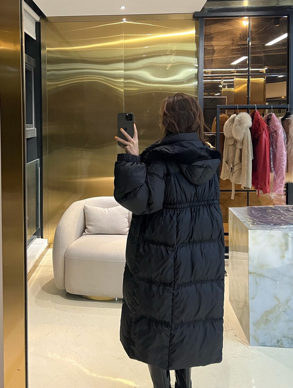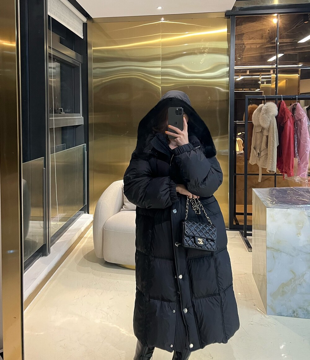 밍크 퍼 칼라 구스다운 모델은
