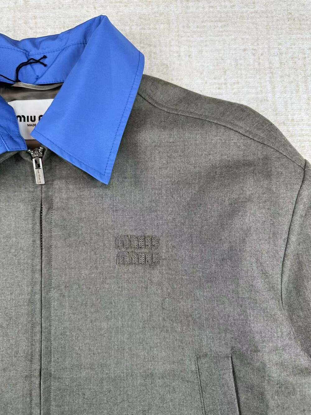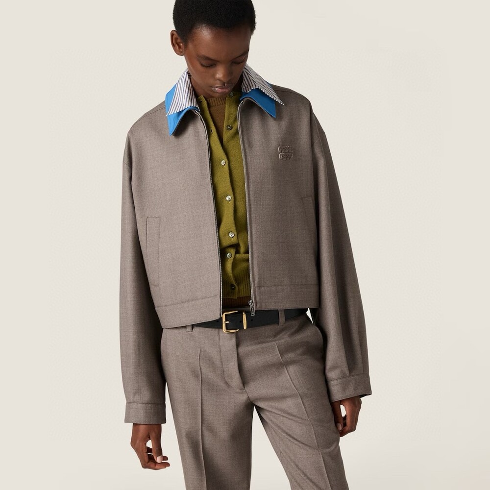 자수 로고 개버딘 패널 칼라 재킷