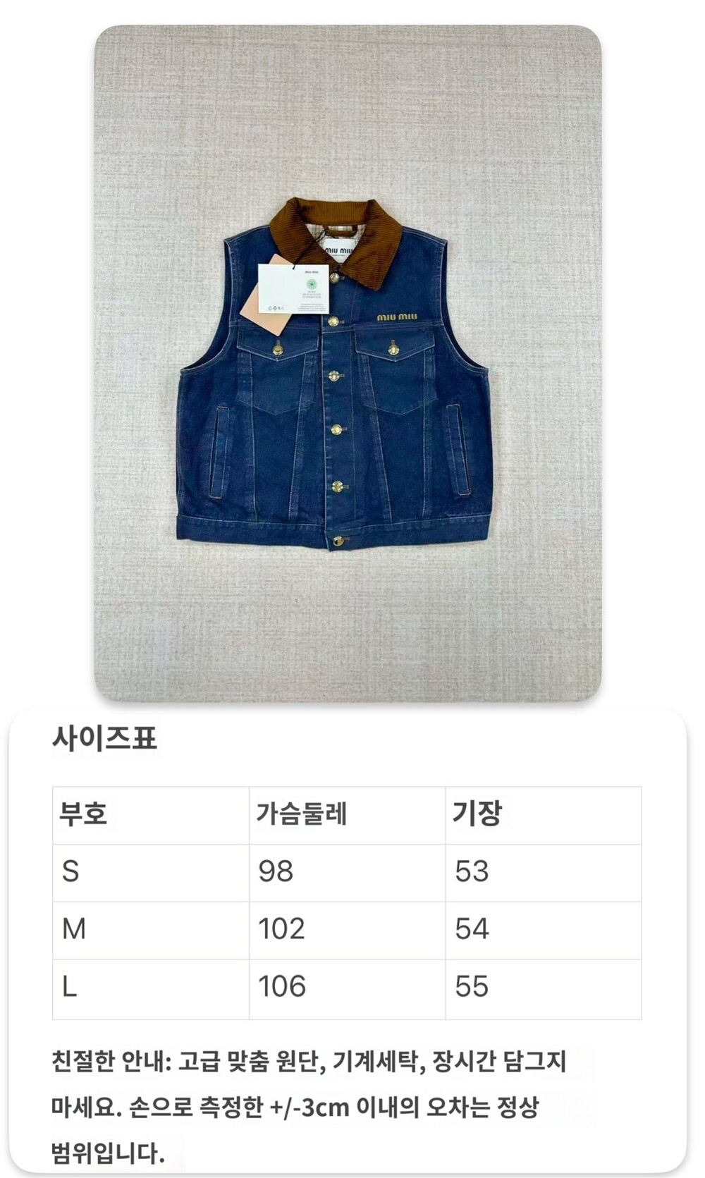 최신 가을/겨울 𝐌𝐢𝐮 스타일 데님 베스트🩵