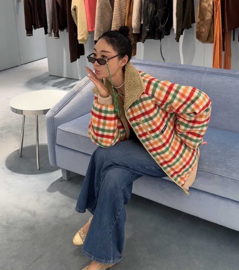 □플리스 안감 체크 블루종□