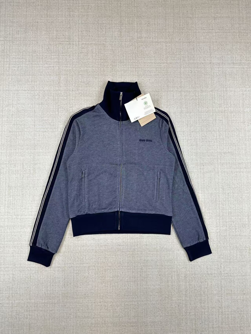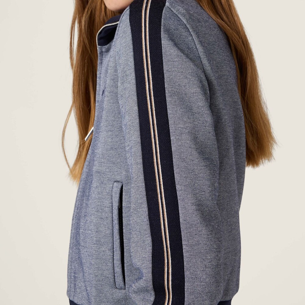 콘트라스트 웨빙 라펠 지퍼 재킷