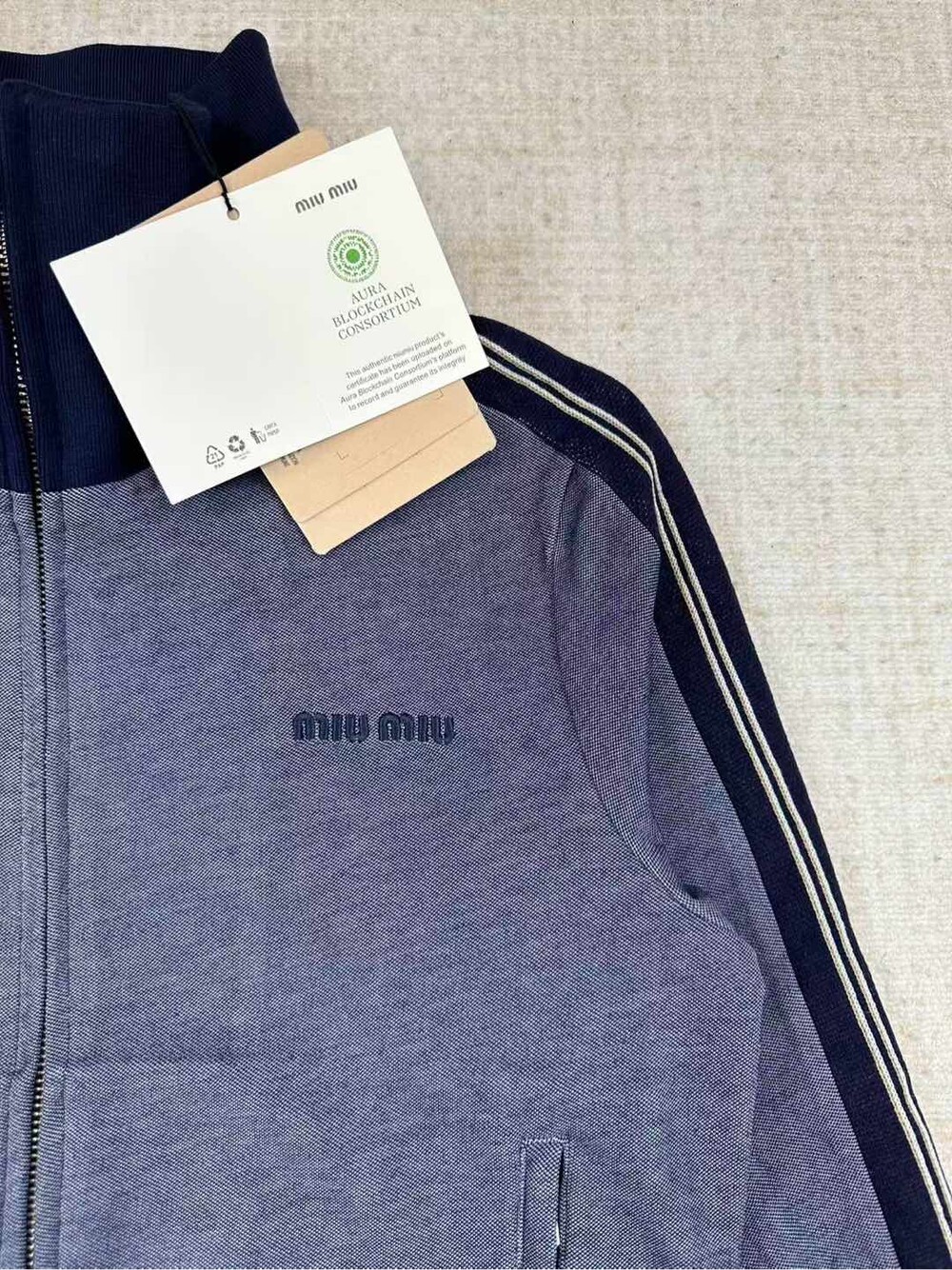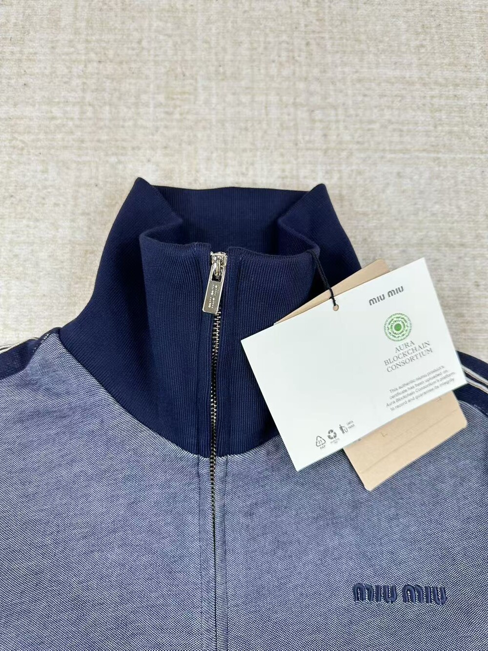 가슴 부분의 클래식한 자수 로고는