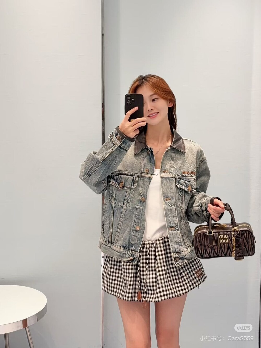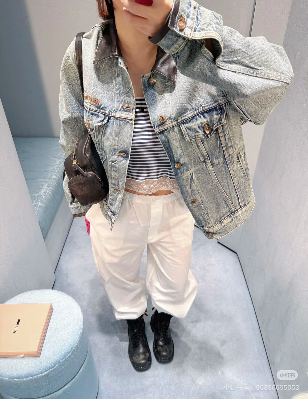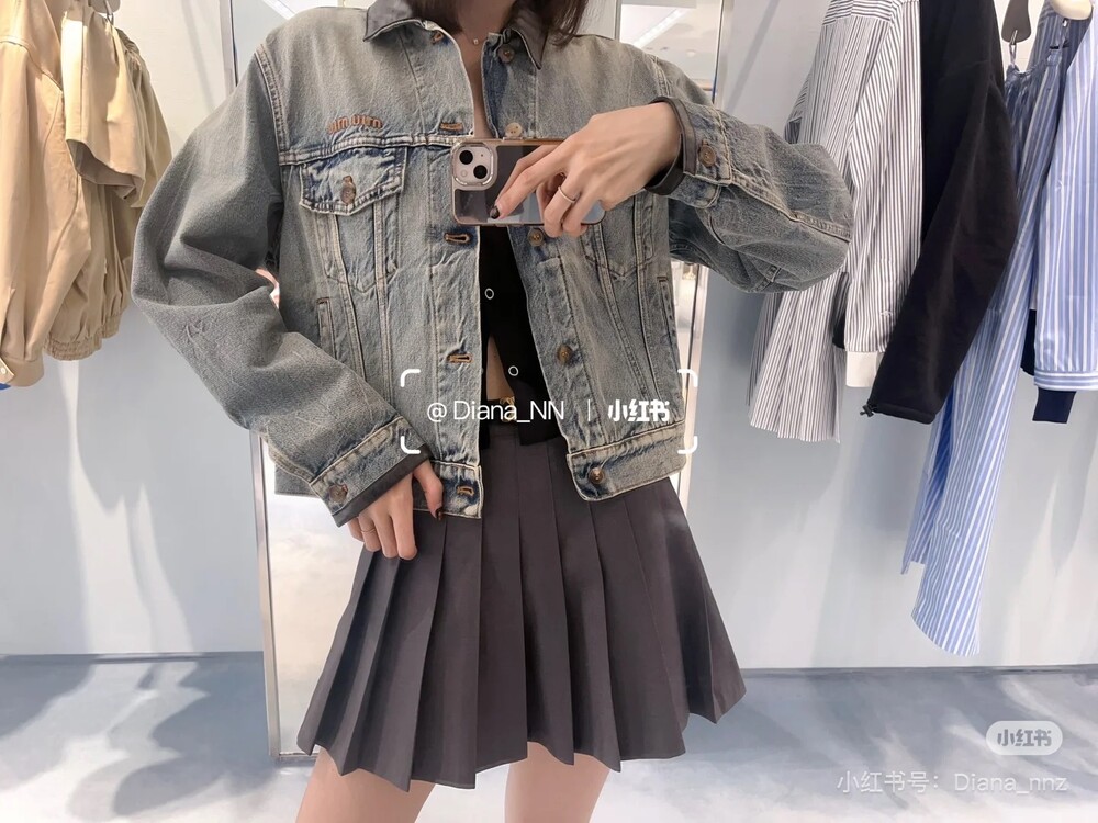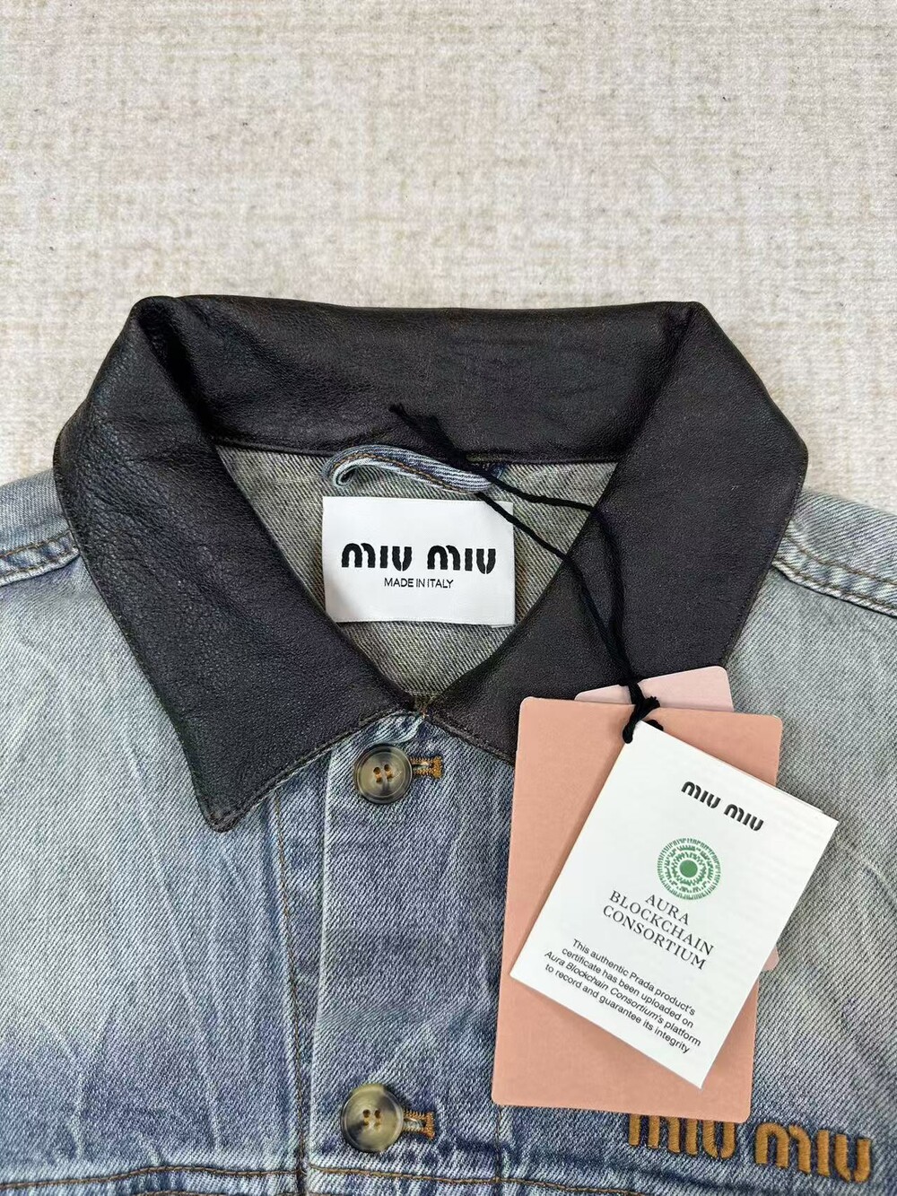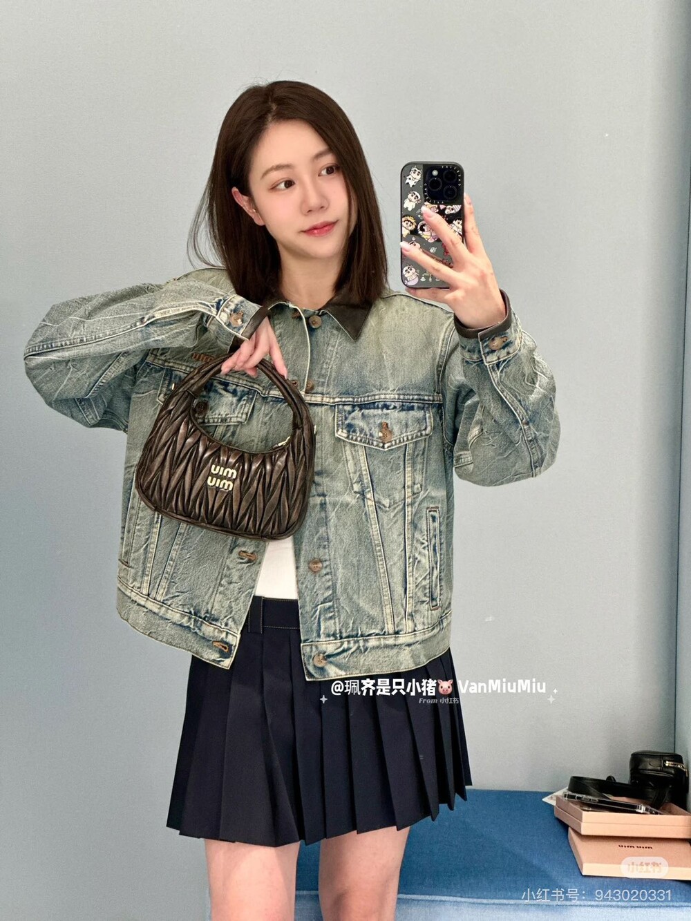 왼쪽 가슴의 "𝐌𝐢𝐮" 로고 자수는