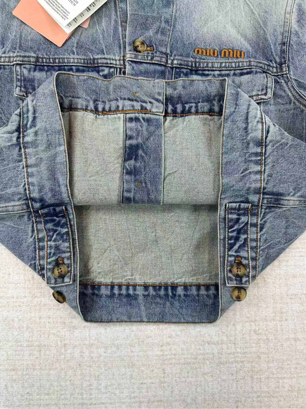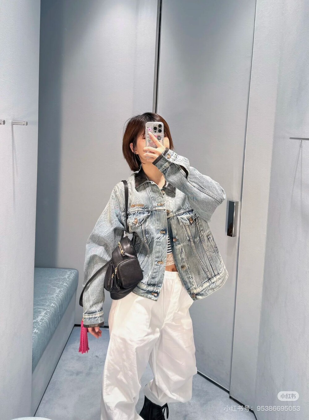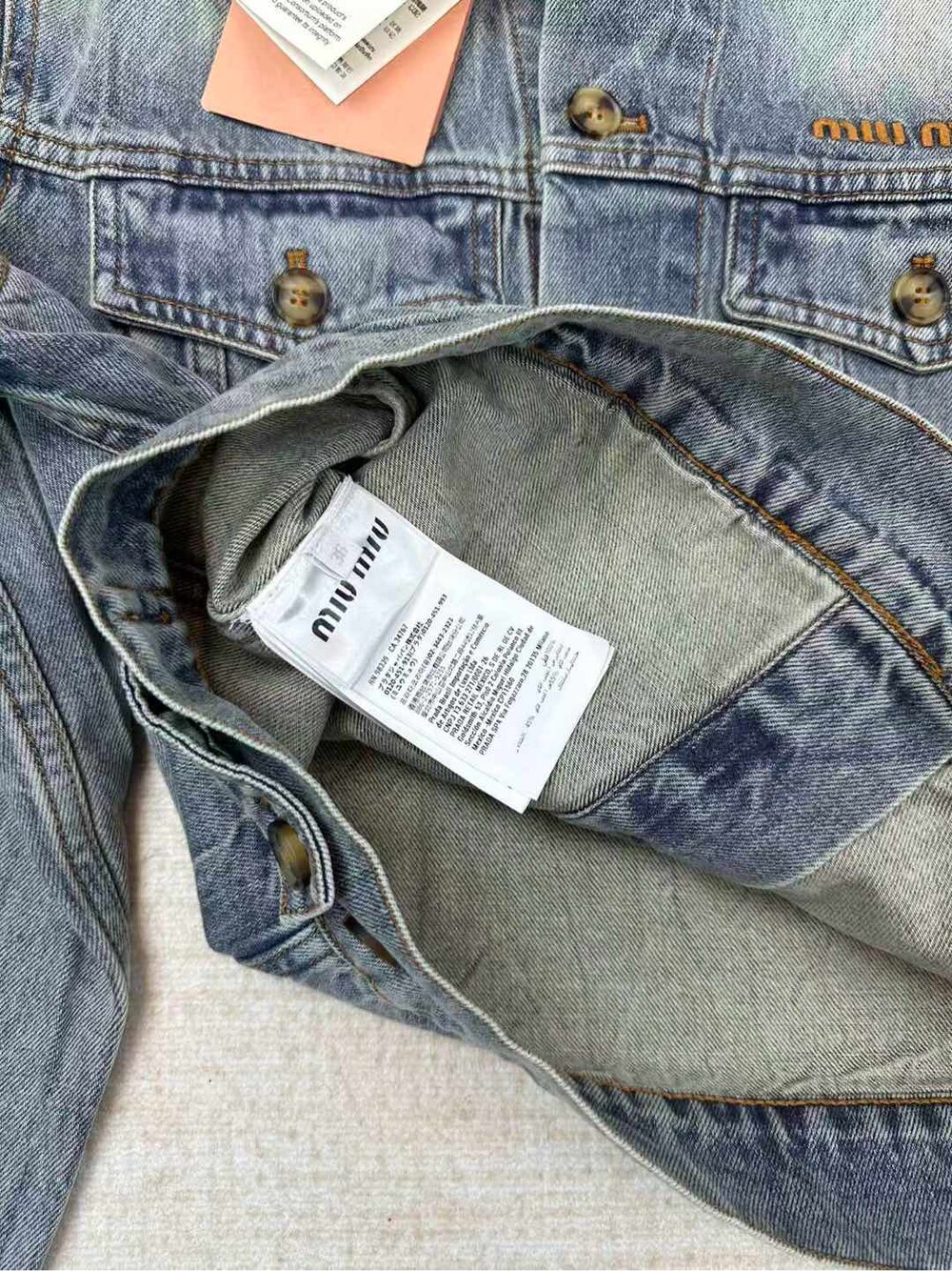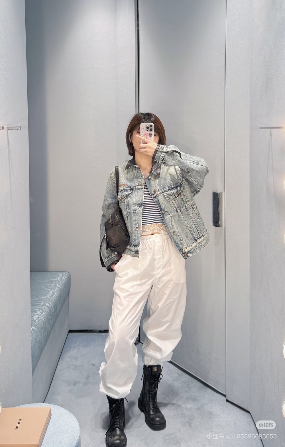 왼쪽 가슴의 "𝐌𝐢𝐮" 로고 자수는