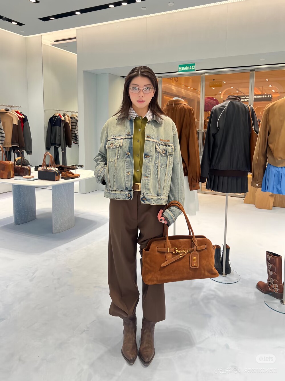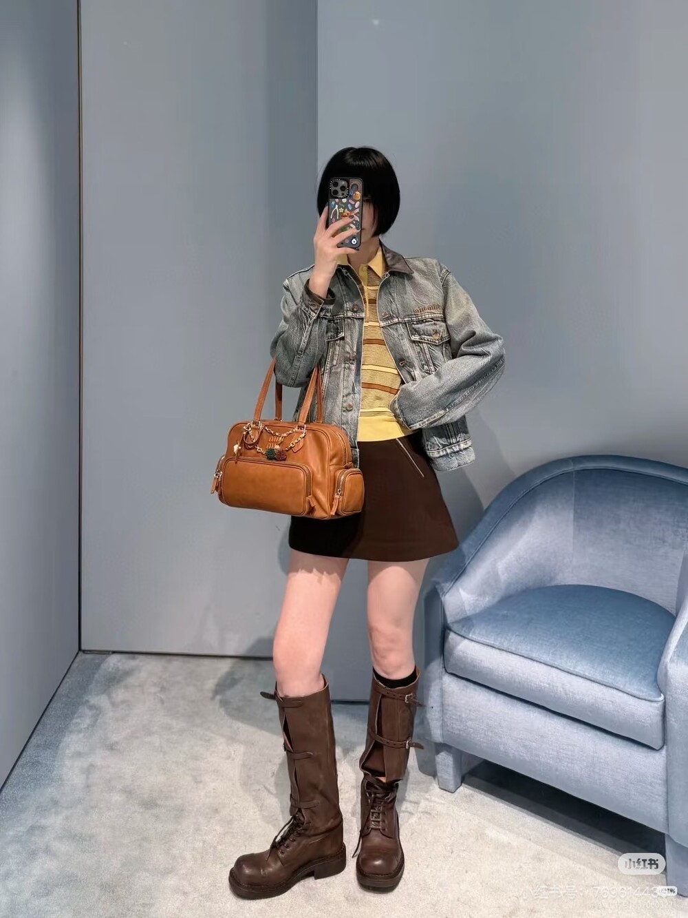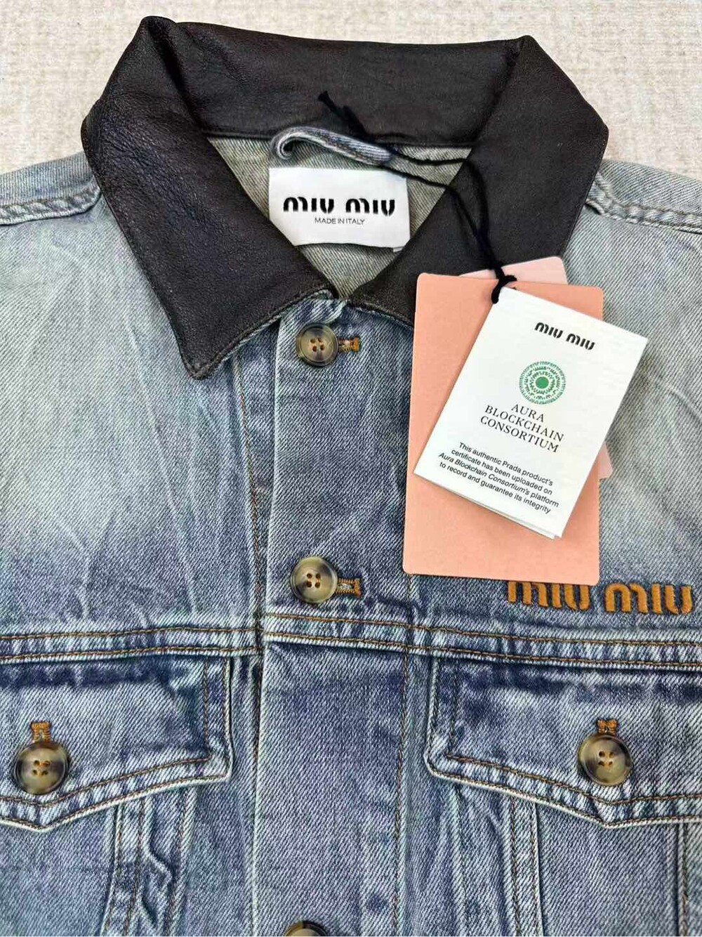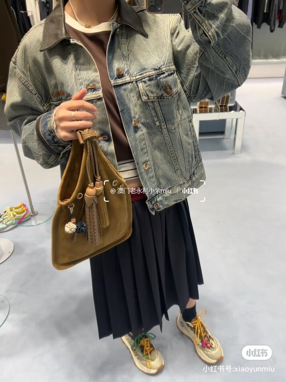 왼쪽 가슴의 "𝐌𝐢𝐮" 로고 자수는