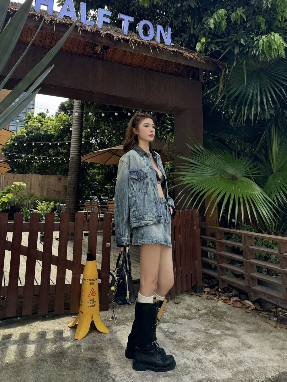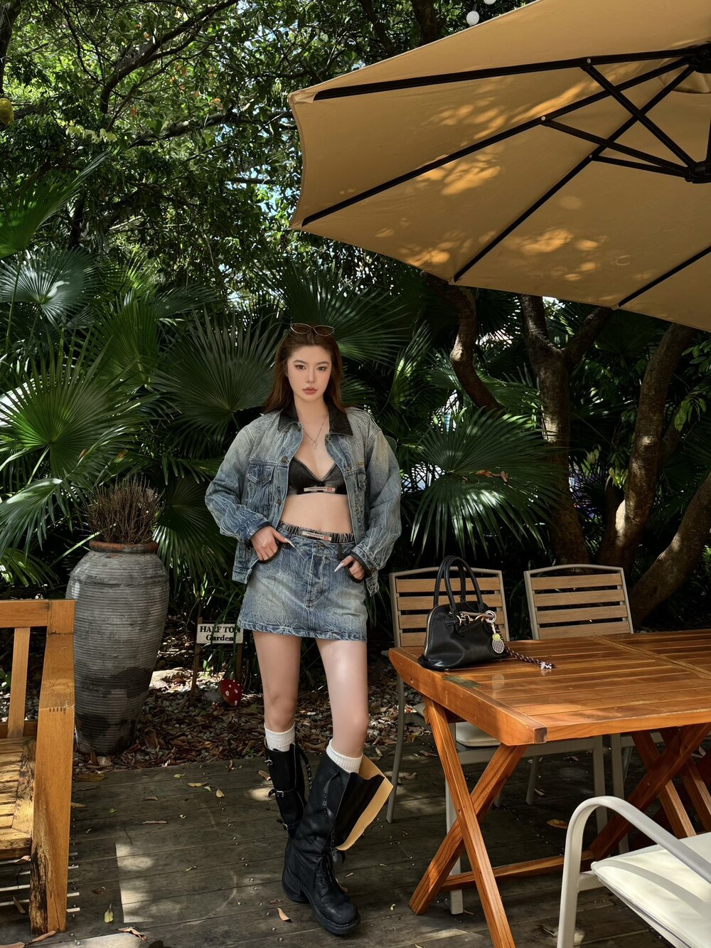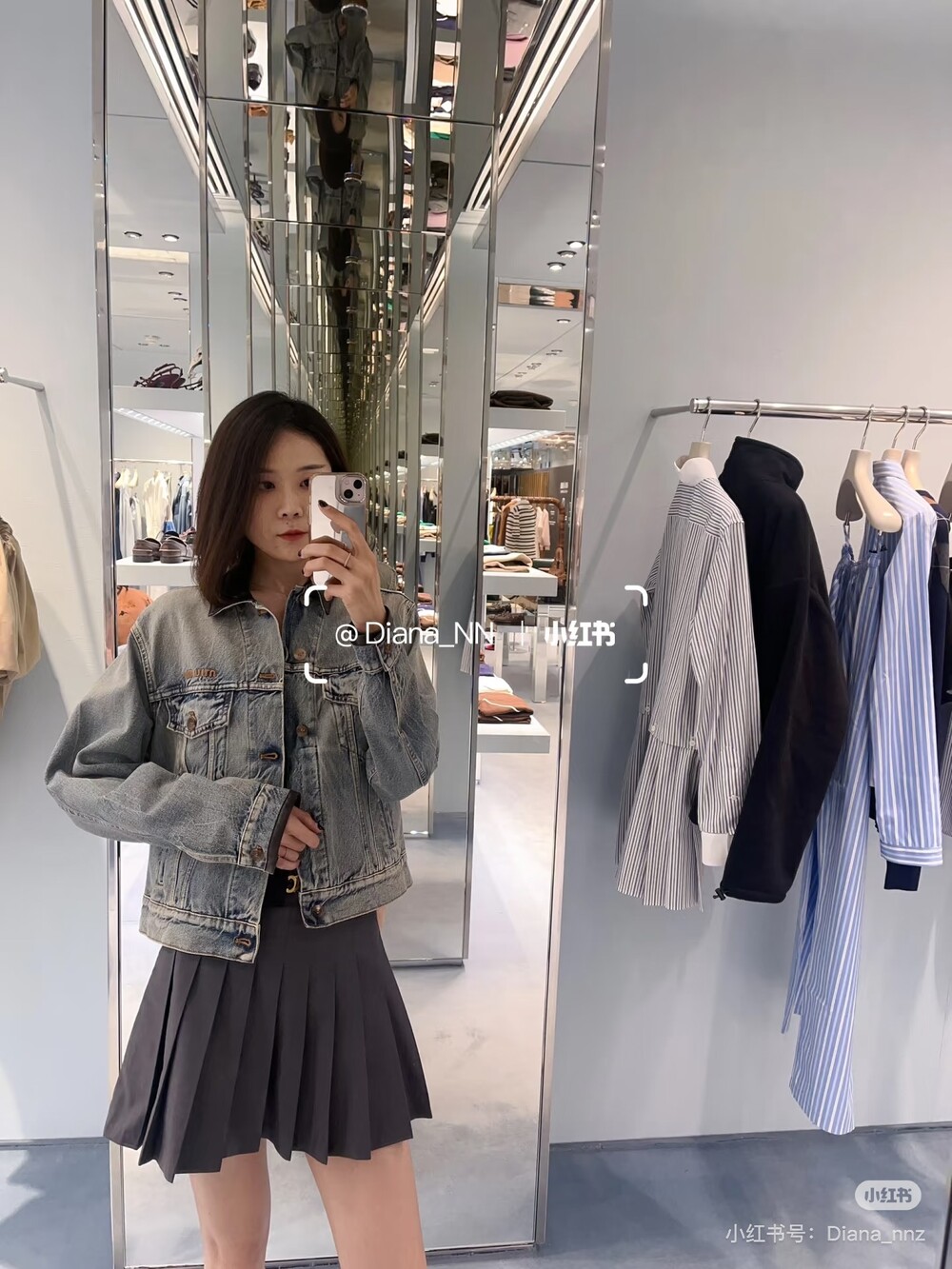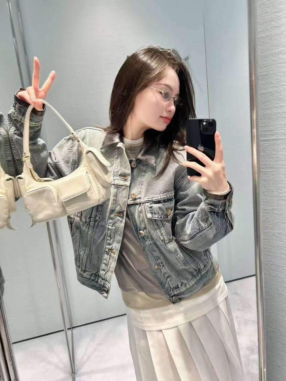 왼쪽 가슴의 "𝐌𝐢𝐮" 로고 자수는