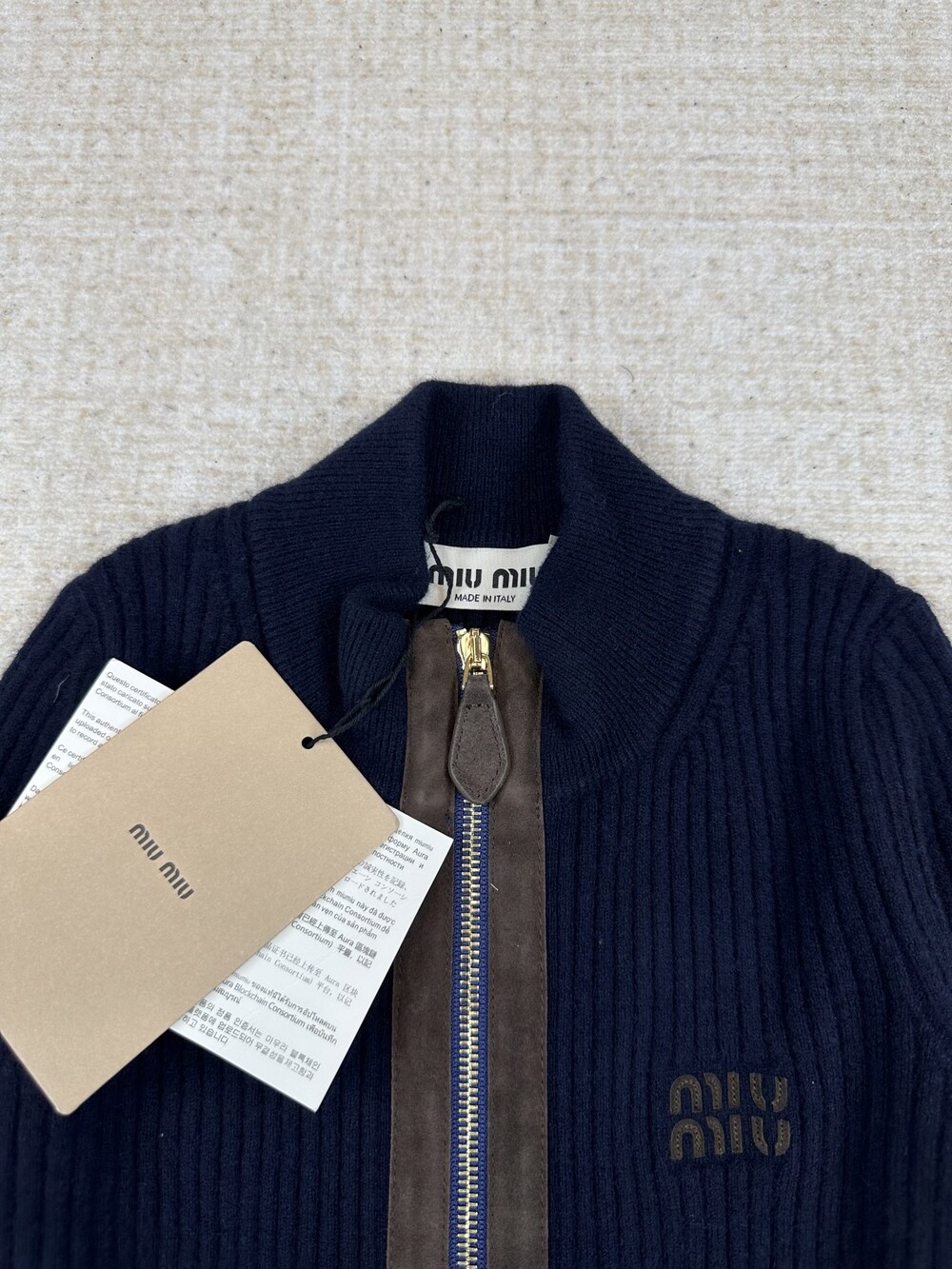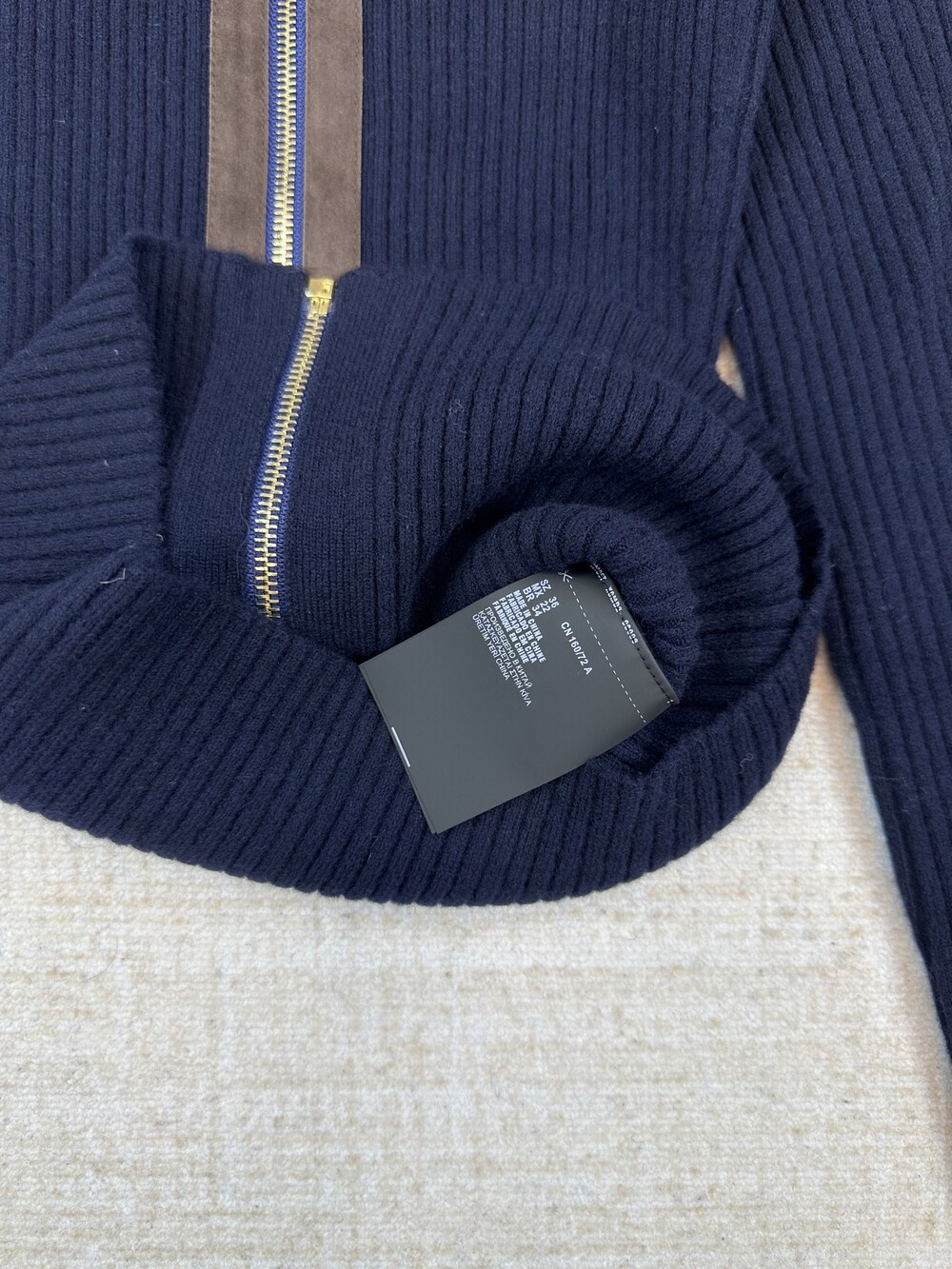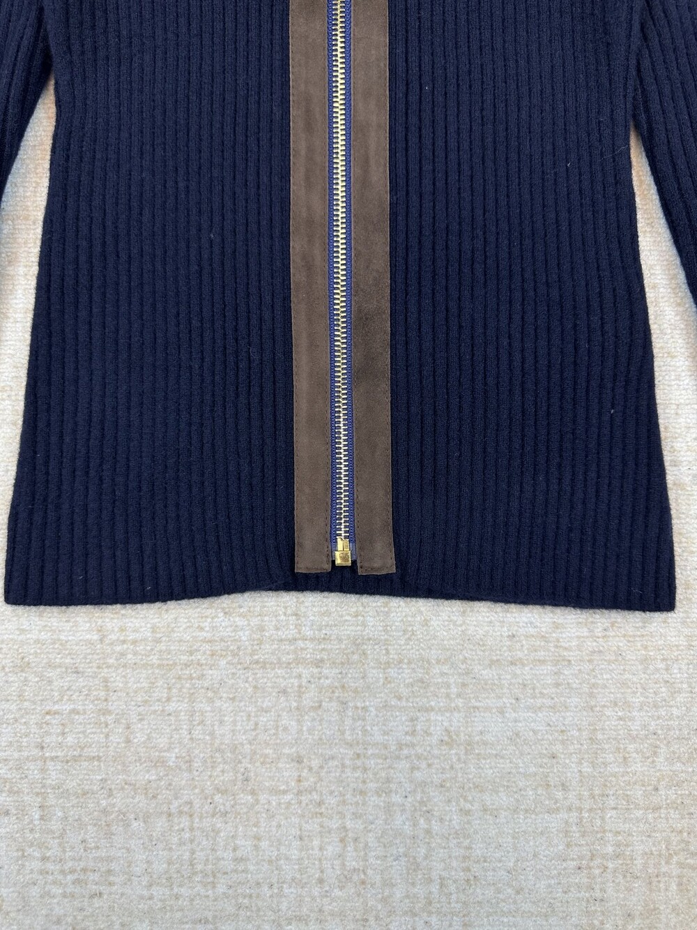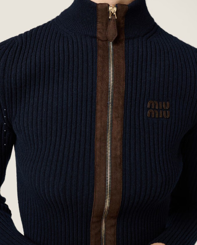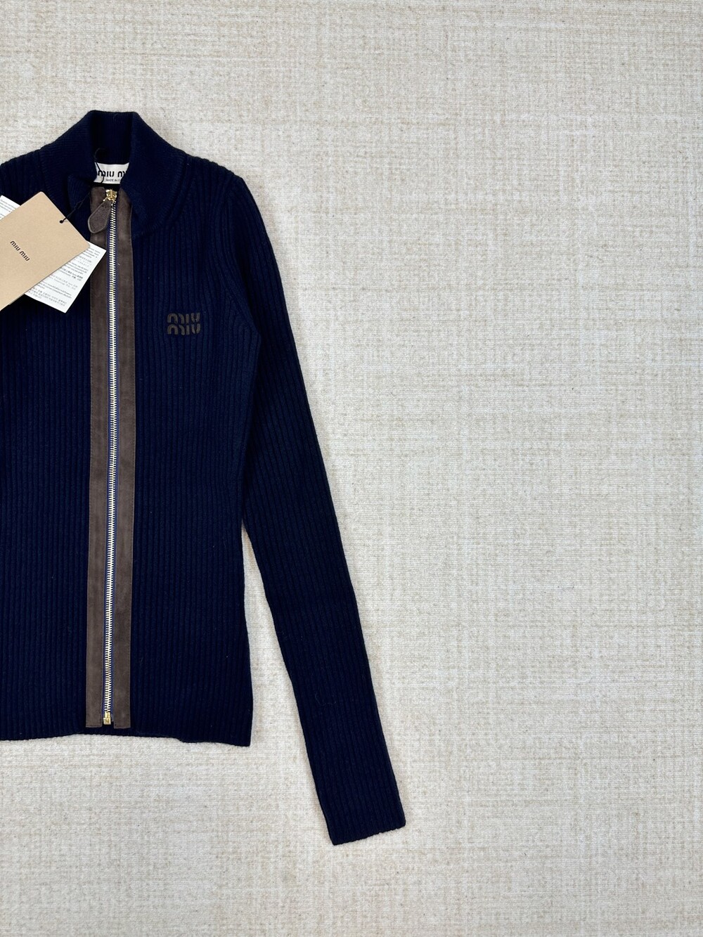 레터 로고 스탠드 칼라 레더 지퍼 가디건 |