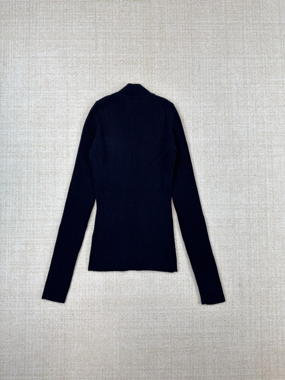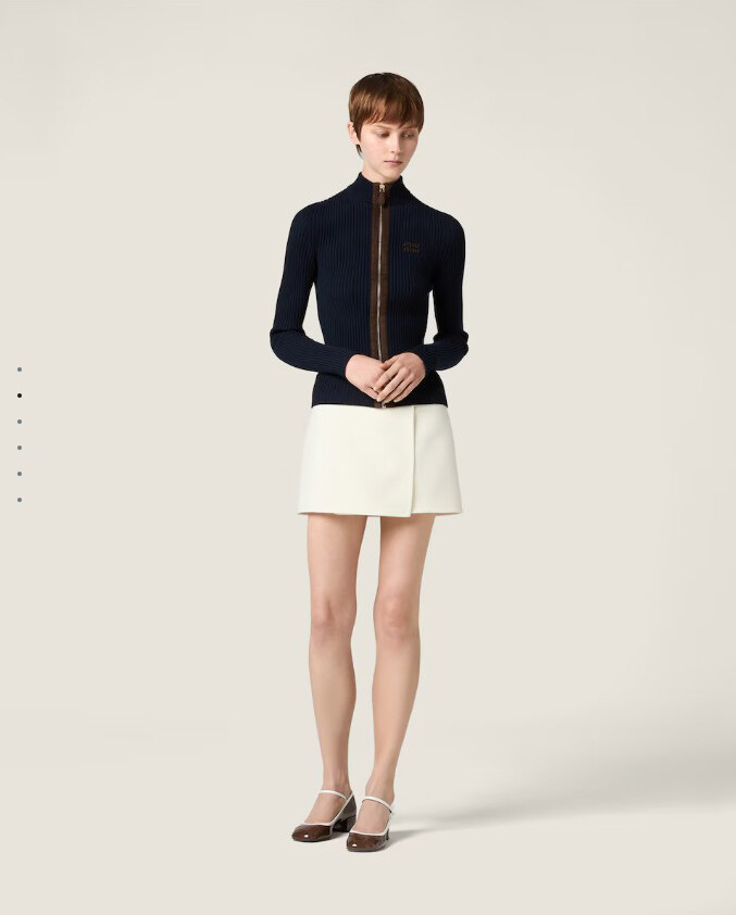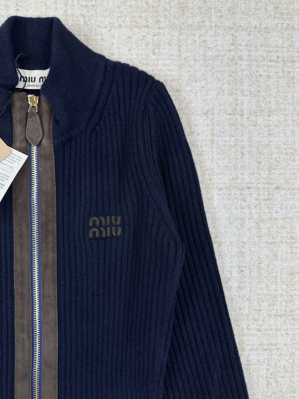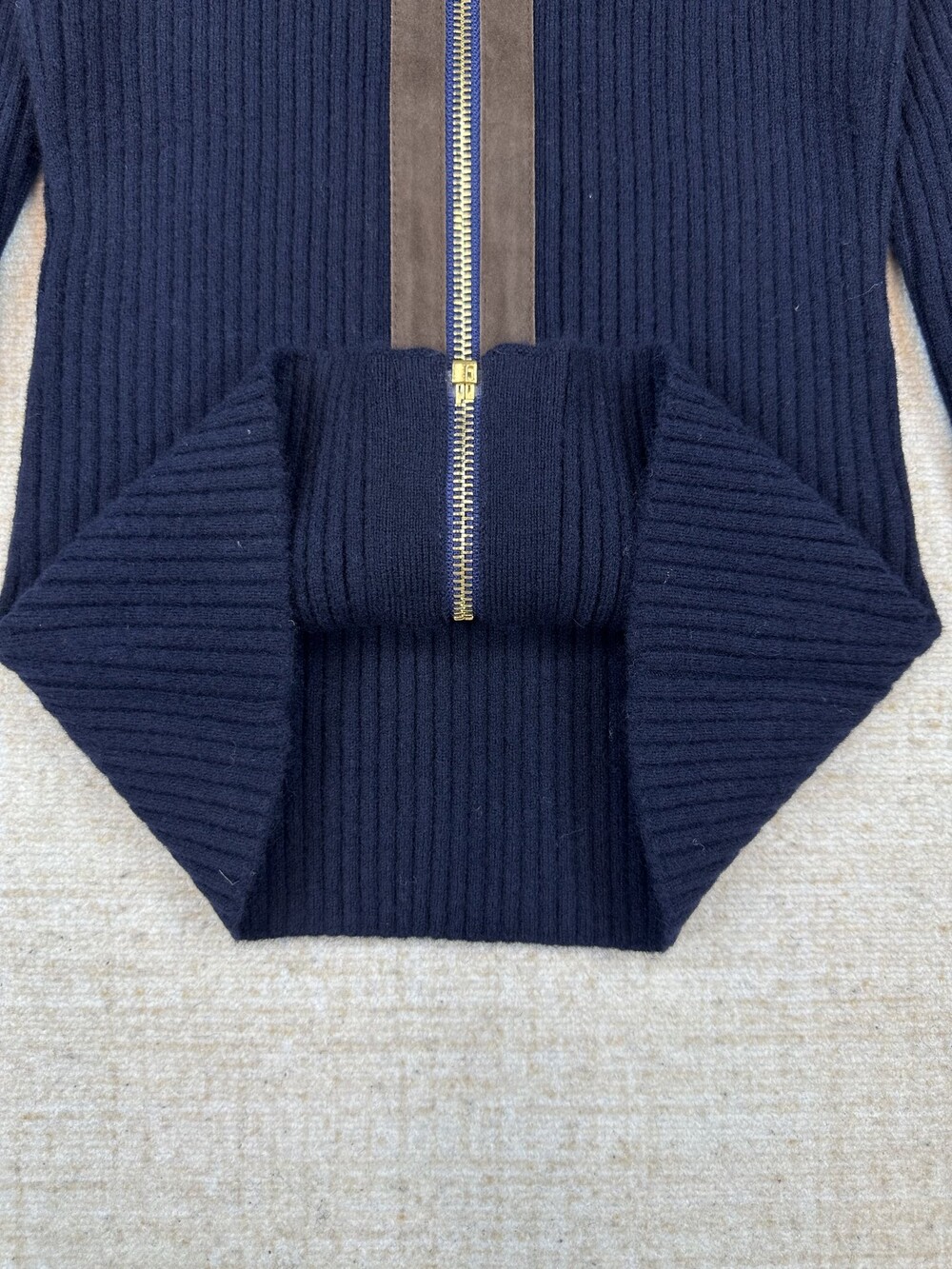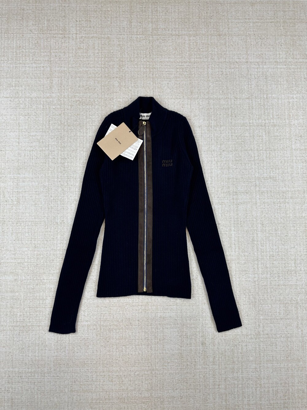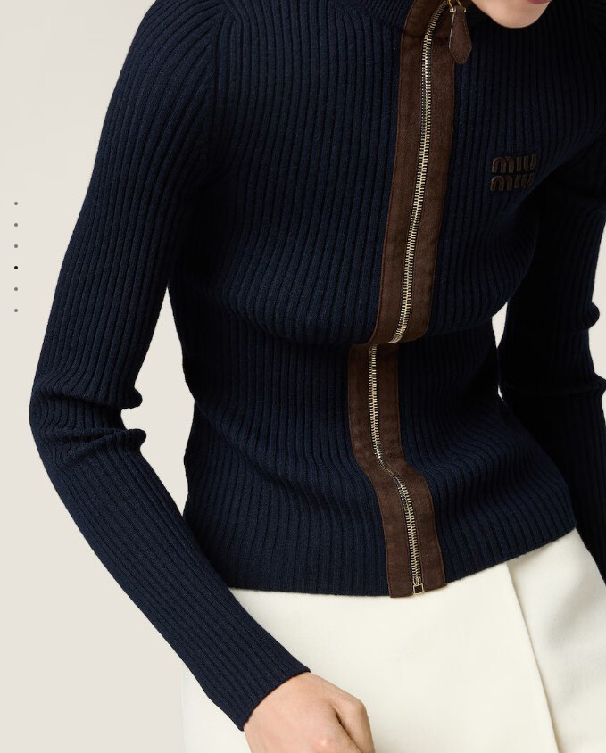 레터 로고 스탠드 칼라 레더 지퍼 가디건 |
