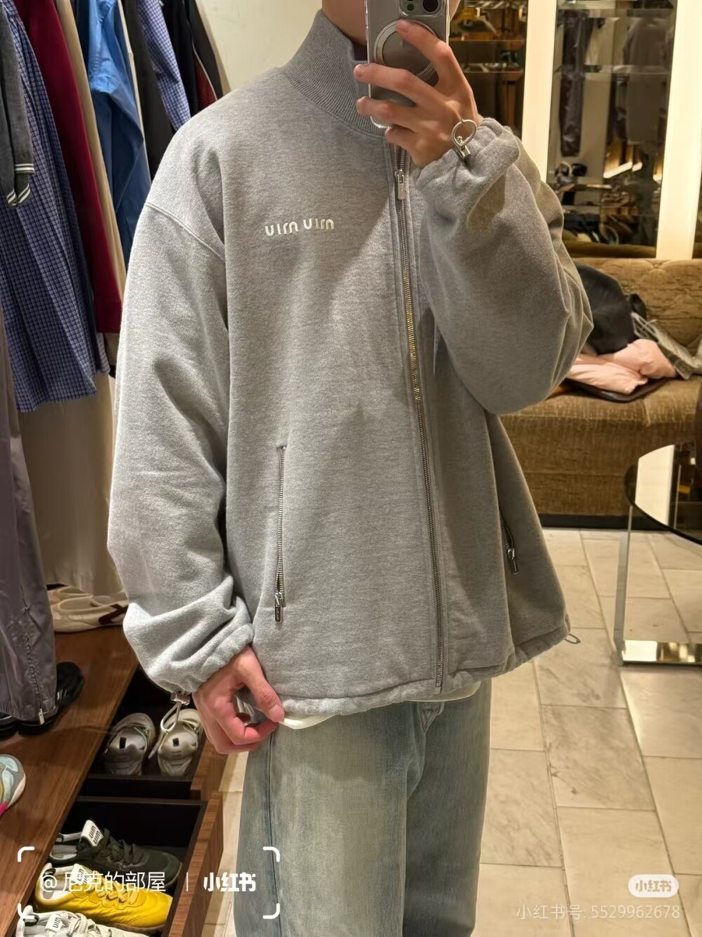 스탠드 칼라 지퍼 재킷 (레터링 자수)